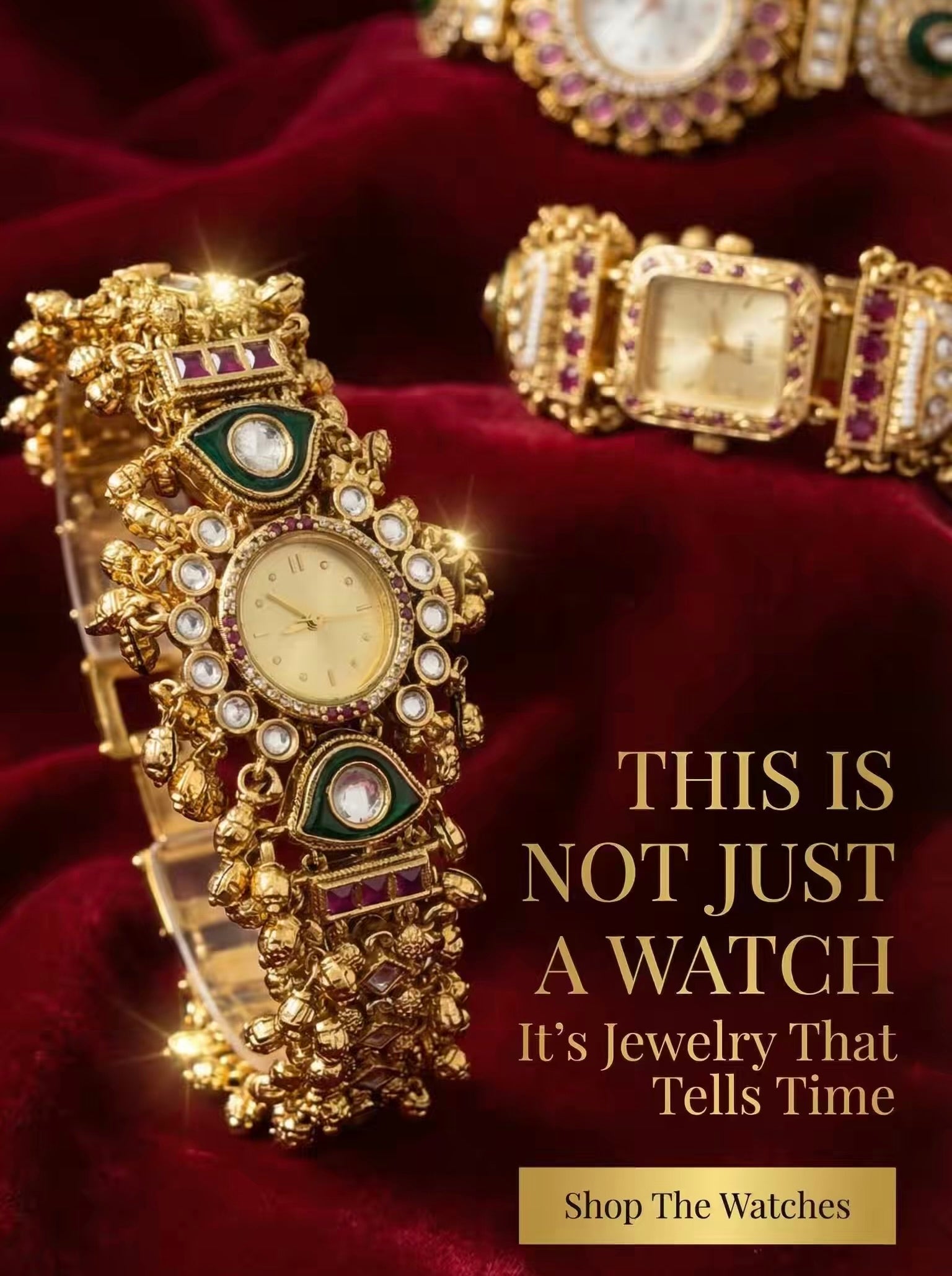 Green Red Gold Dial Loaded Green Rajwadi Gold Plated Heritage Maharani Watch ( Restocked Finally )