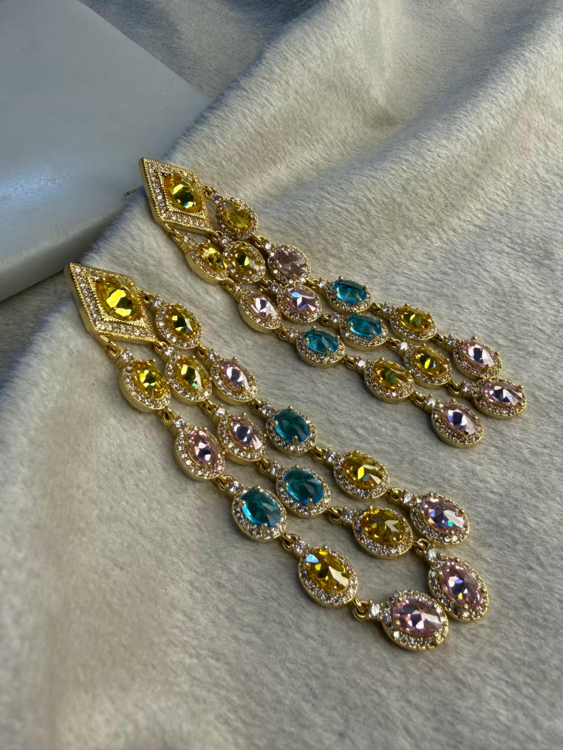 Aqua Blue & Blush Pink Cascade Luxury Party Wedding Rhodium Gold Plating Earrings