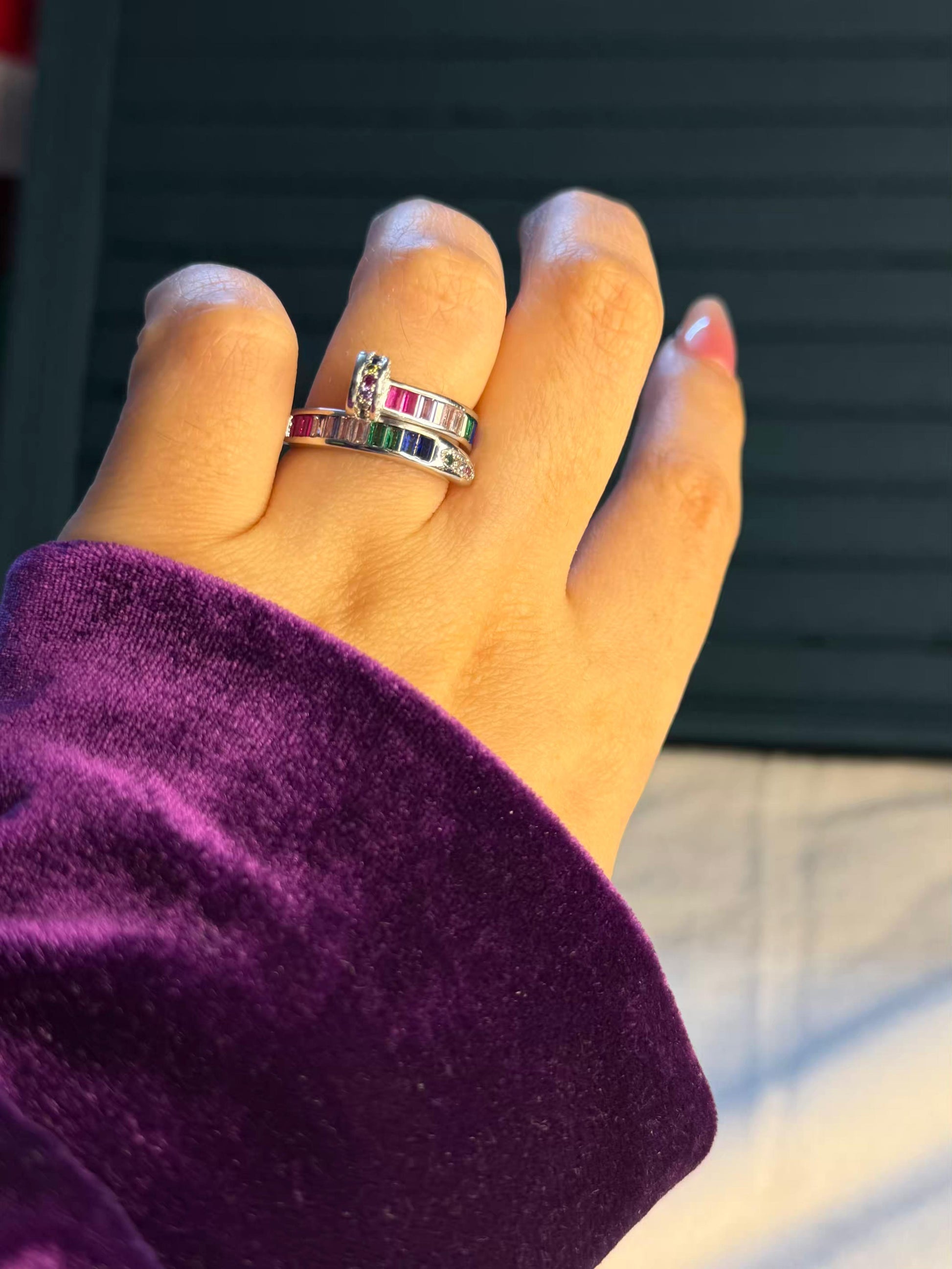 Aurora Dotline Multicolour Silver Plated Premium Ring (Adjustable)