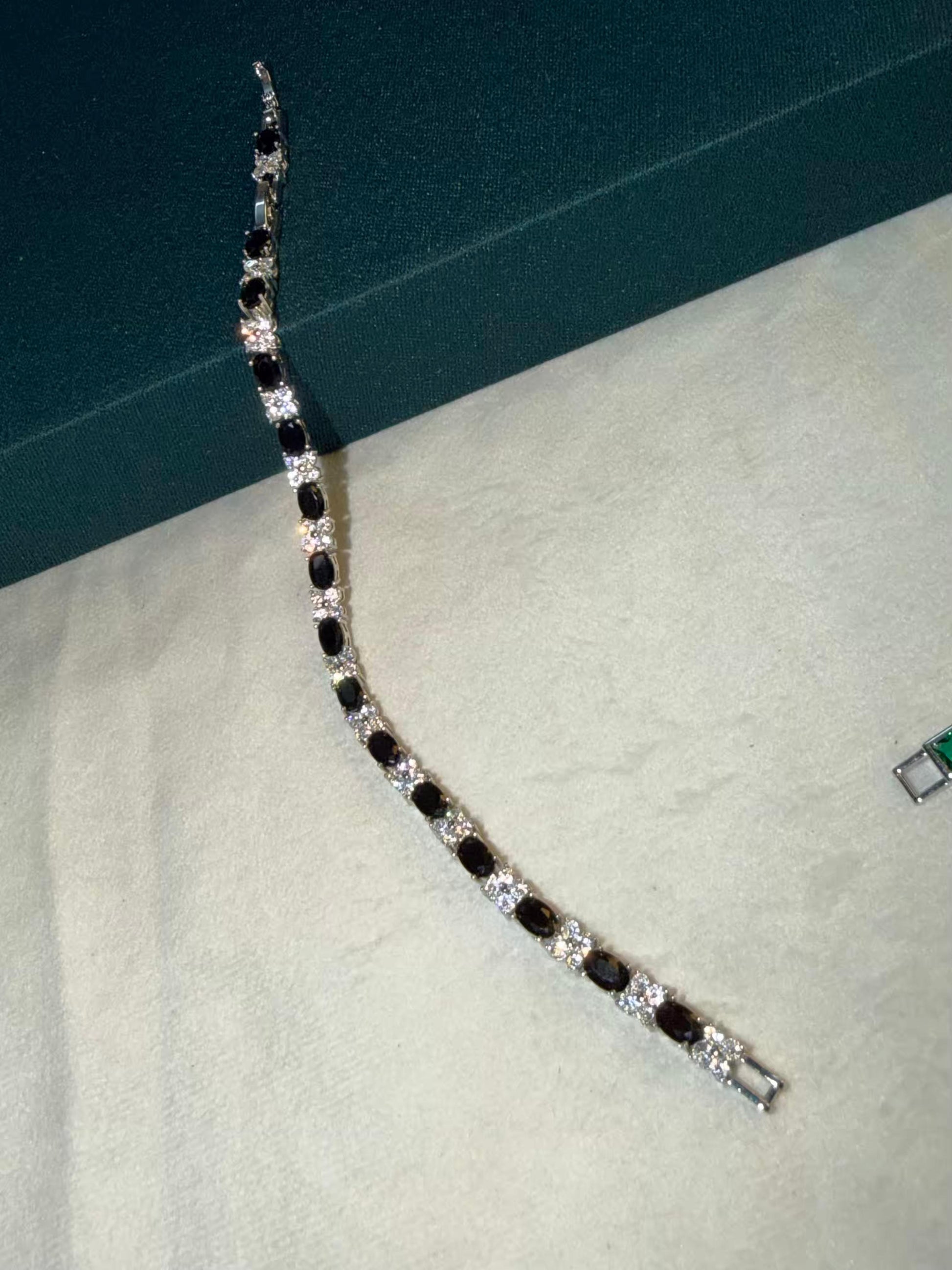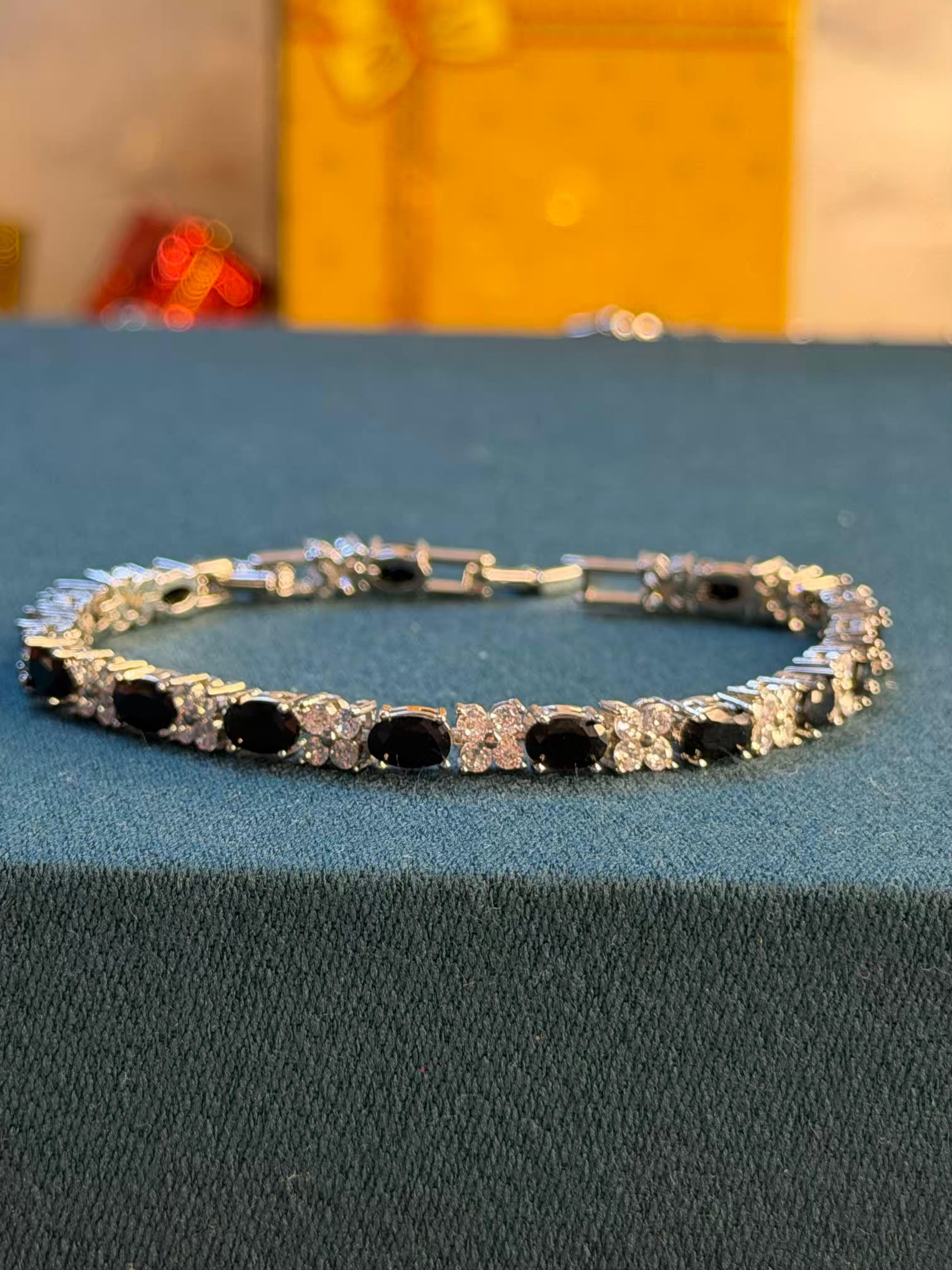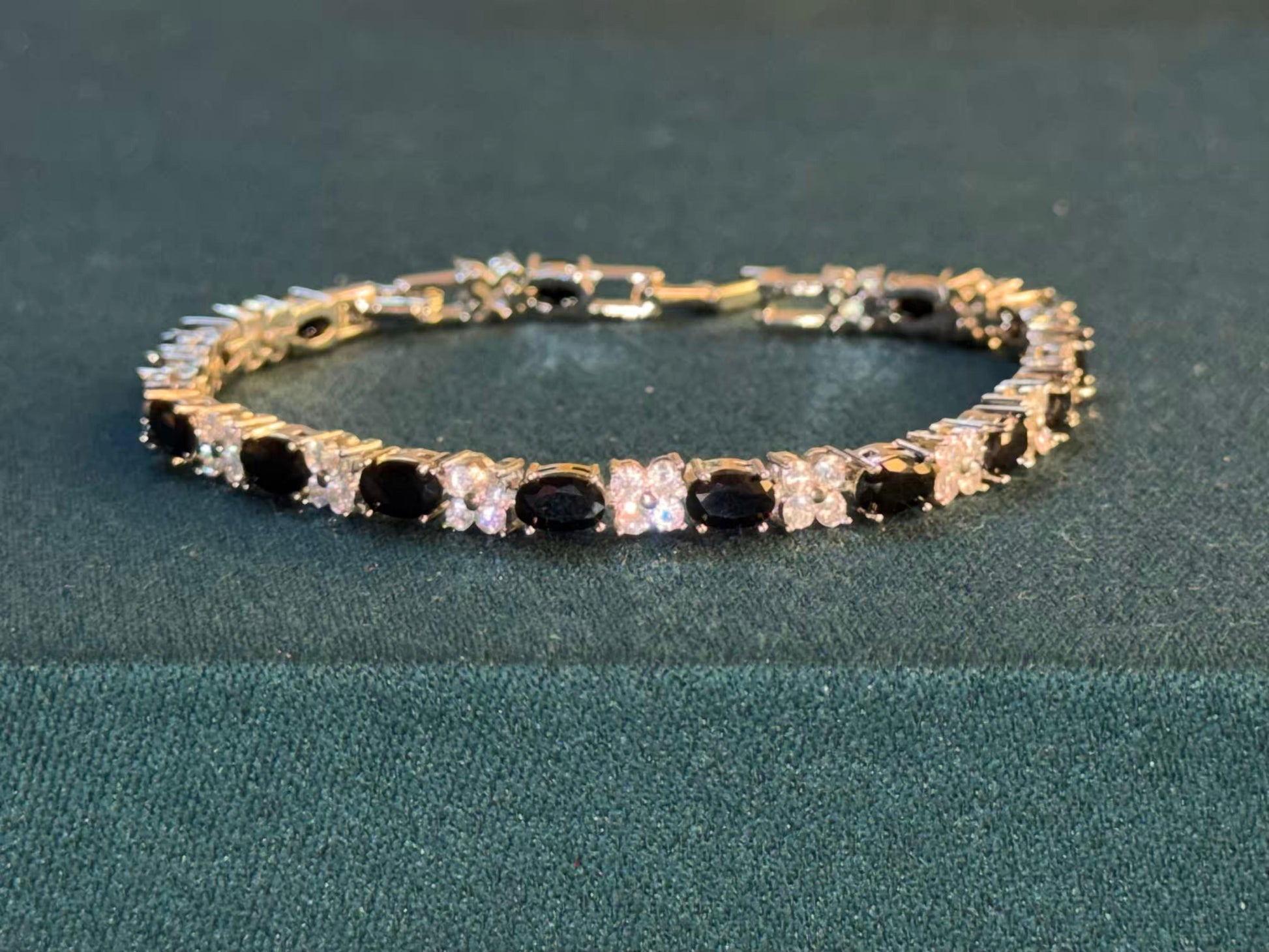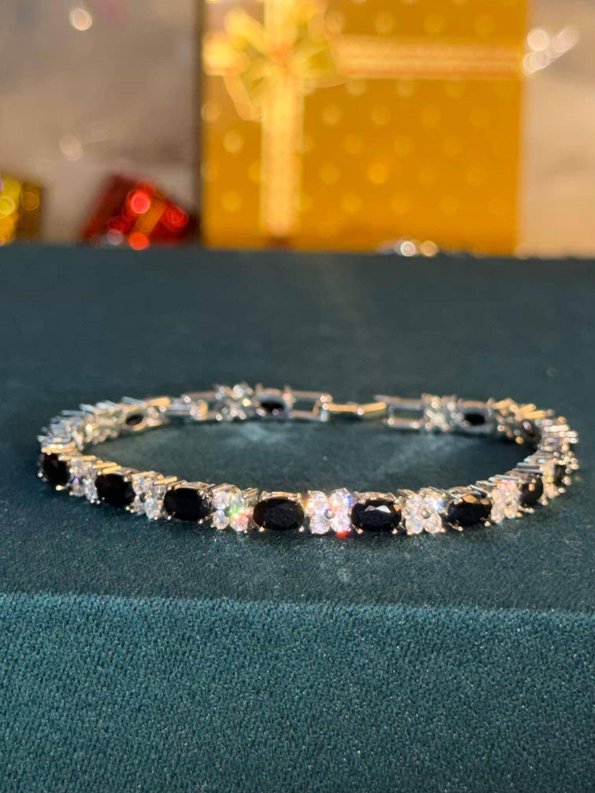 Black & White Oval Contrast Silver Plated Tennis Bracelet