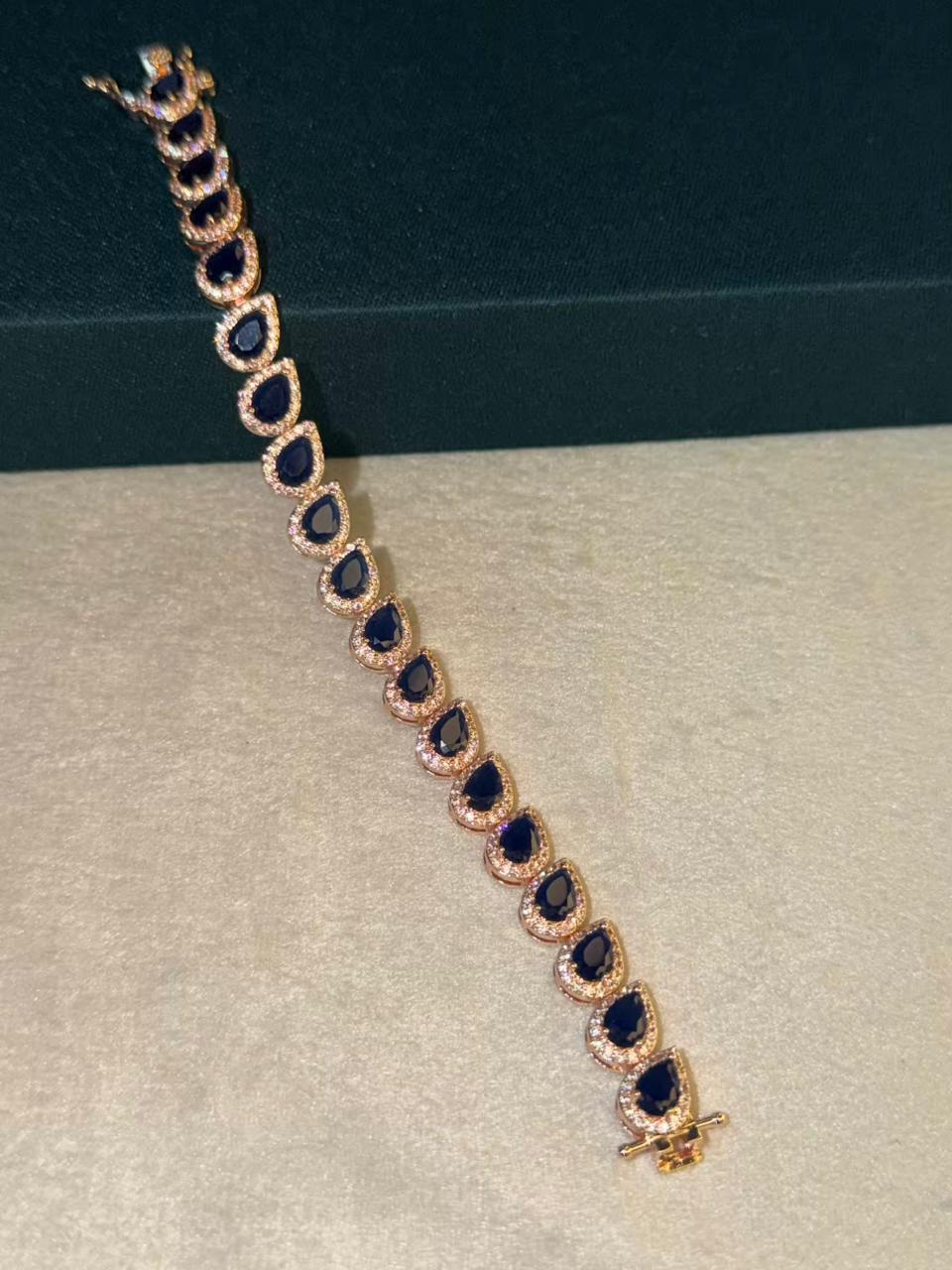 Blue Drop Shape Rose Gold Plated Tennis Bracelet
