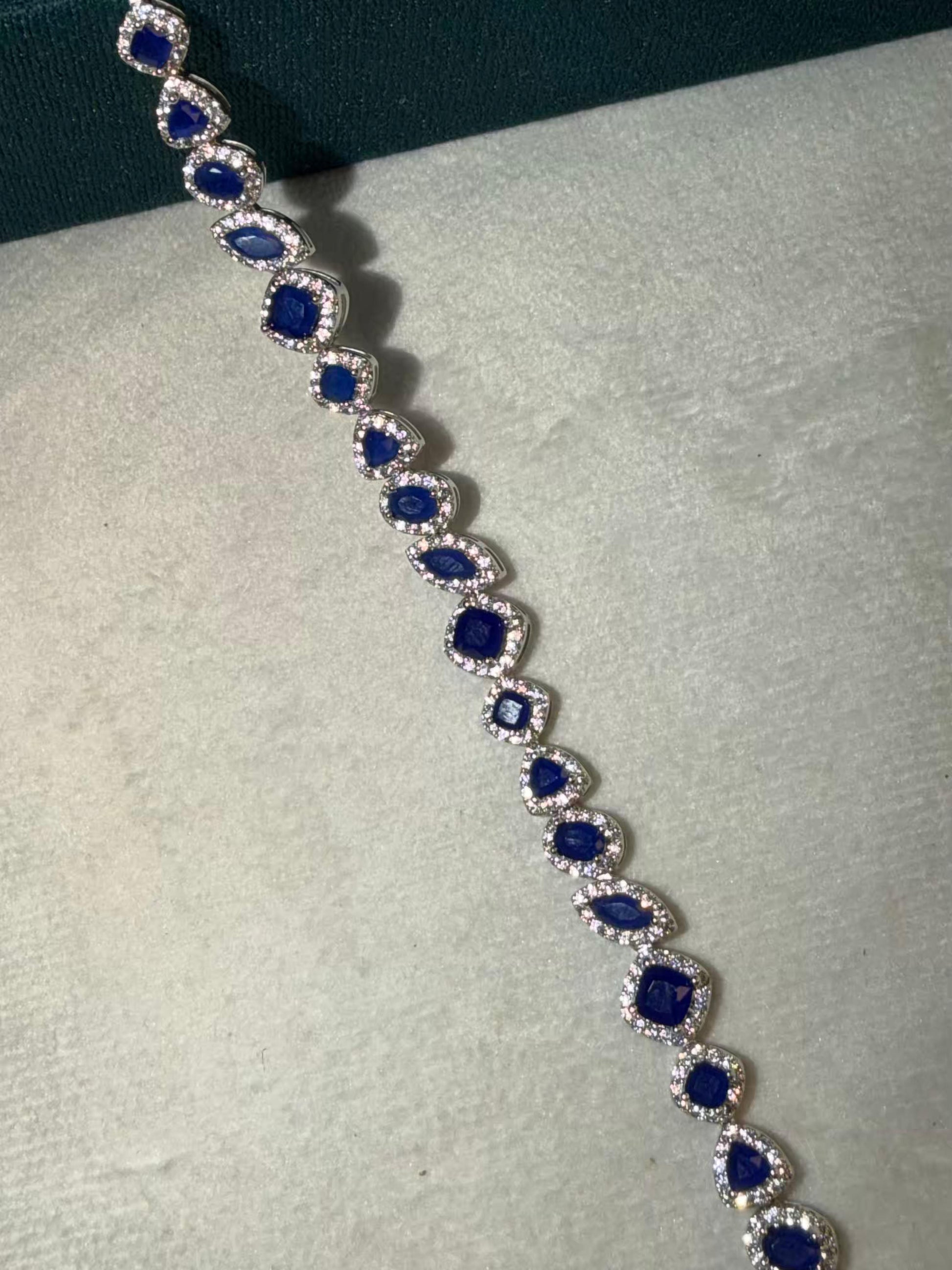 Blue Empress Halo Silver Plated Tennis Bracelet