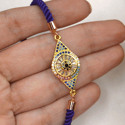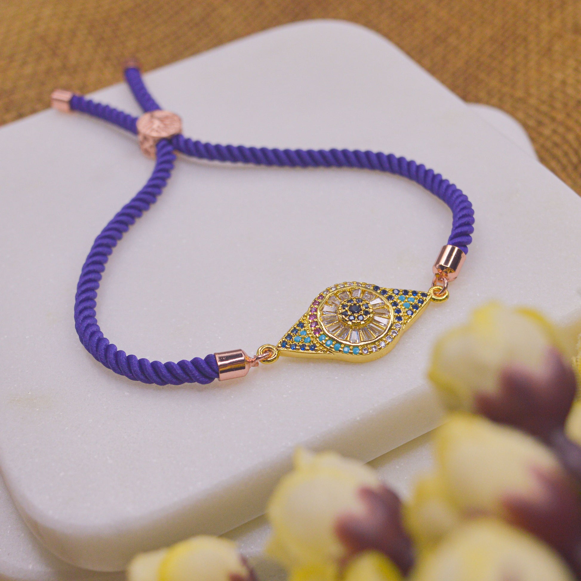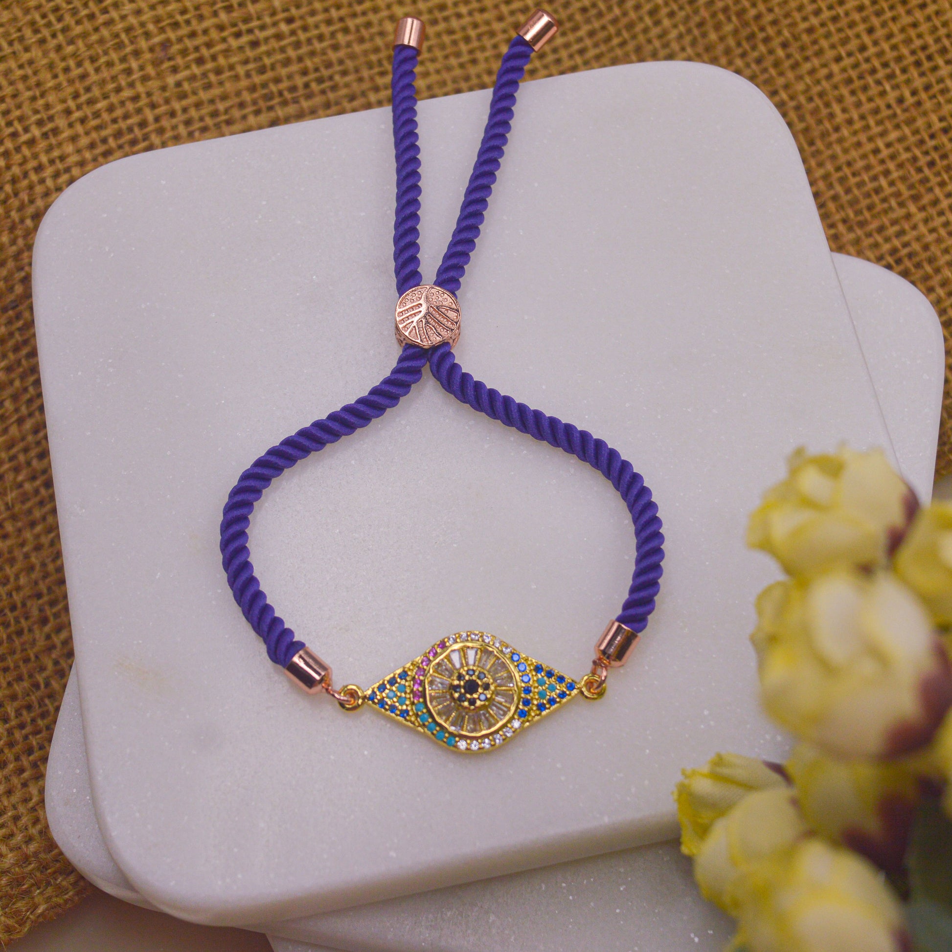 Blue Studded Evil Eye Bracelet with Purple Blue Band - Rose Gold