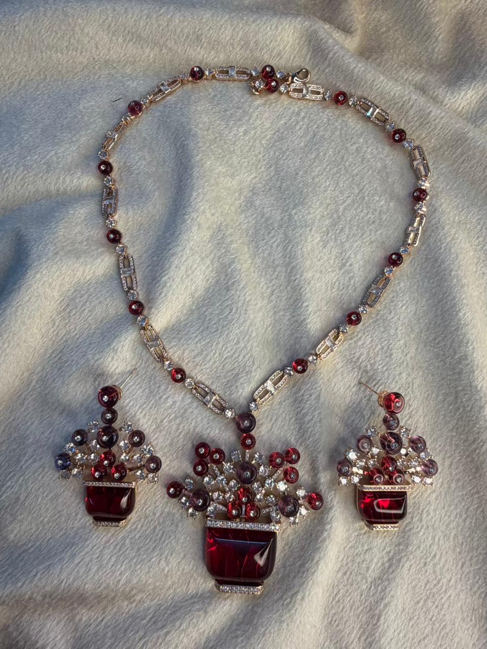 Ruby Stone Designer Necklace Set with Earrings – Crimson Crown Heirloom