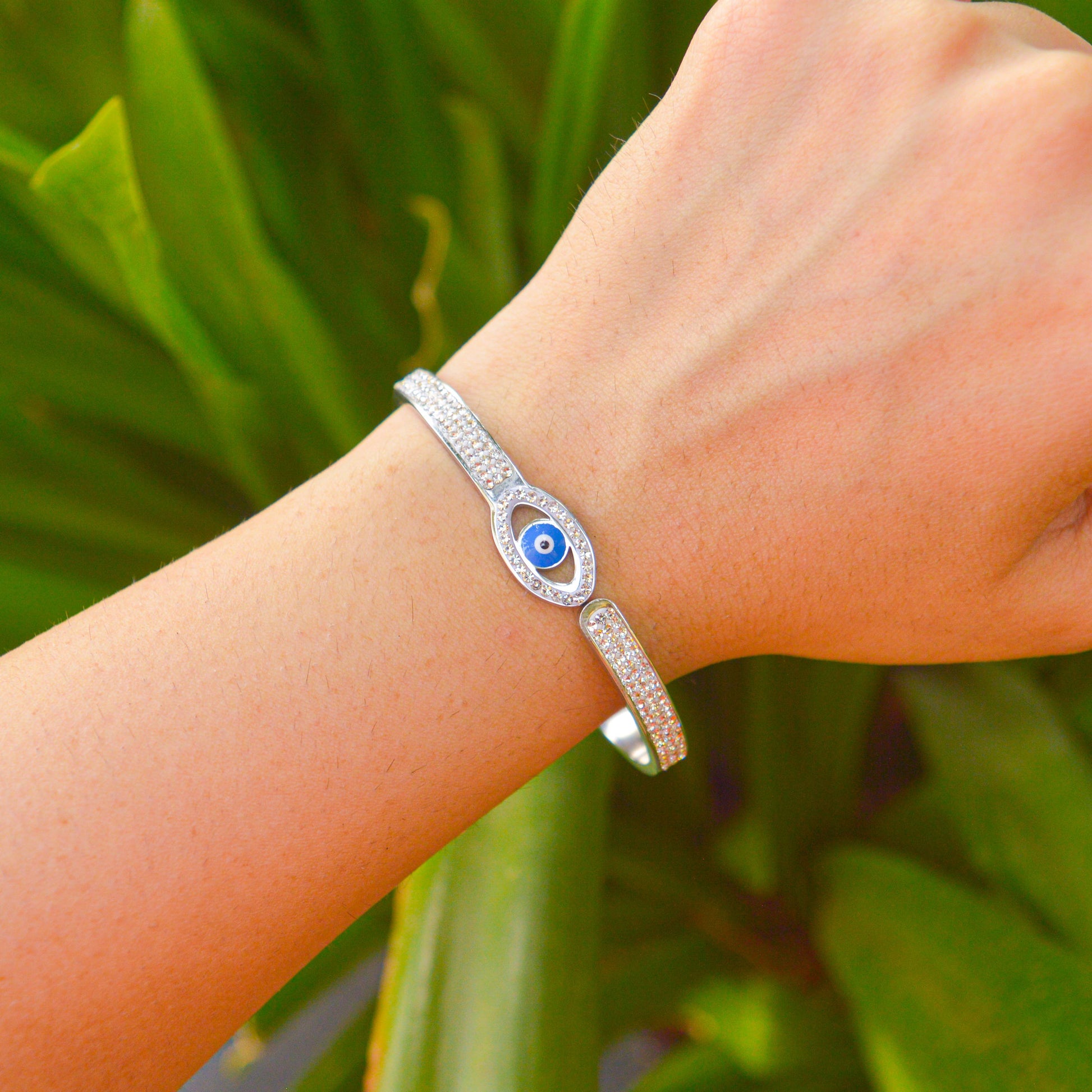 Catchy Evil Eye Studded Kadha Bracelet Bangle ( Silver )