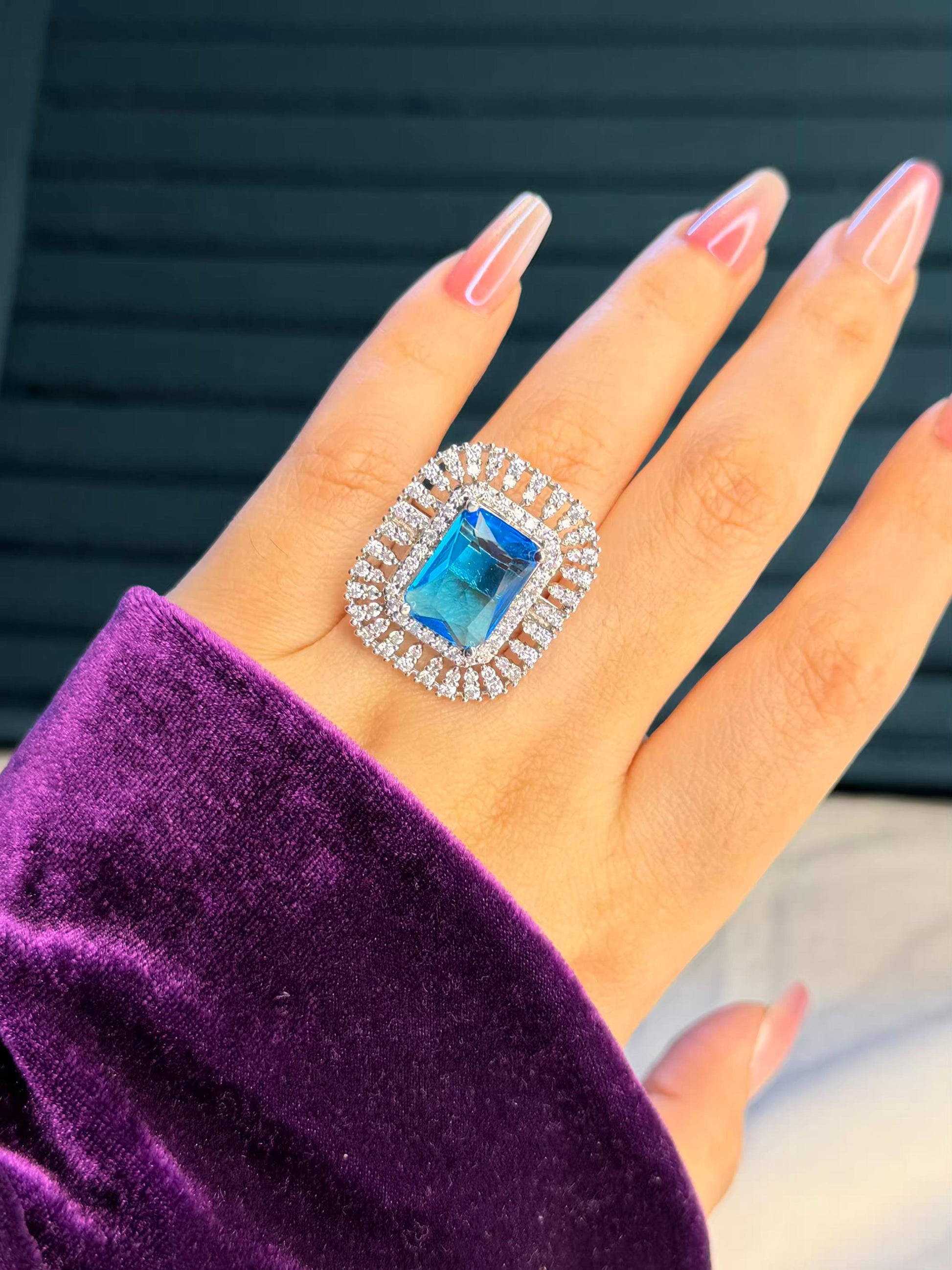 Celeste Blue Sovereign Silver Plated Premium Ring (Adjustable)