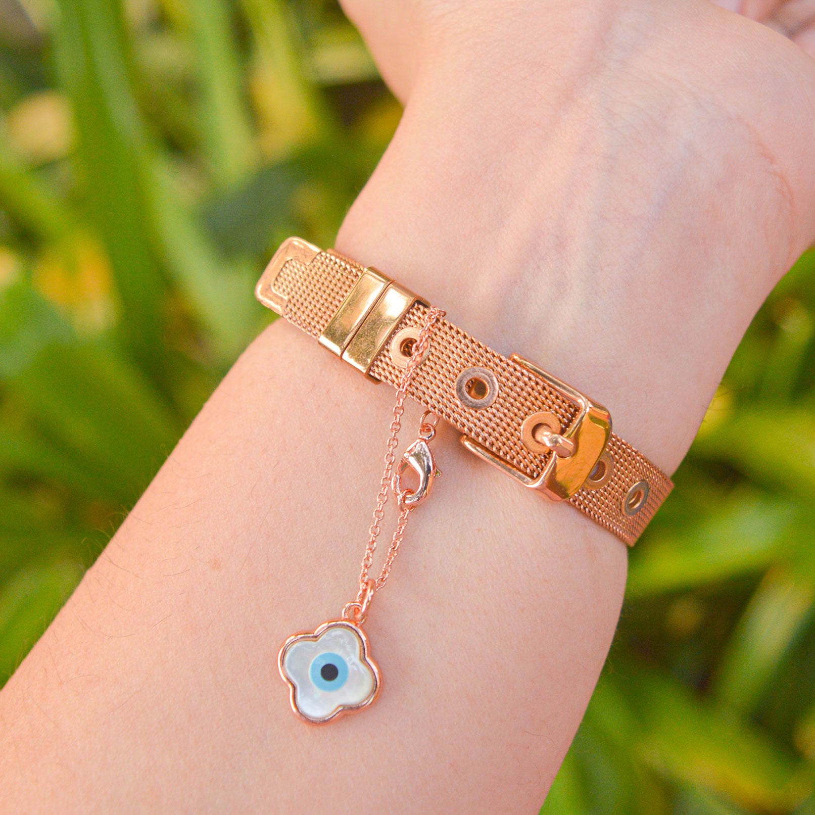 Clover Evil Eye Watch Charm ( Rose Gold )