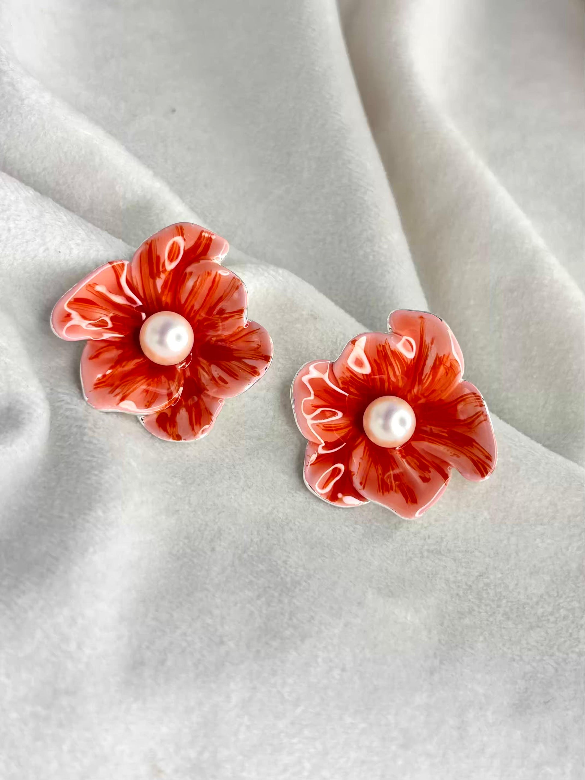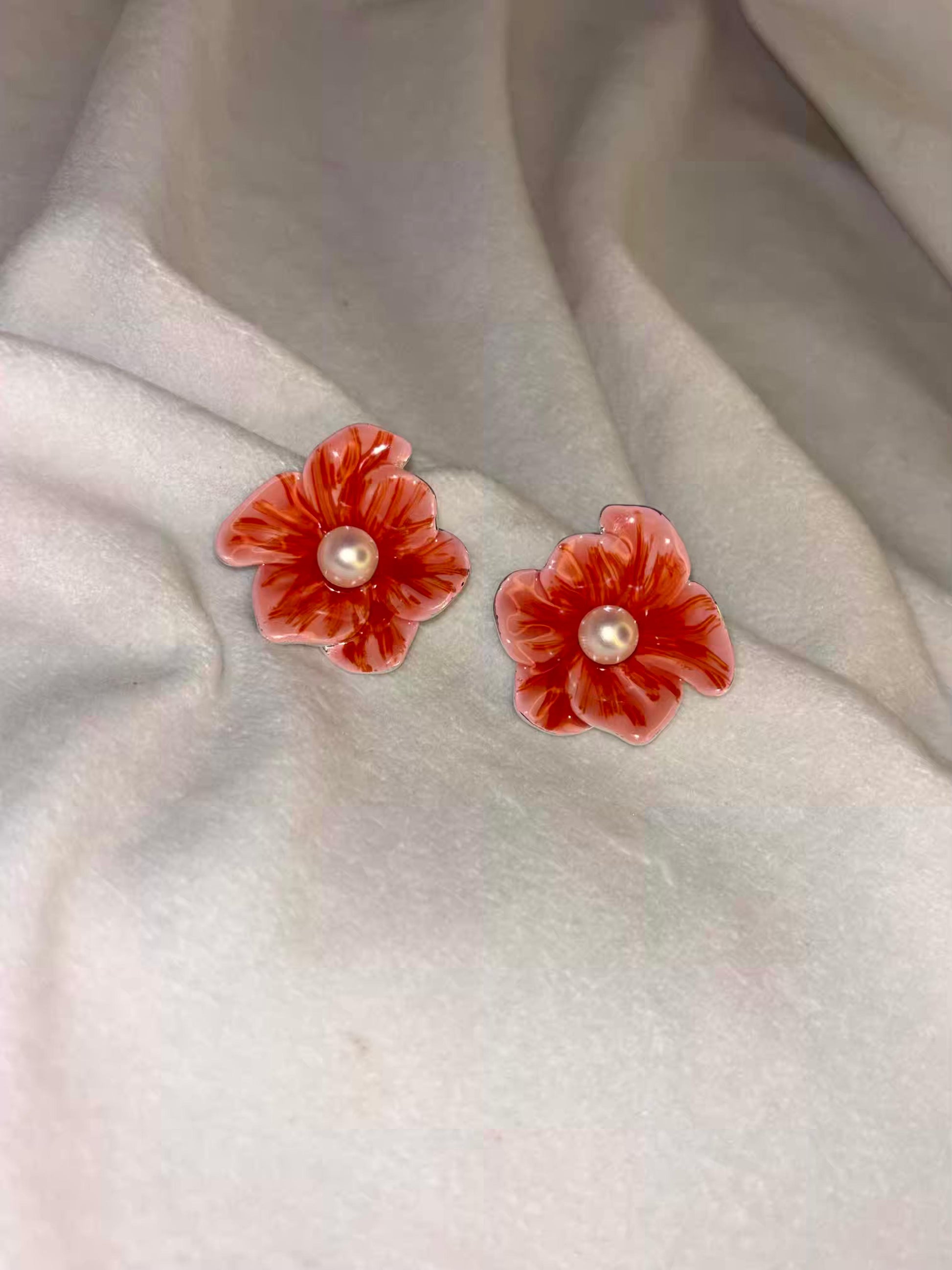 Orange Flora Ear Studds 18K Gold Plated Premium Earrings