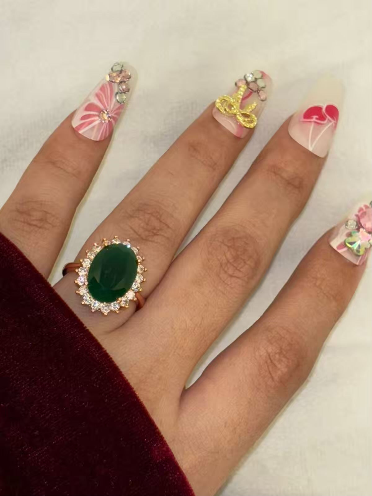 Princess Green Emerald Solitaire Adjustable Ring ( Rose Gold)