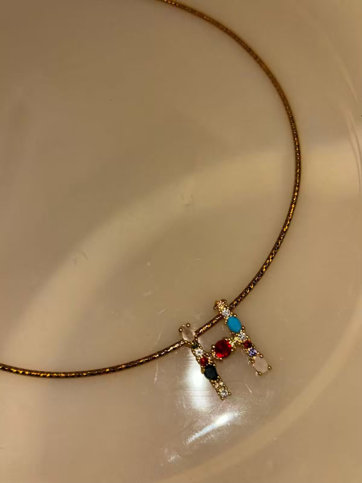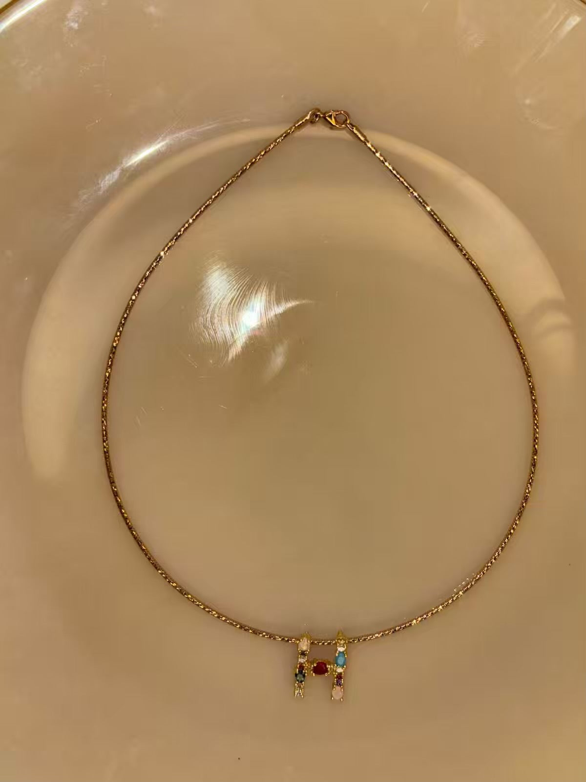 Initial H Choker Multicoloured Necklace - Rose Gold chain