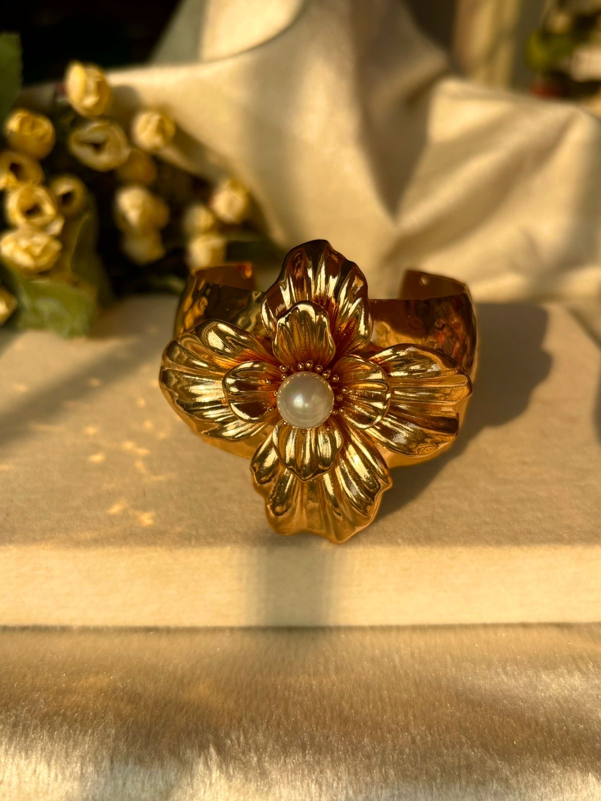 Levi’s Gold Bloomy Pearls Kada Bracelet Bangle - Gold