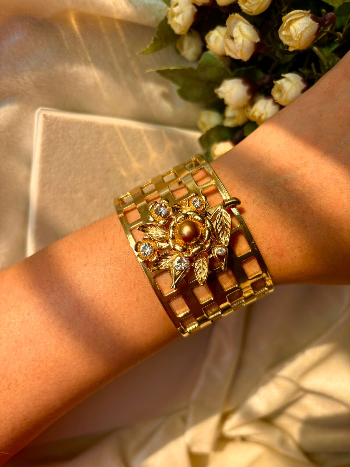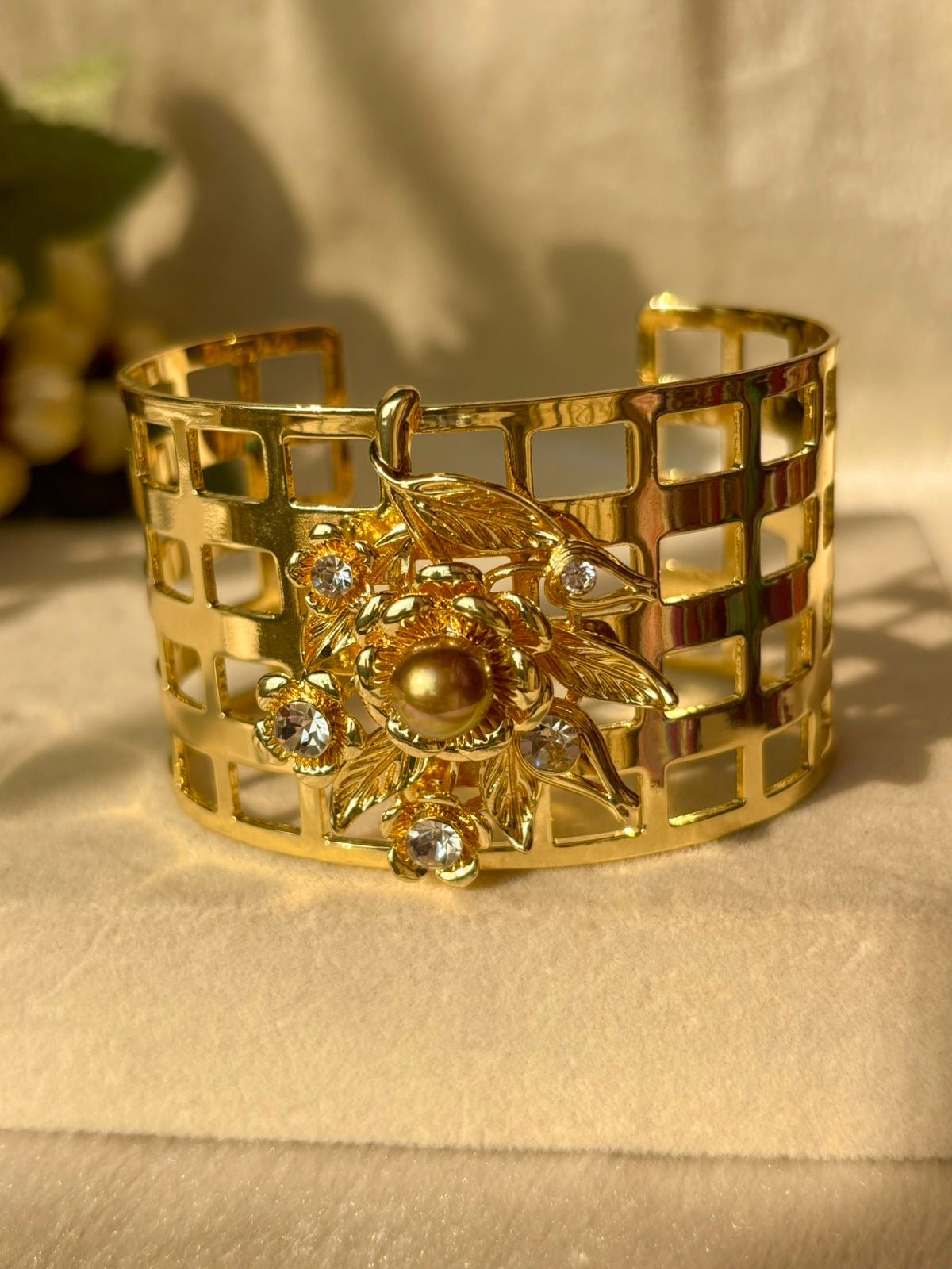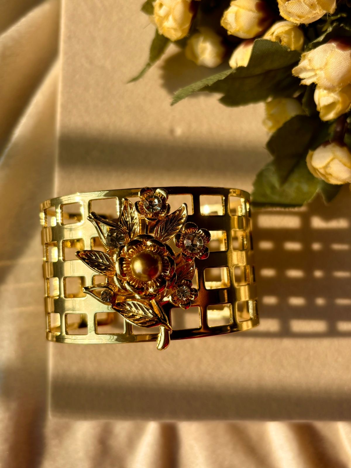 Cleopatra Gold Pearly Flower Kada Bracelet Bangle - Gold