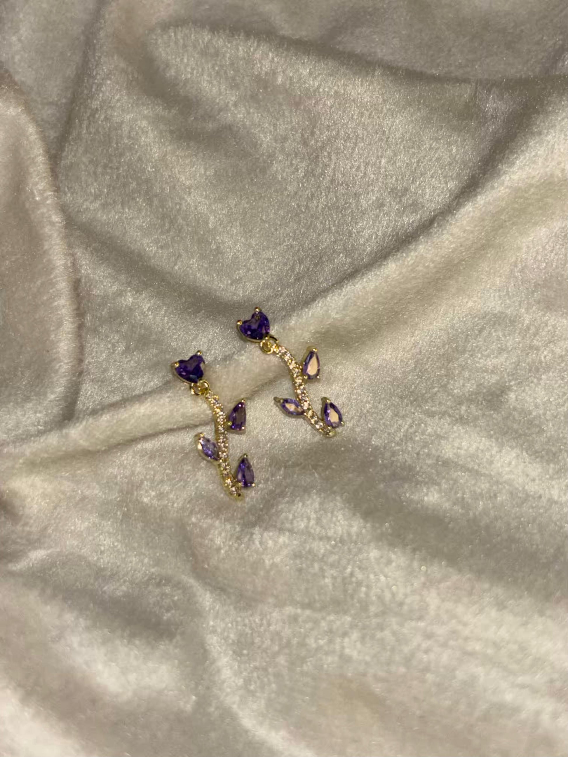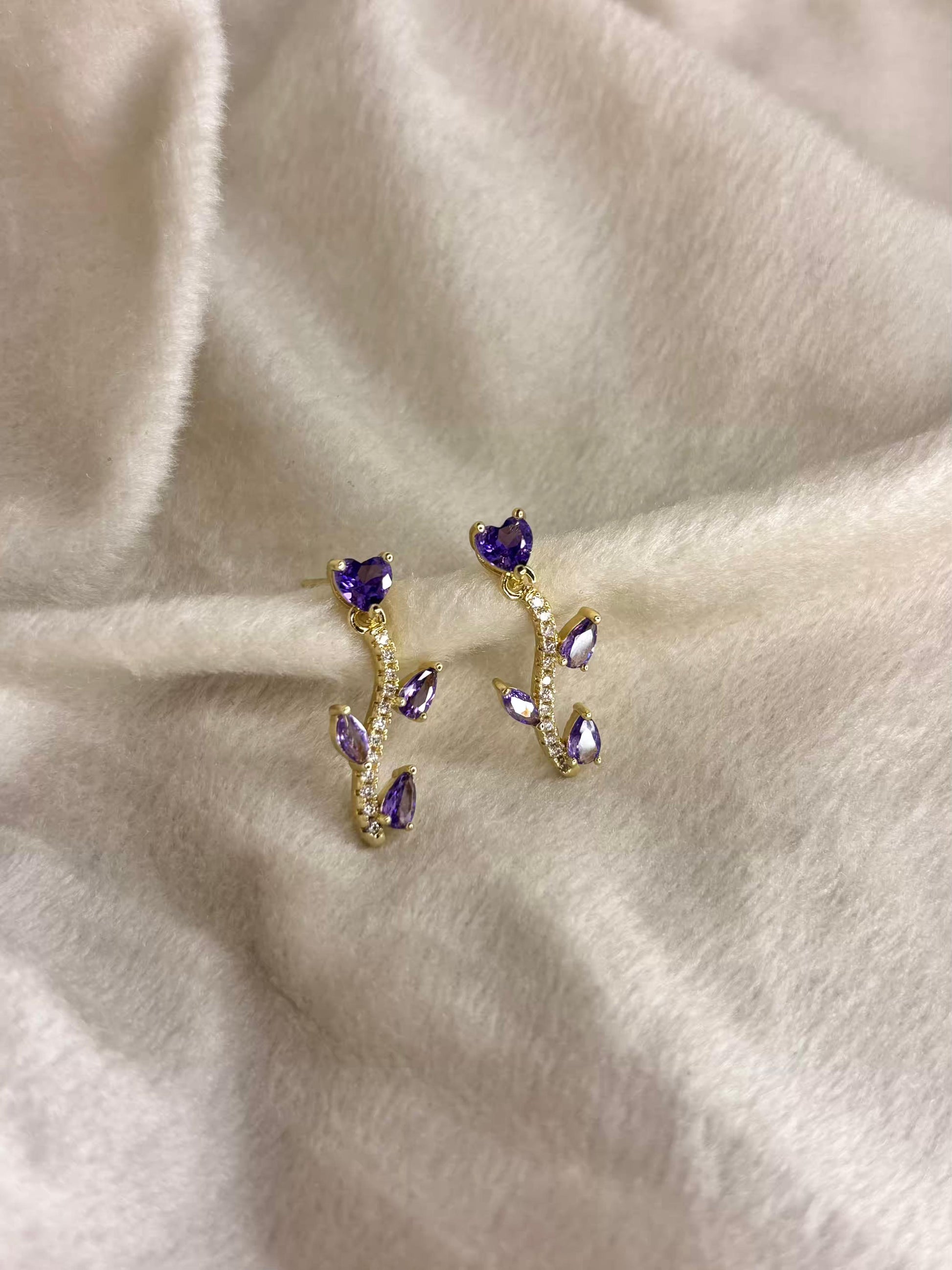 Purple Rose Stalk Earrings 18K Gold Plated Premium Earrings