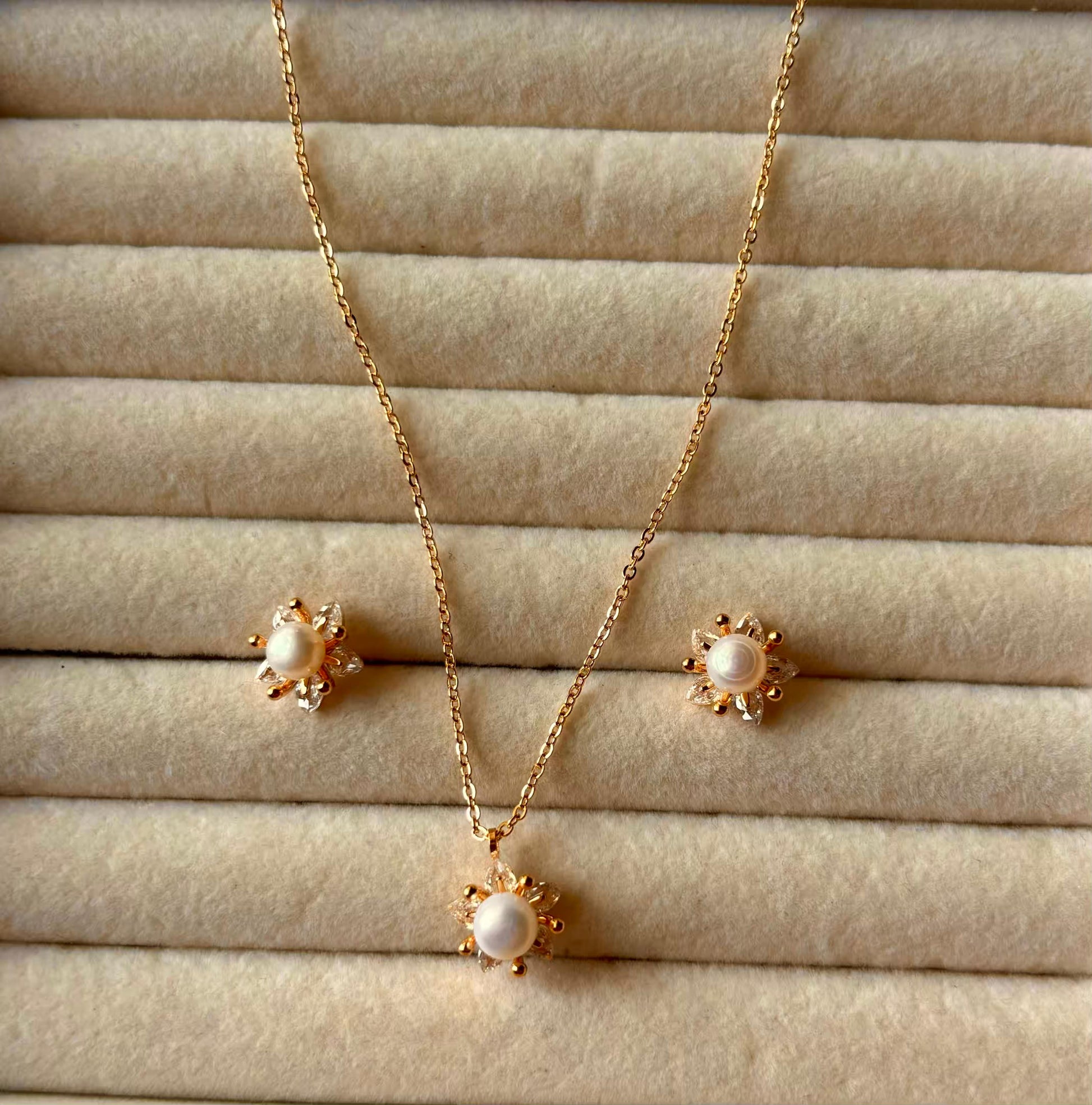 Pearl Studded Necklace And Ear Studds Rose Gold Plated Premium Necklace
