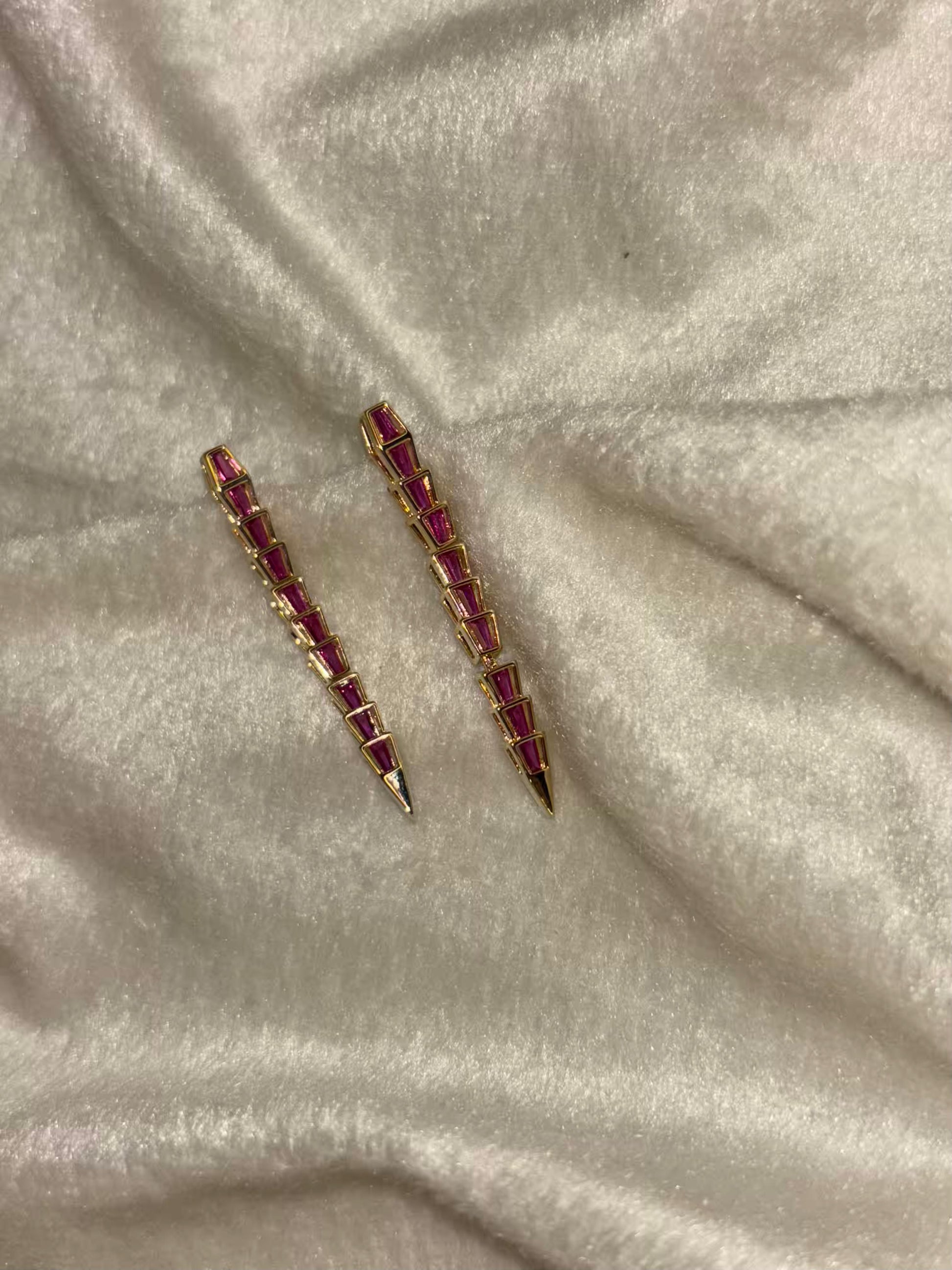 Ruby Centipede SnakeEarrings 18K Gold Plated Premium Earrings