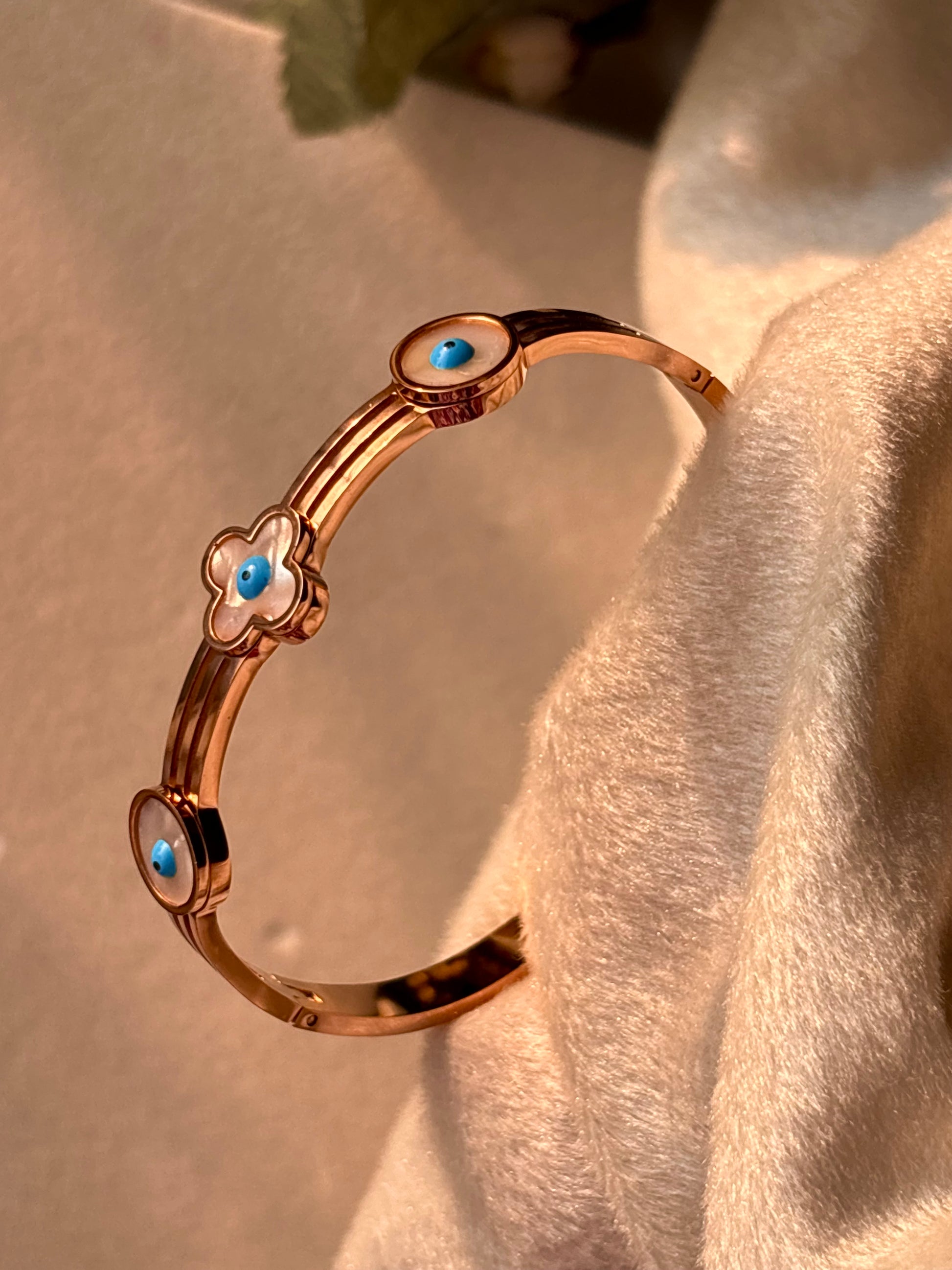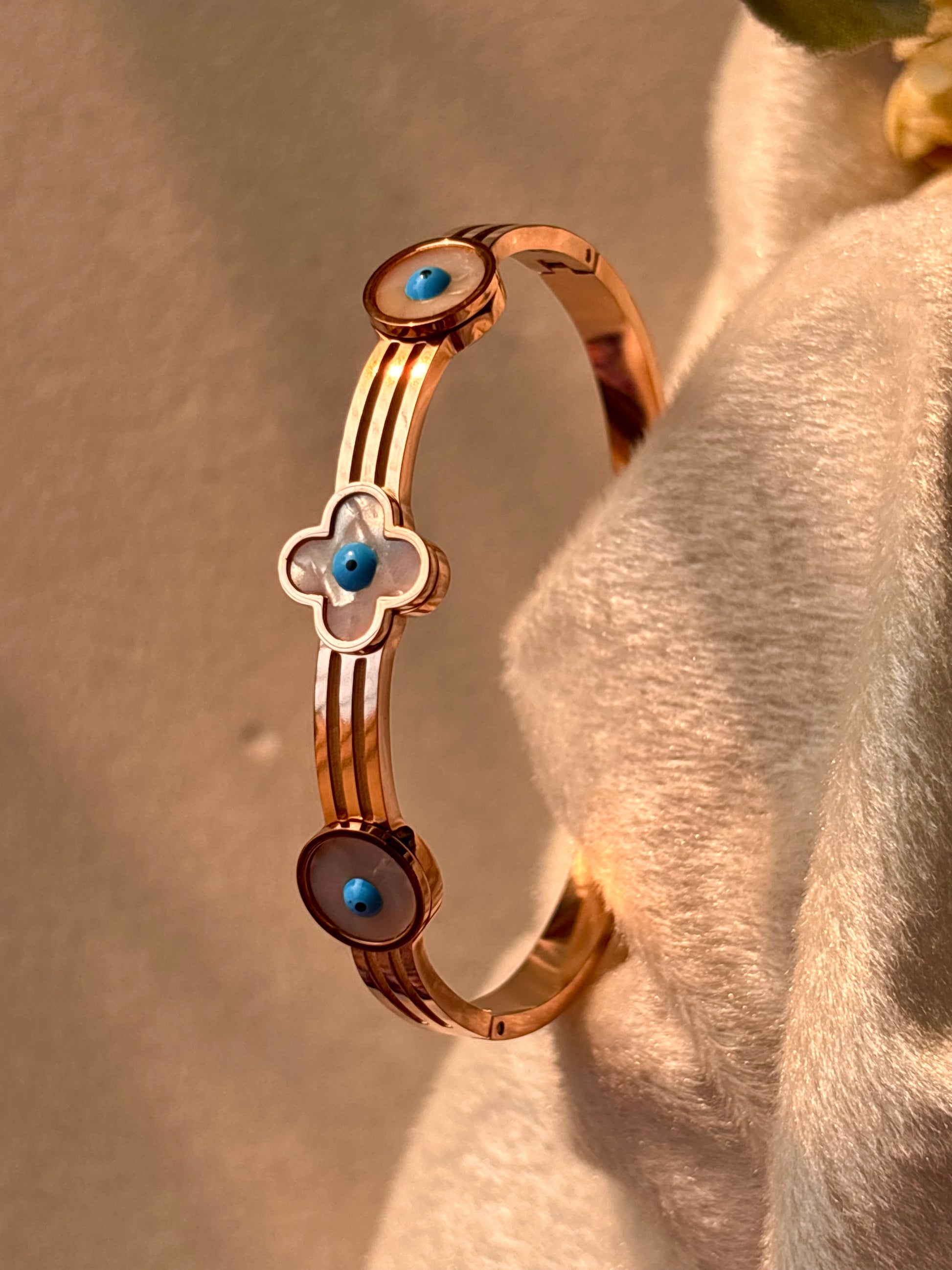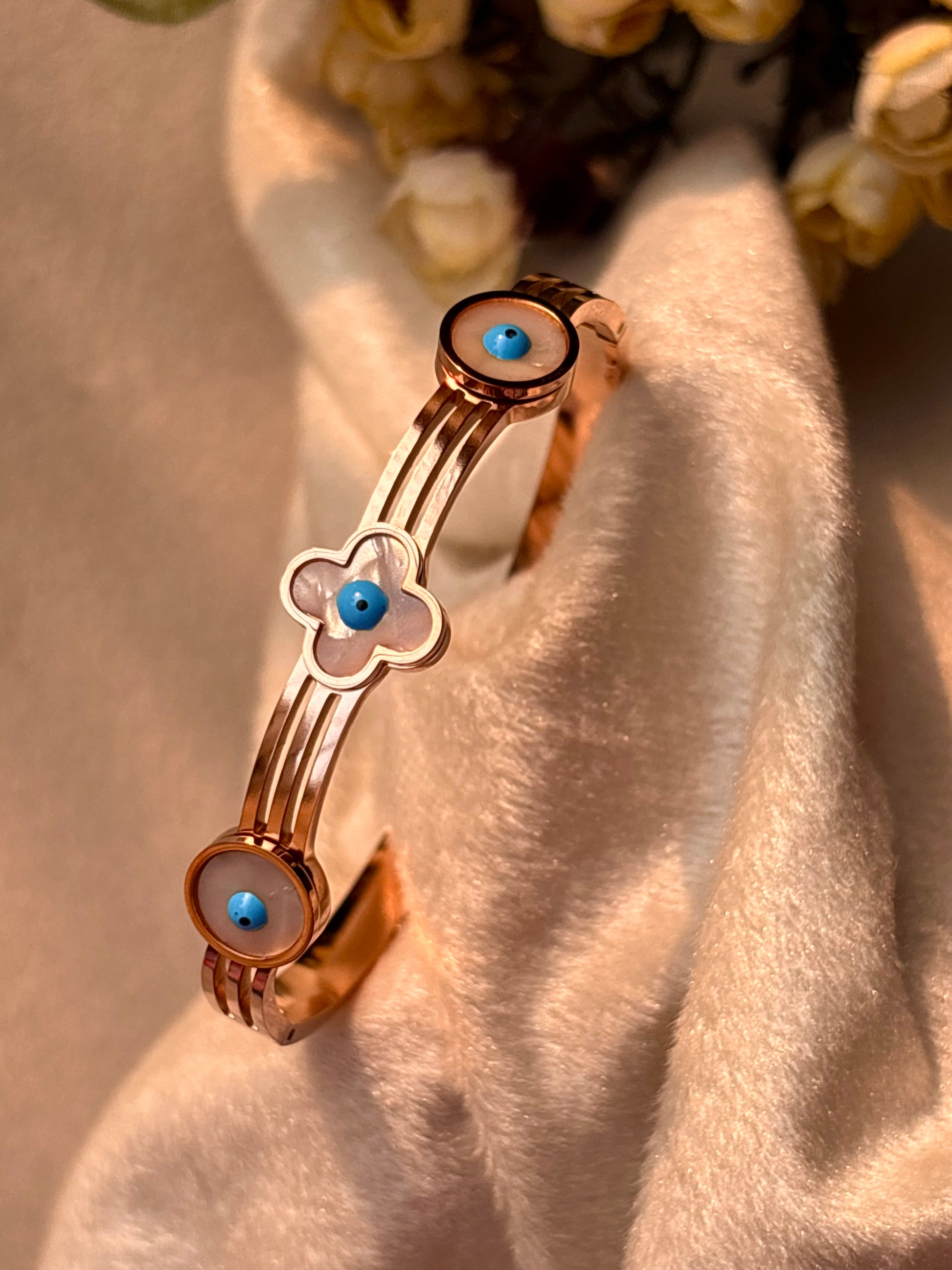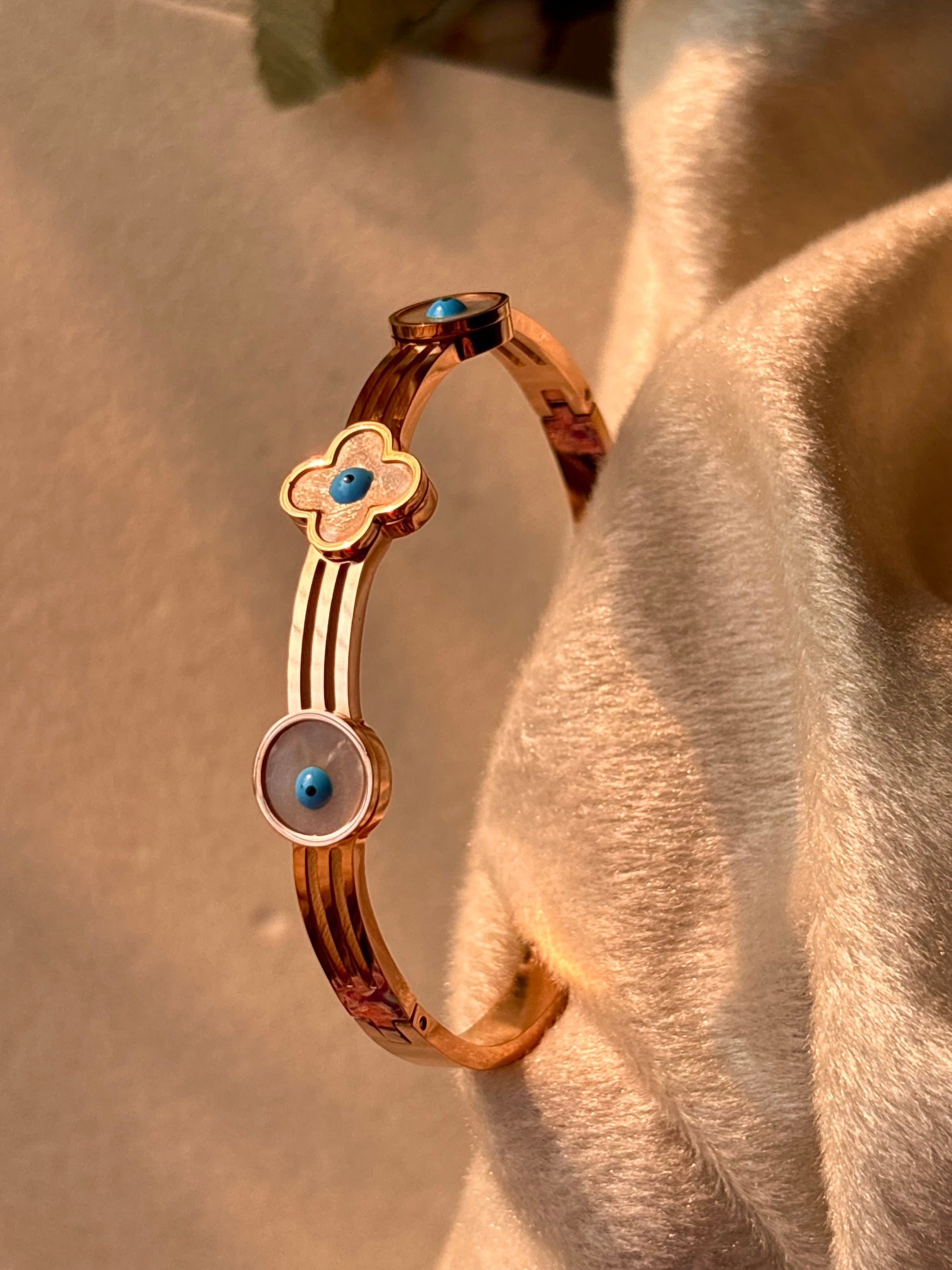 Clover Evil Eye Kada Bracelet Bangle - Rose Gold