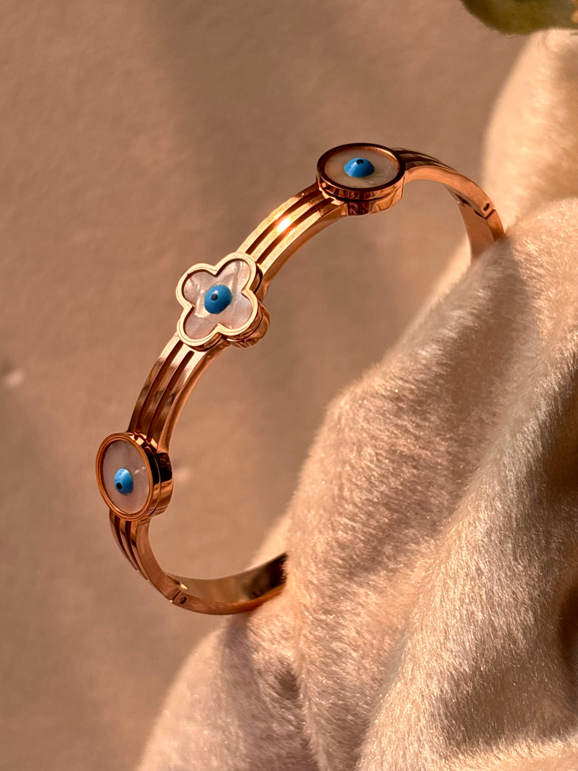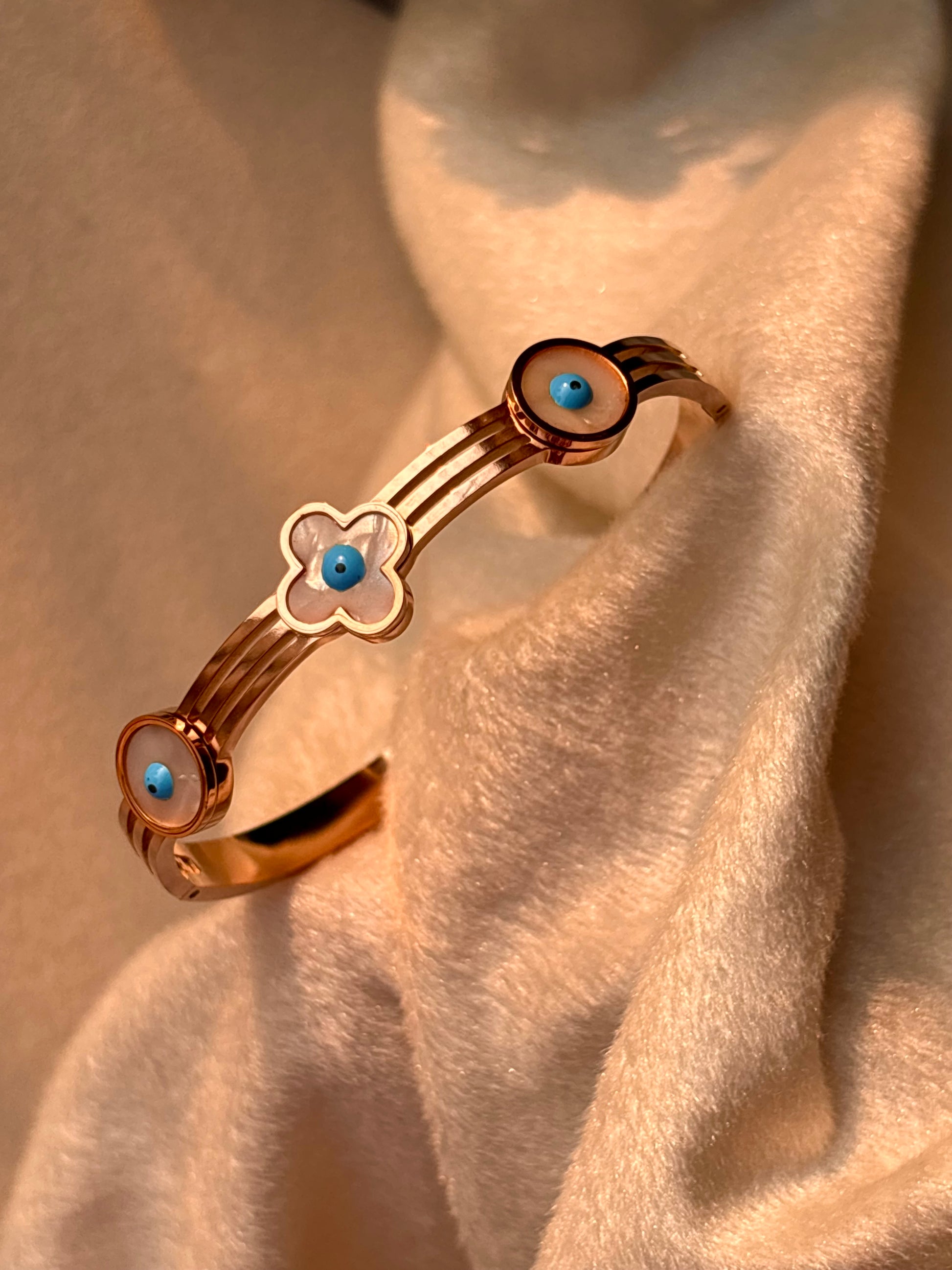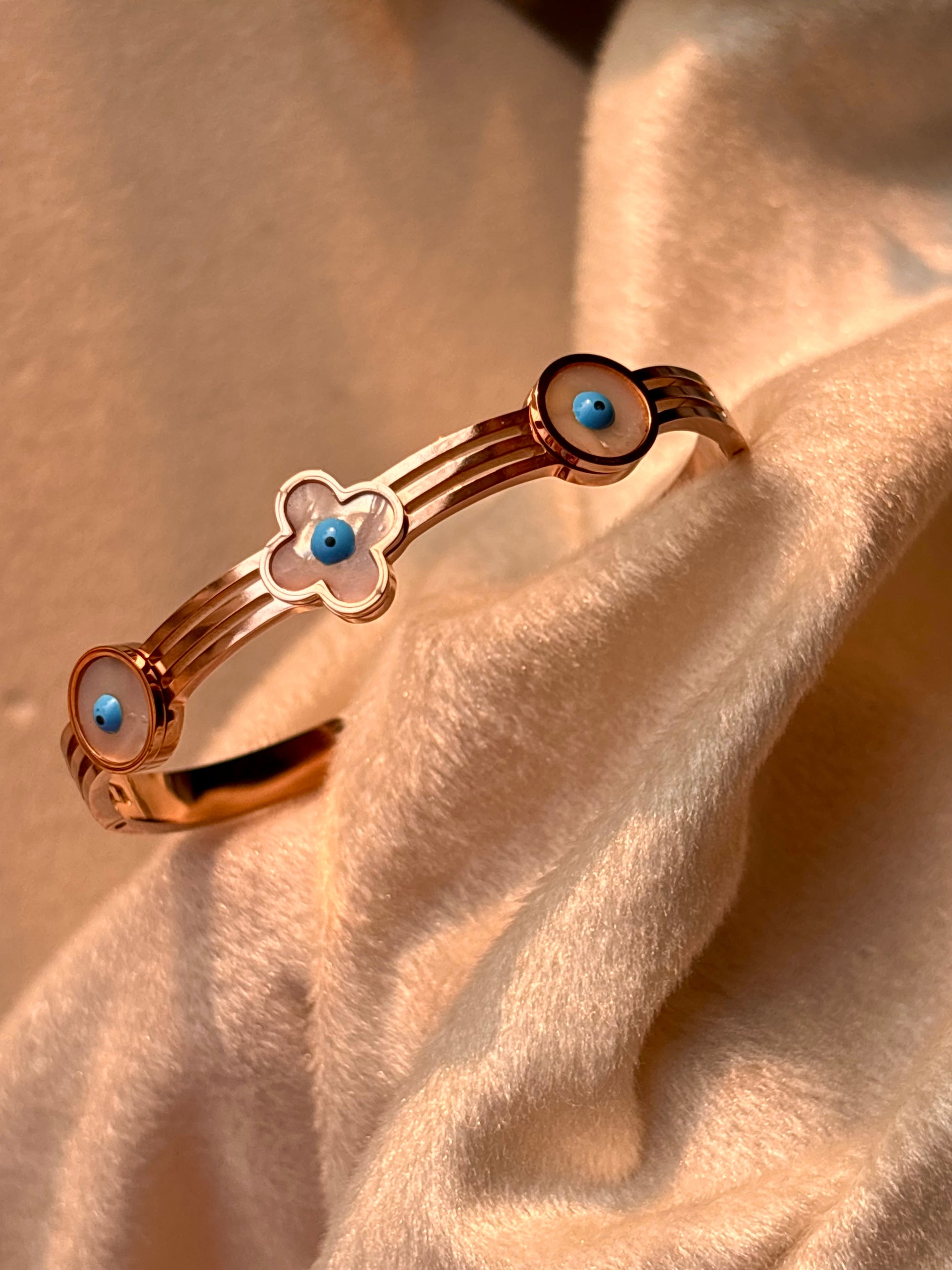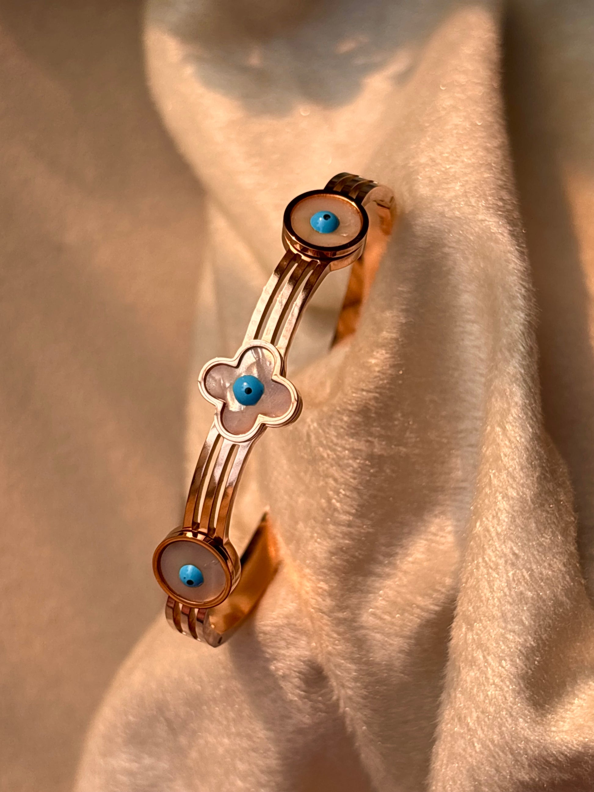 Clover Evil Eye Kada Bracelet Bangle - Rose Gold
