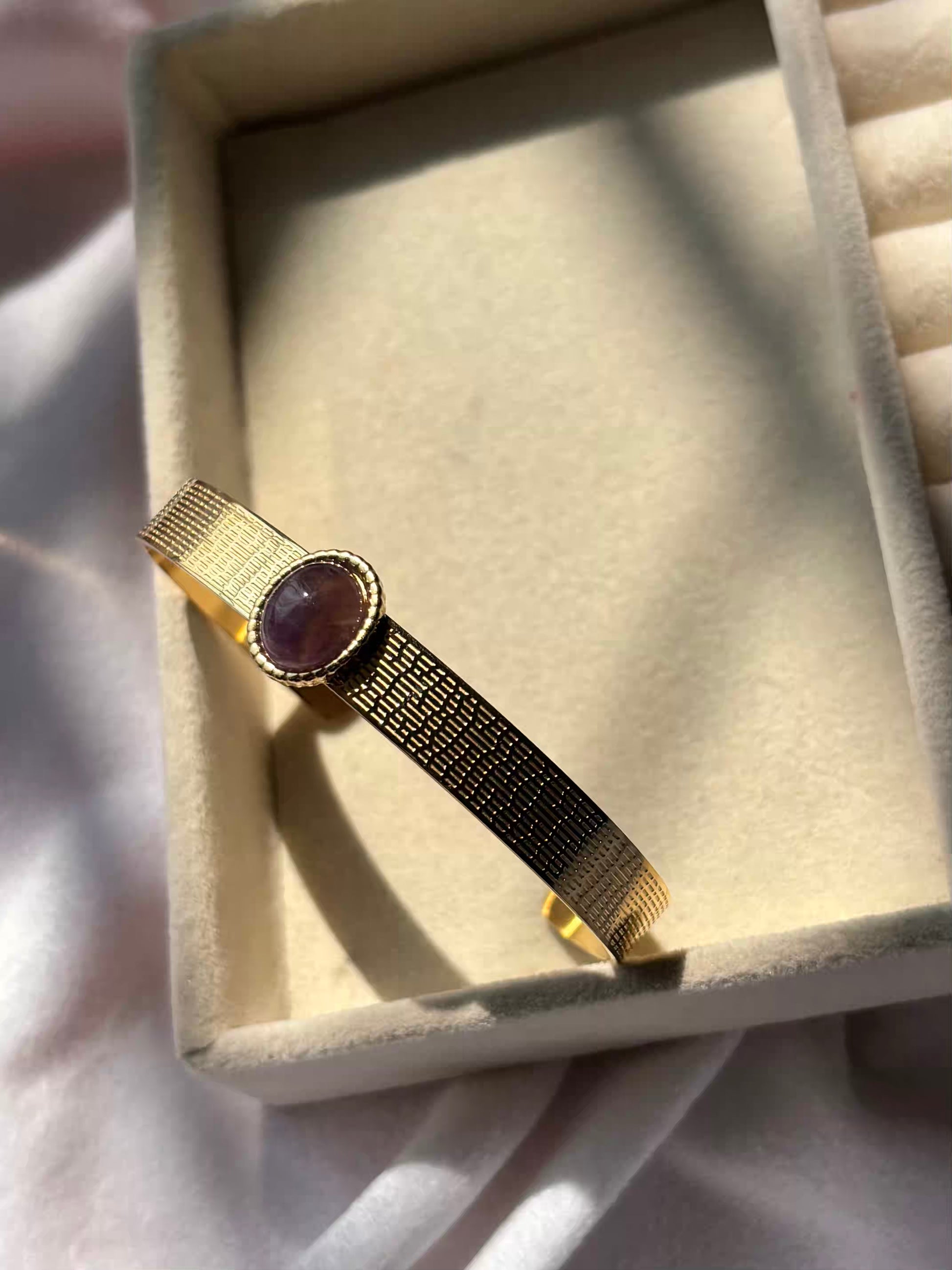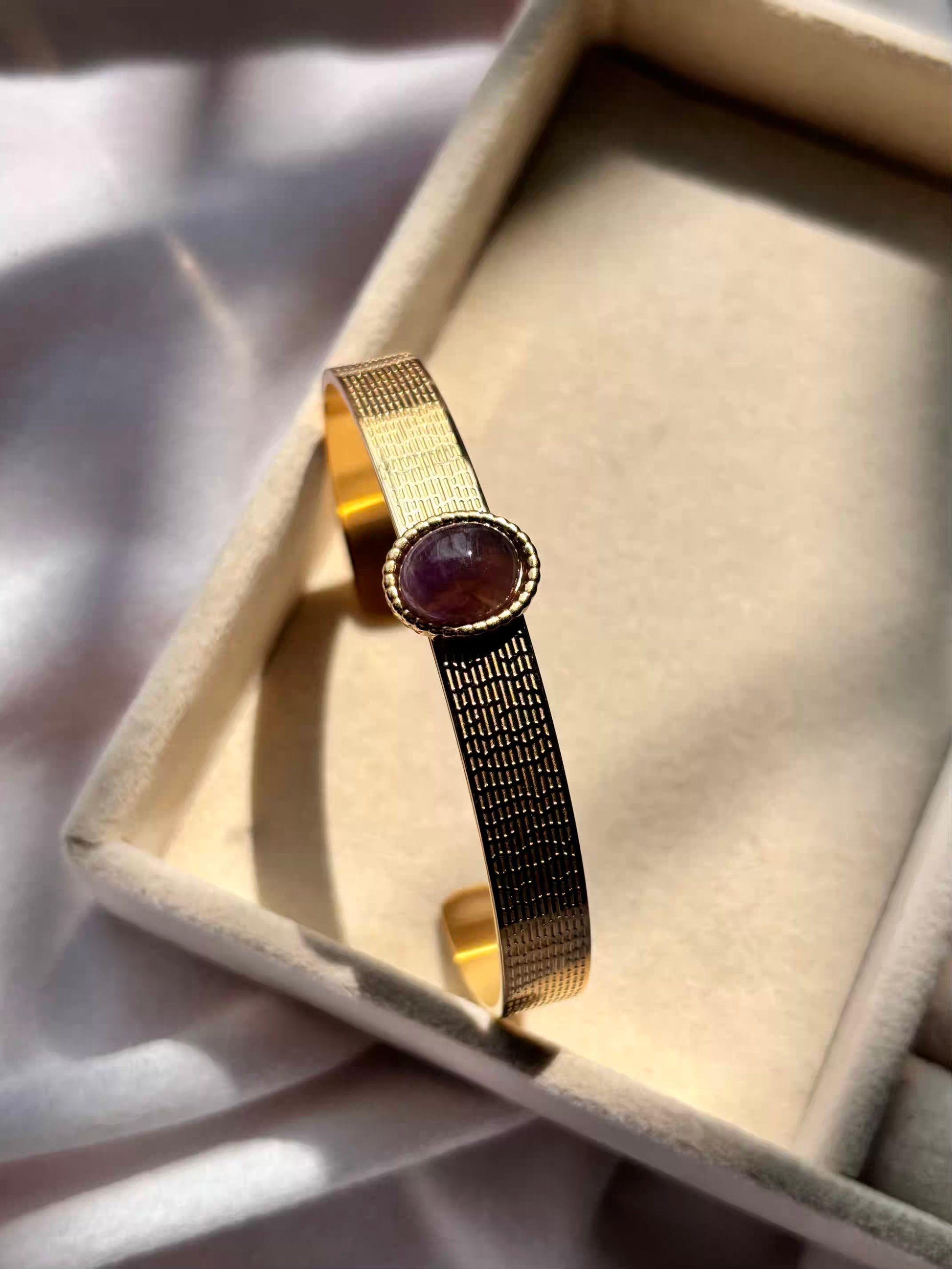 Raspberry Stone Kada Bracelet Bangle - Gold