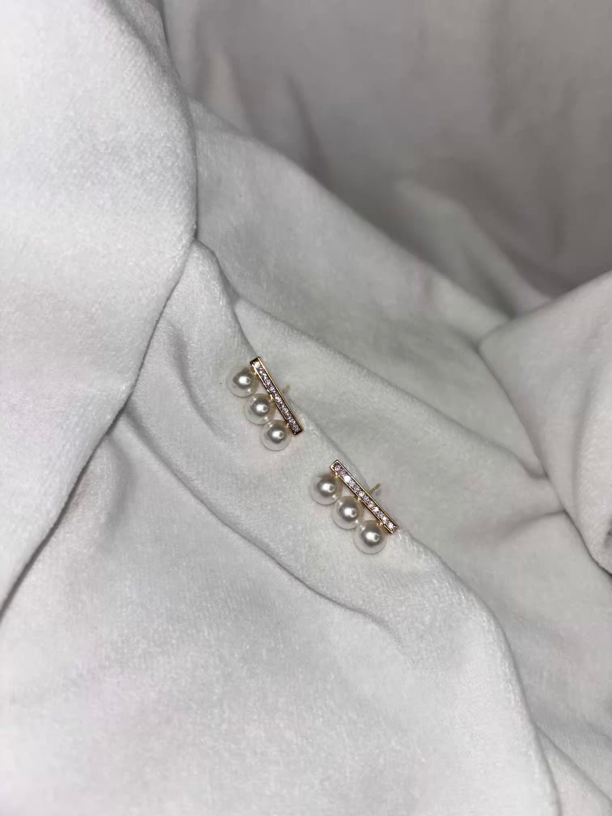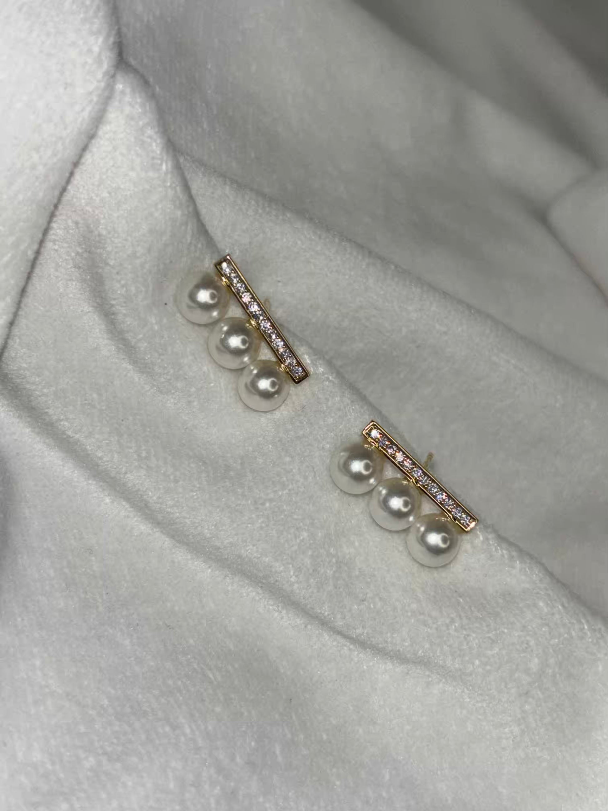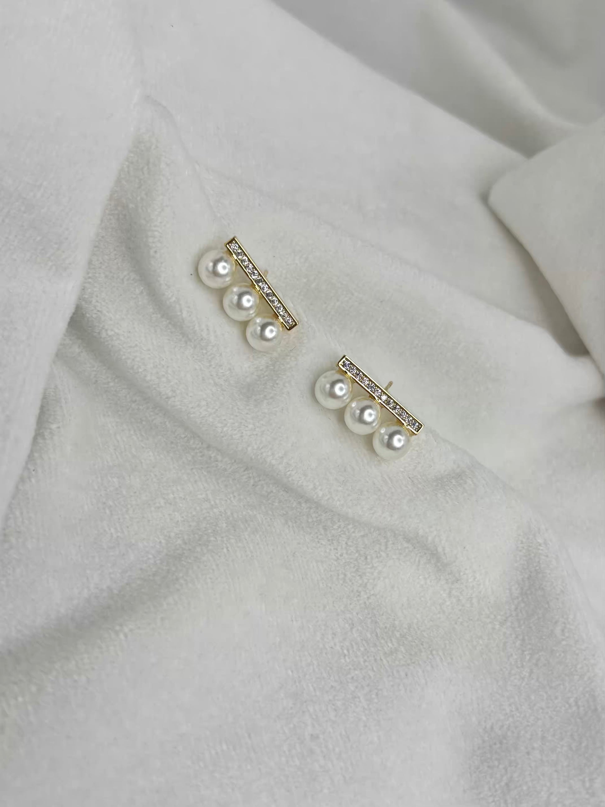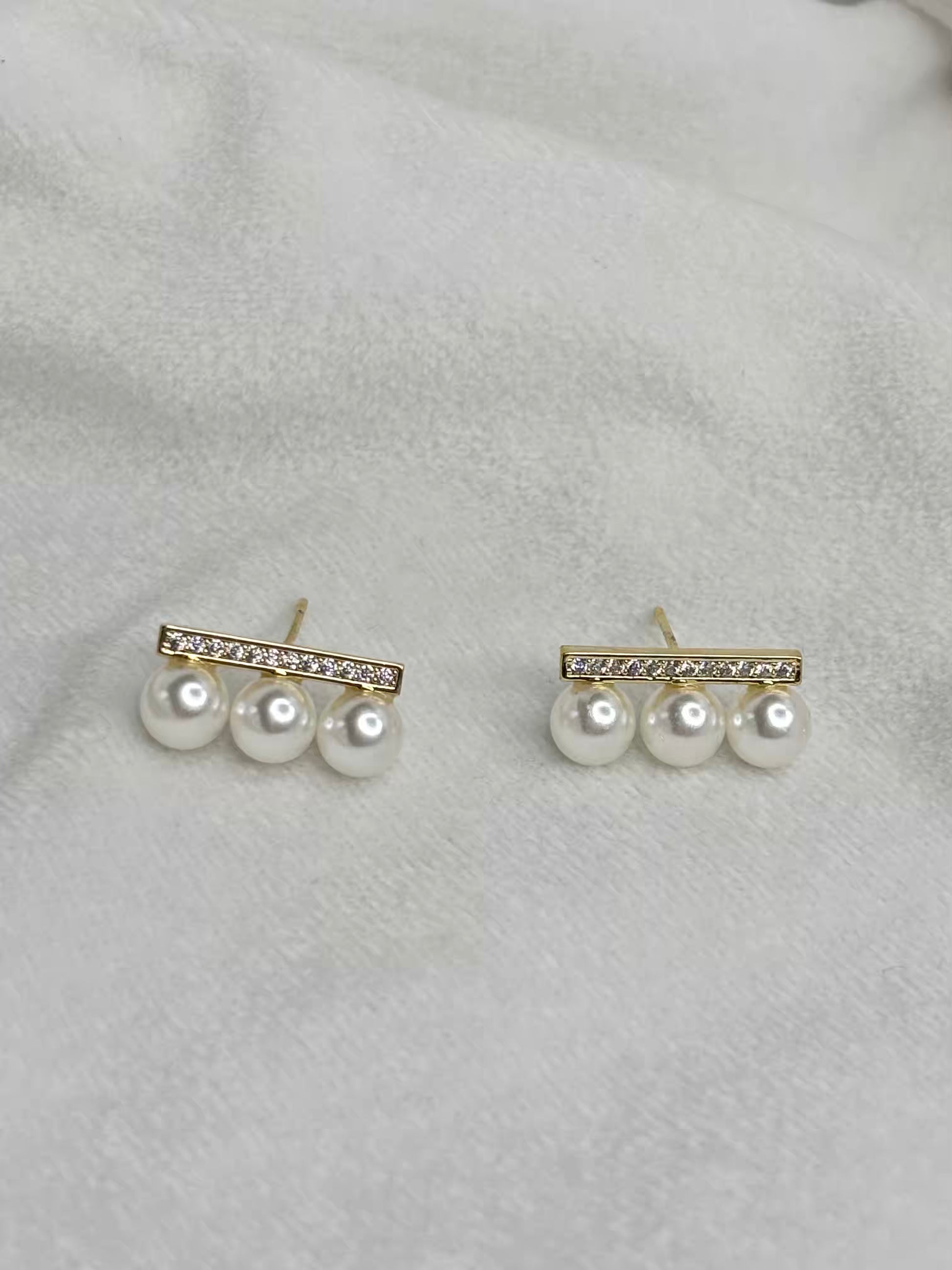 Linear Small Pearls Basic Earrings Studs - Silver Plated
