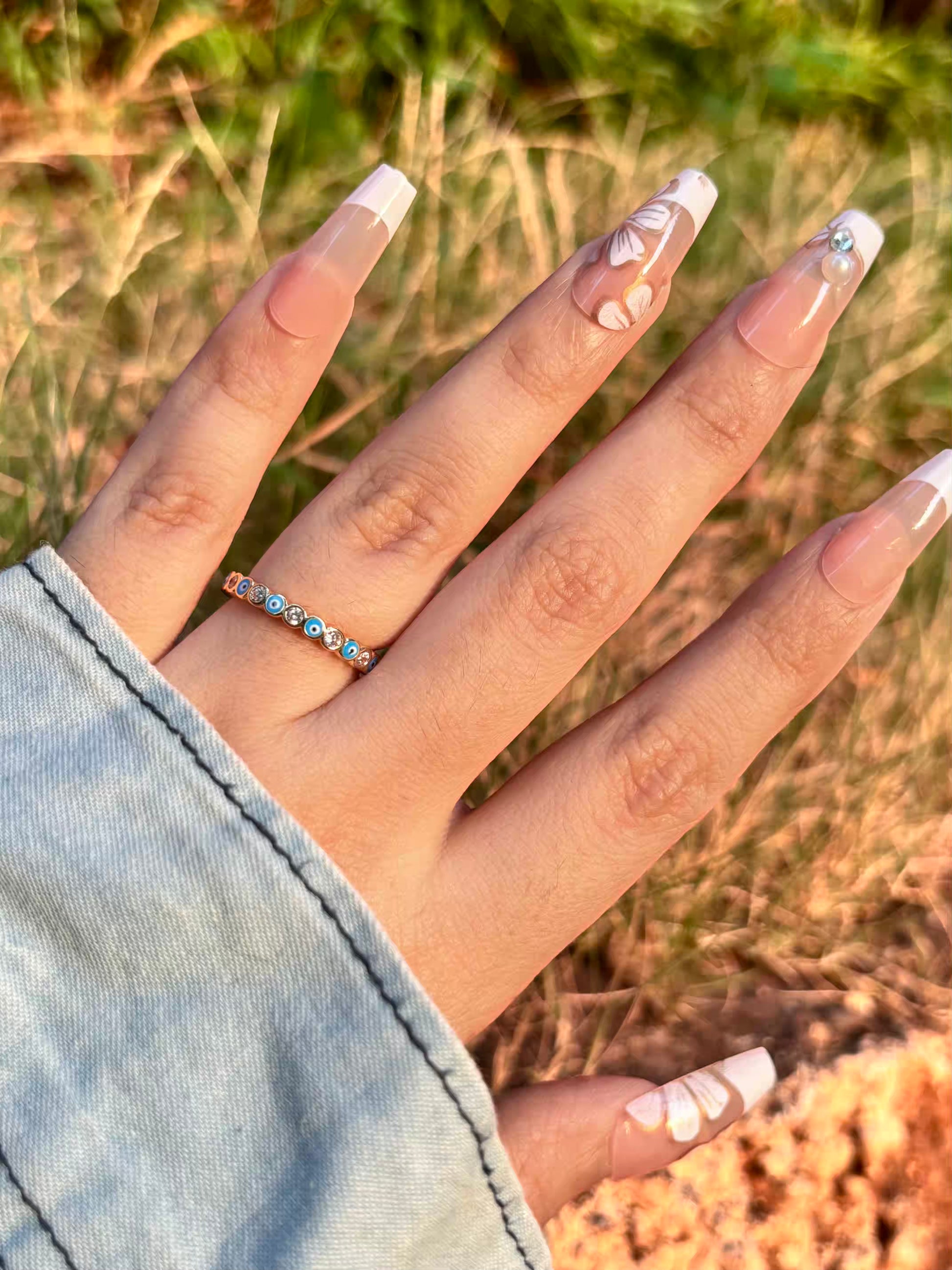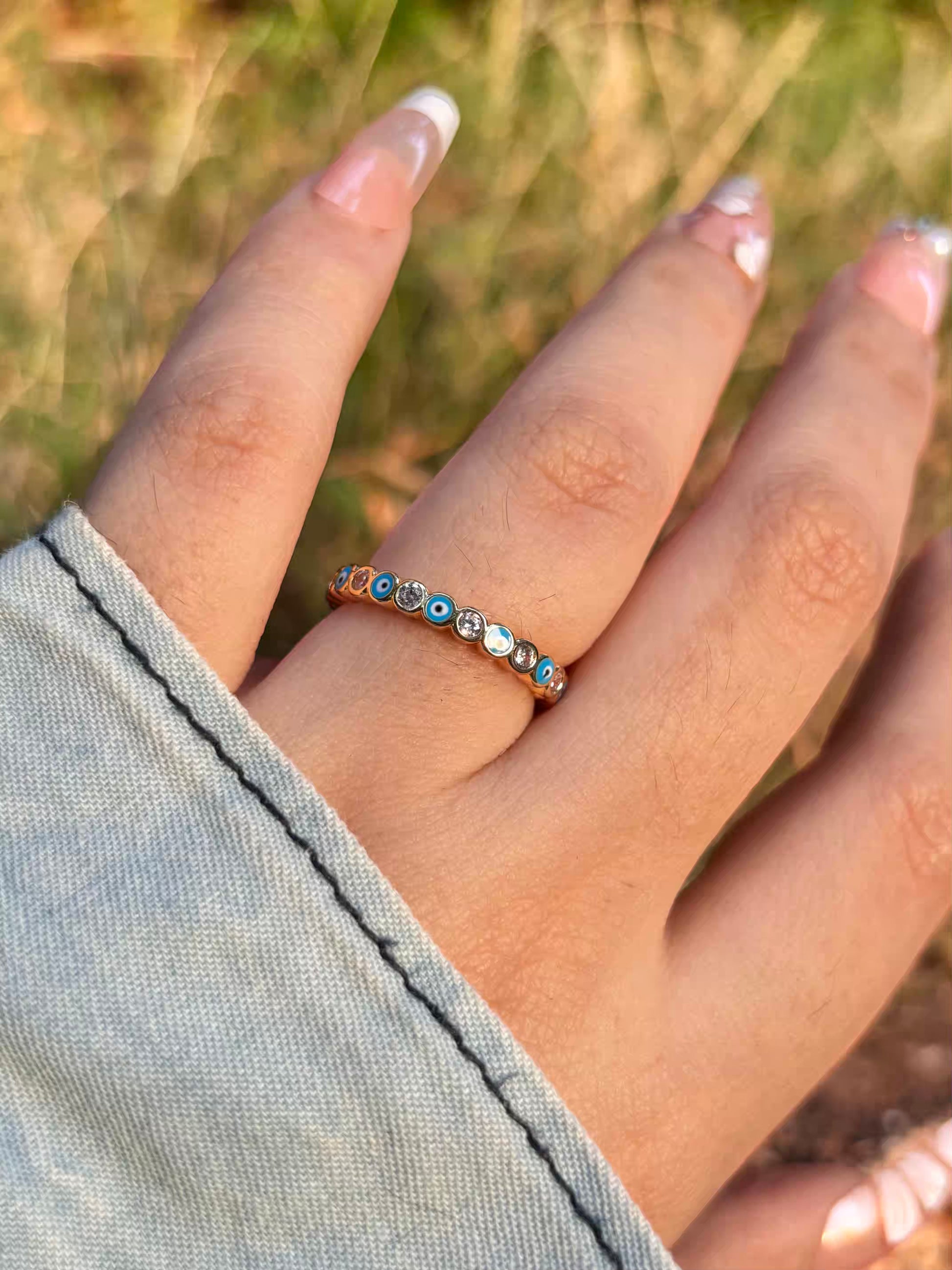 Light Blue Thin Evil Eye Band Ring - Adjustable