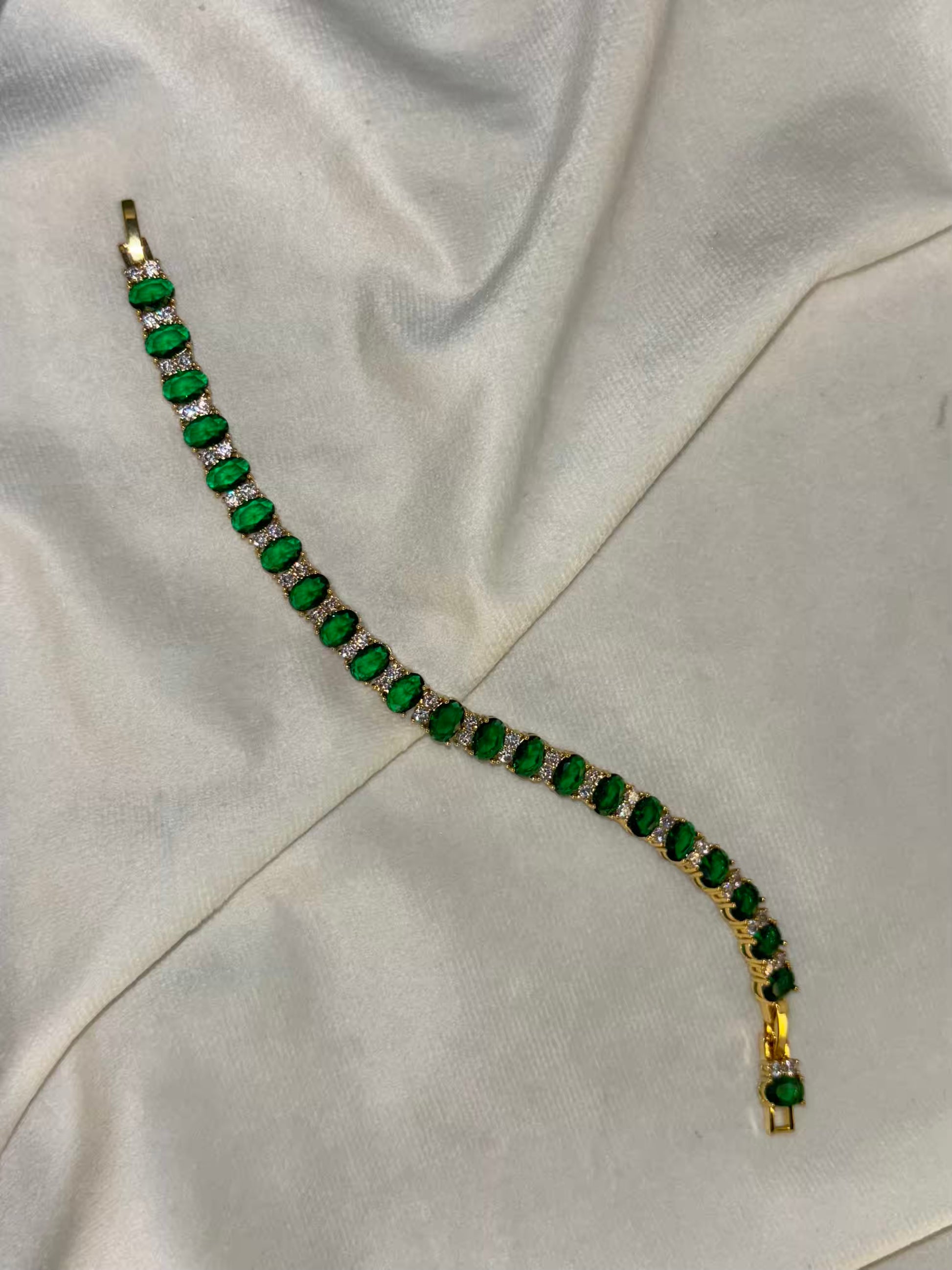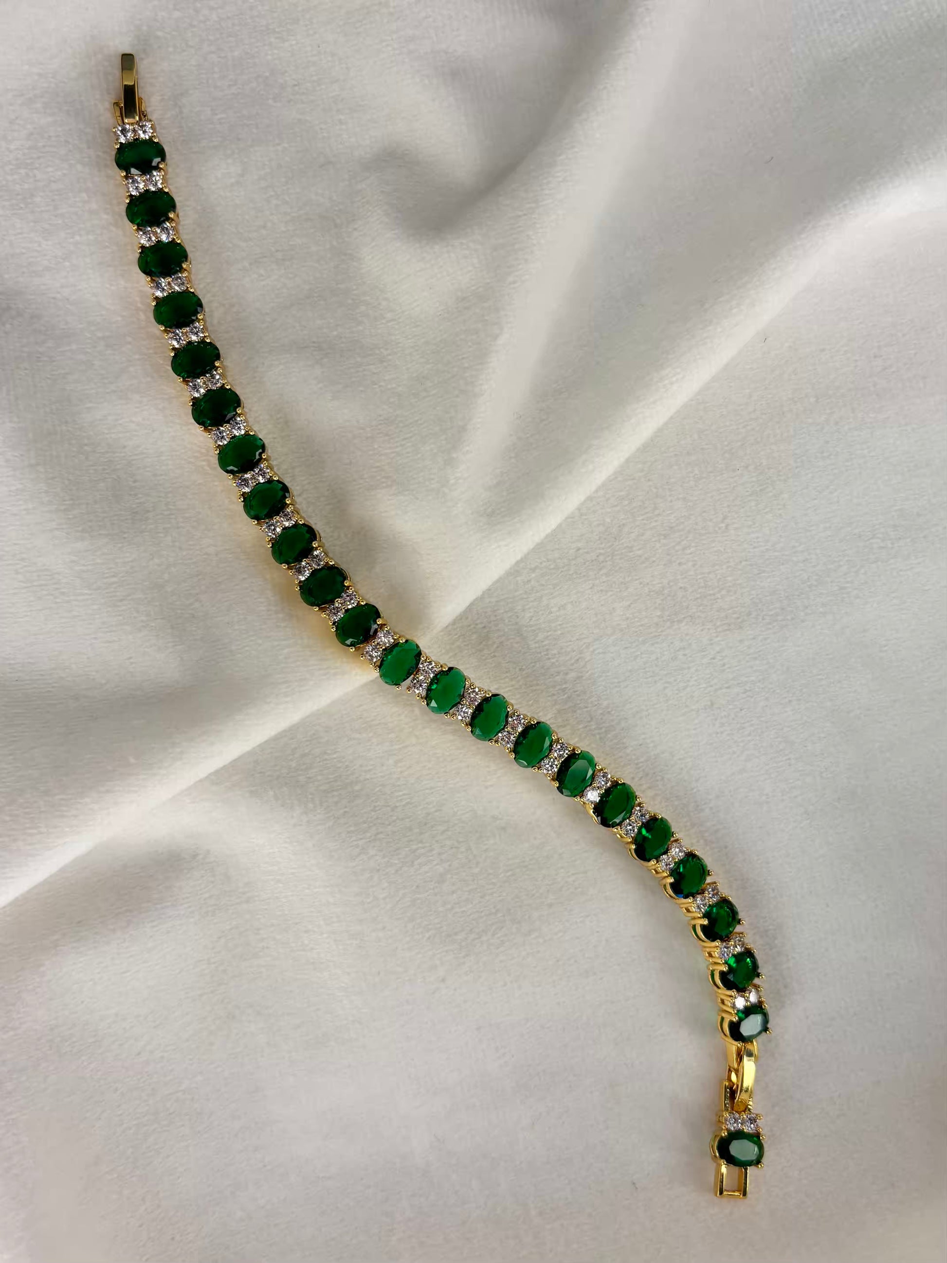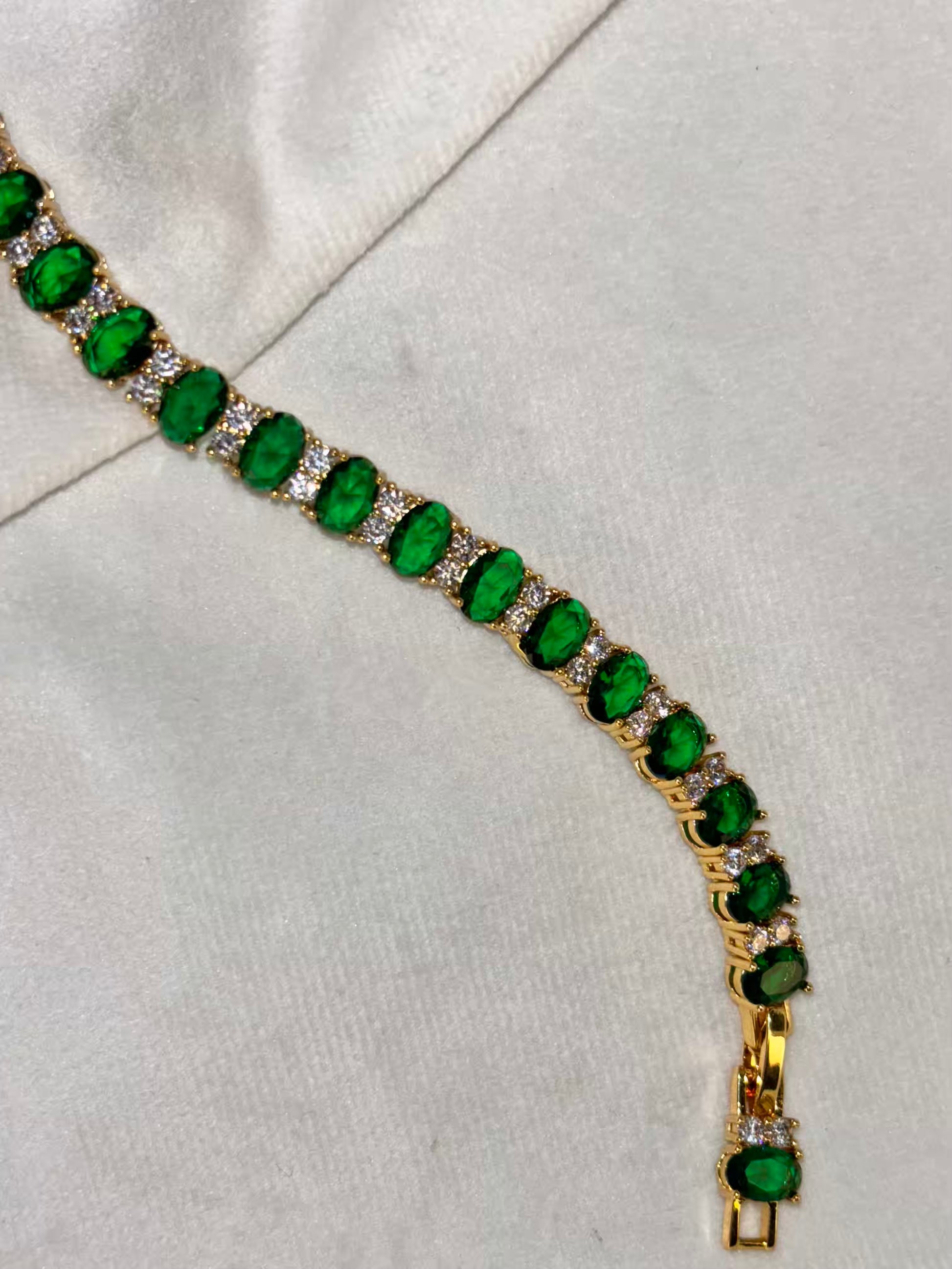 Green Emerald Tennis Bracelet with Loaded Diamonds - Gold Plated