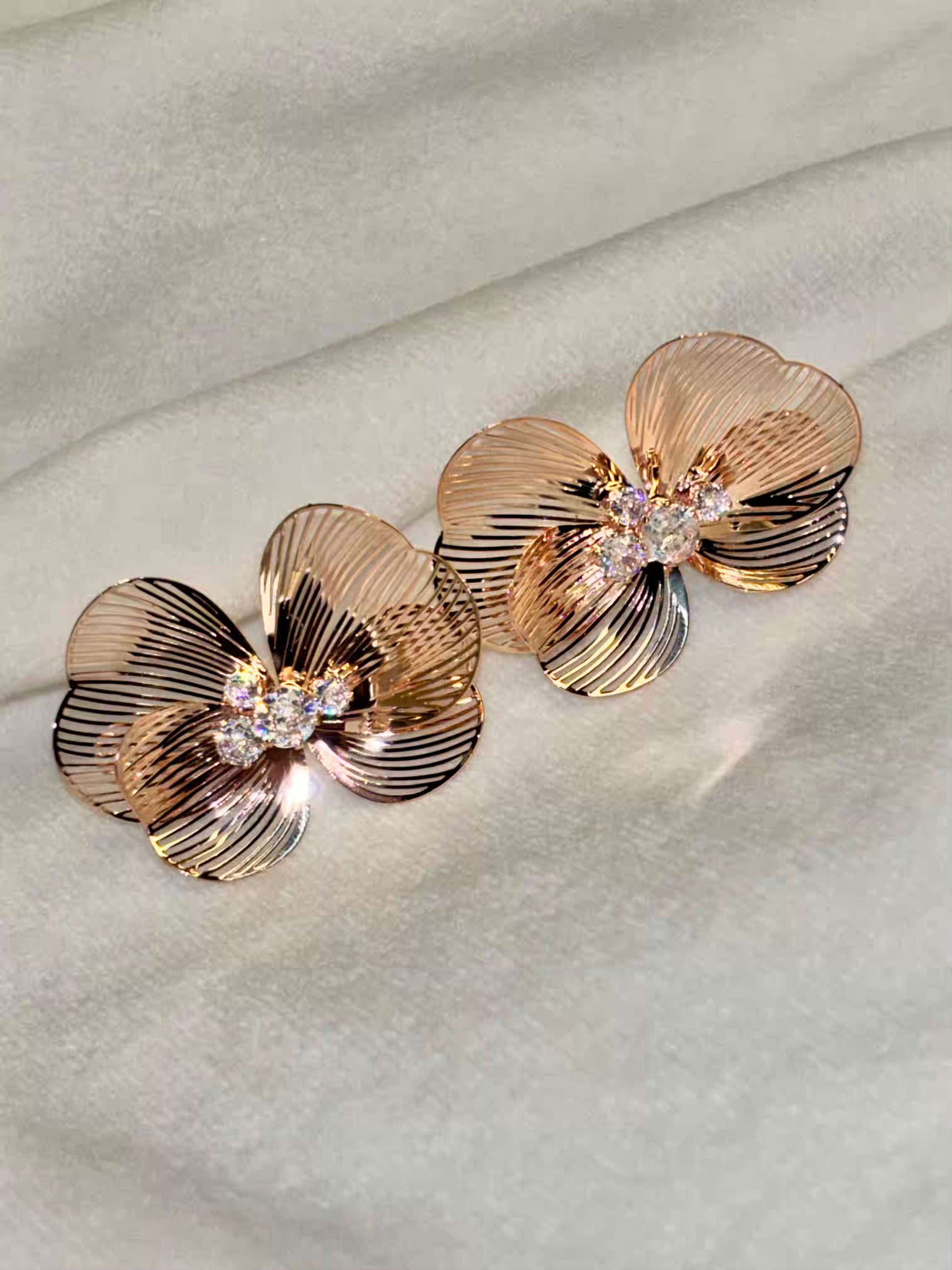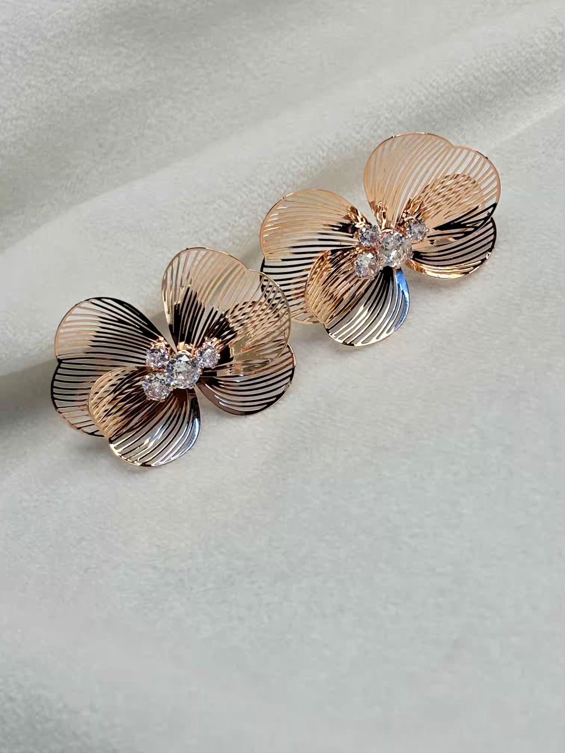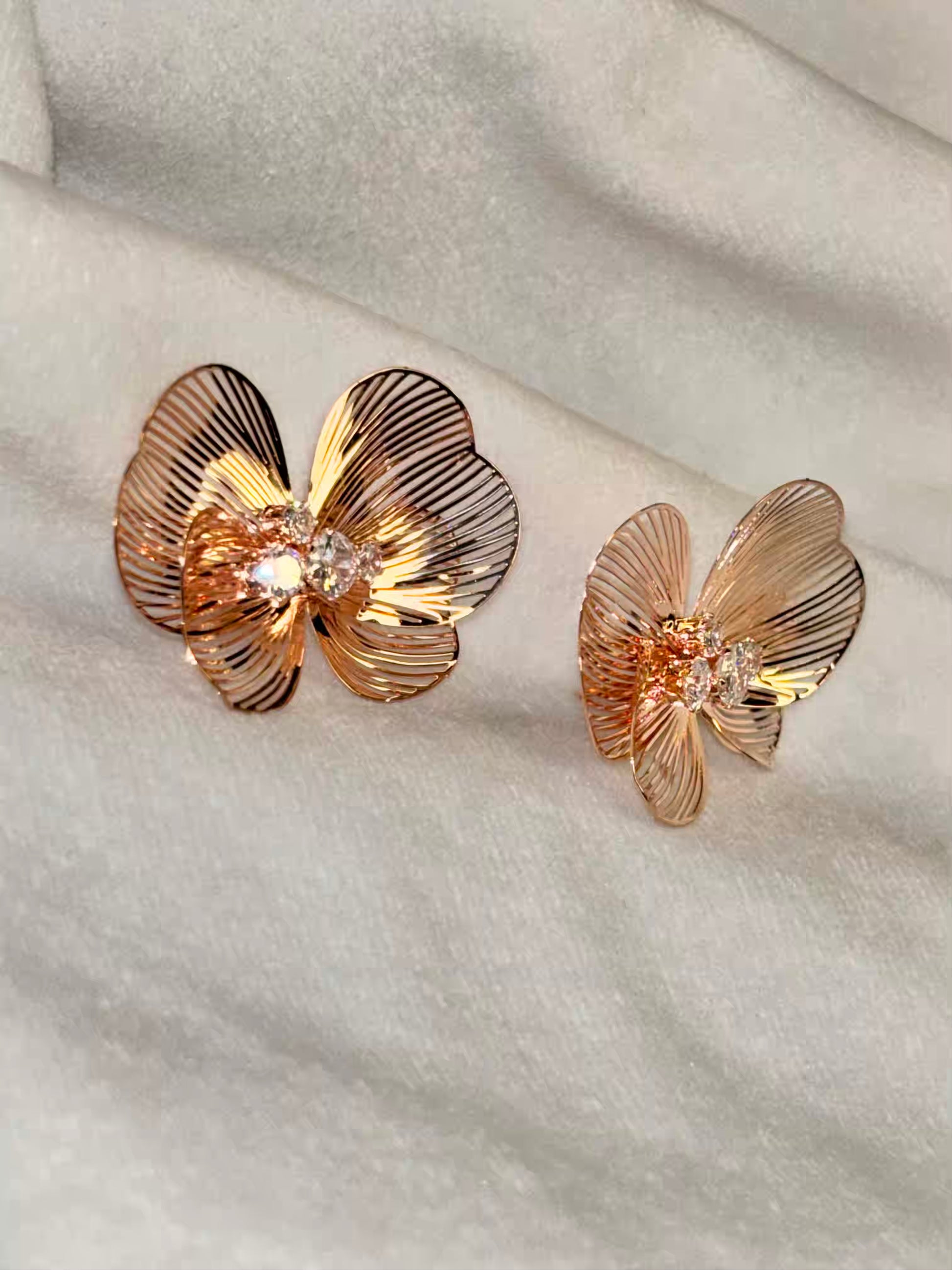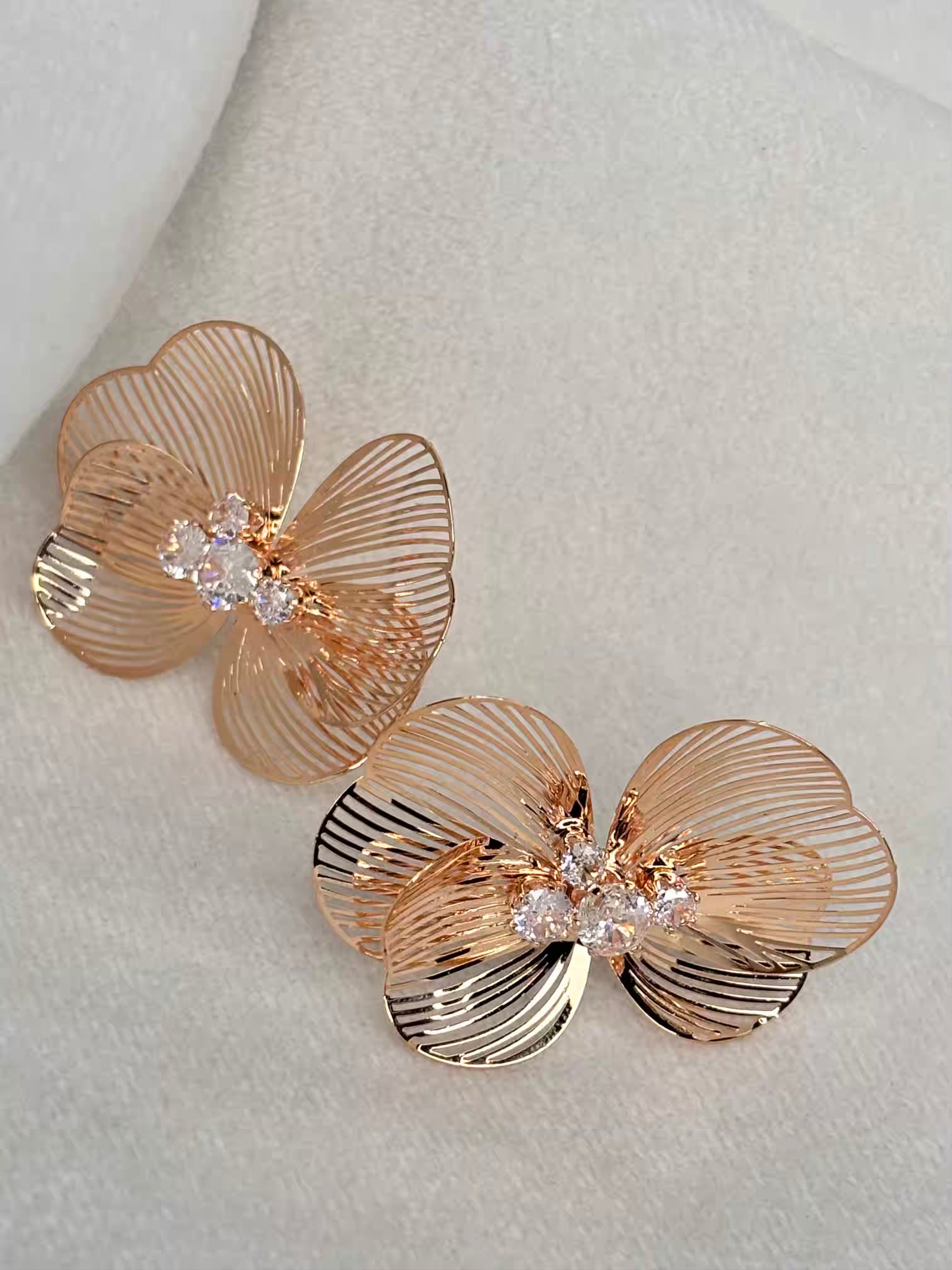 Butterfly Bee Earrings Studs - Rose Plated
