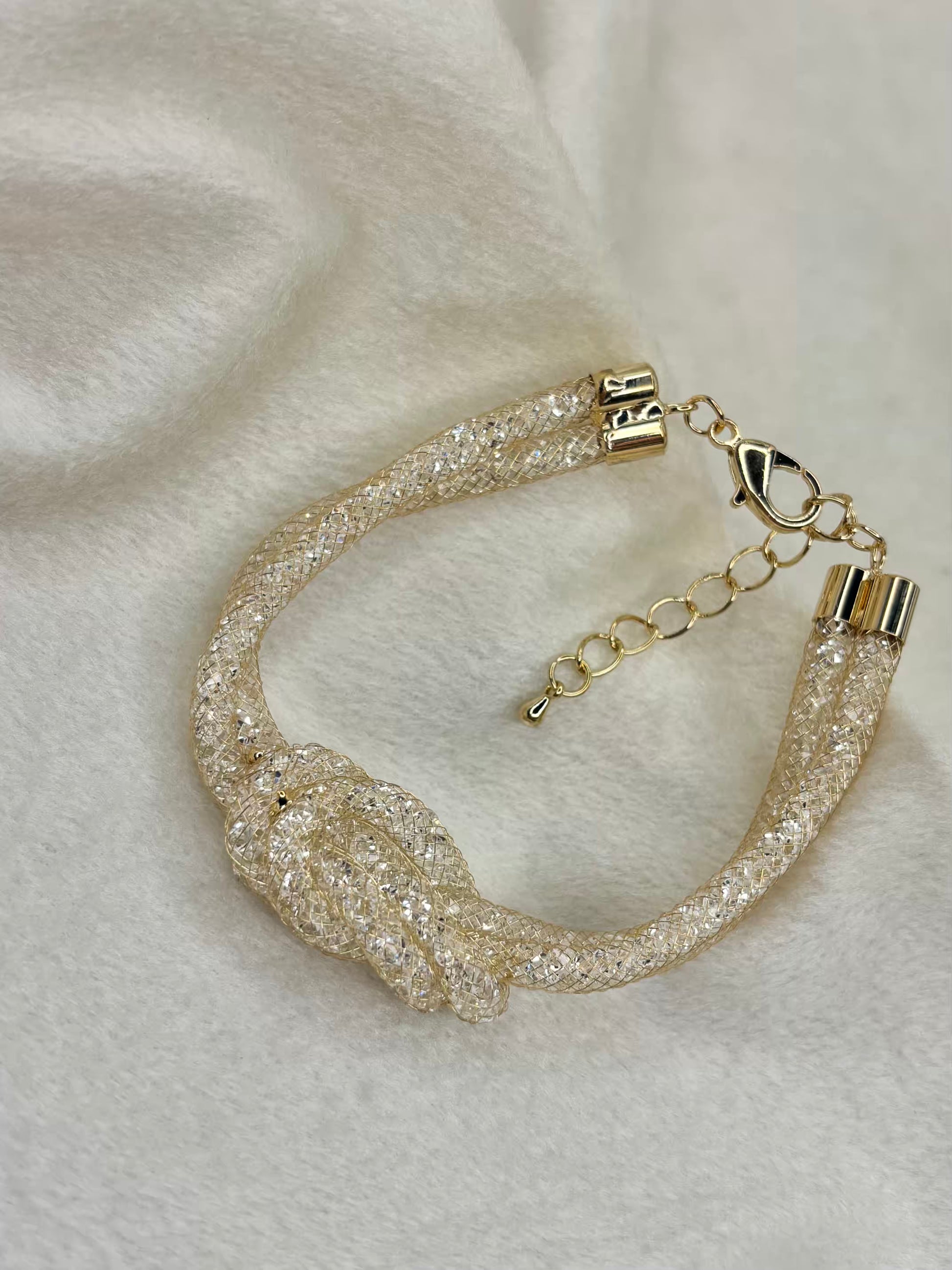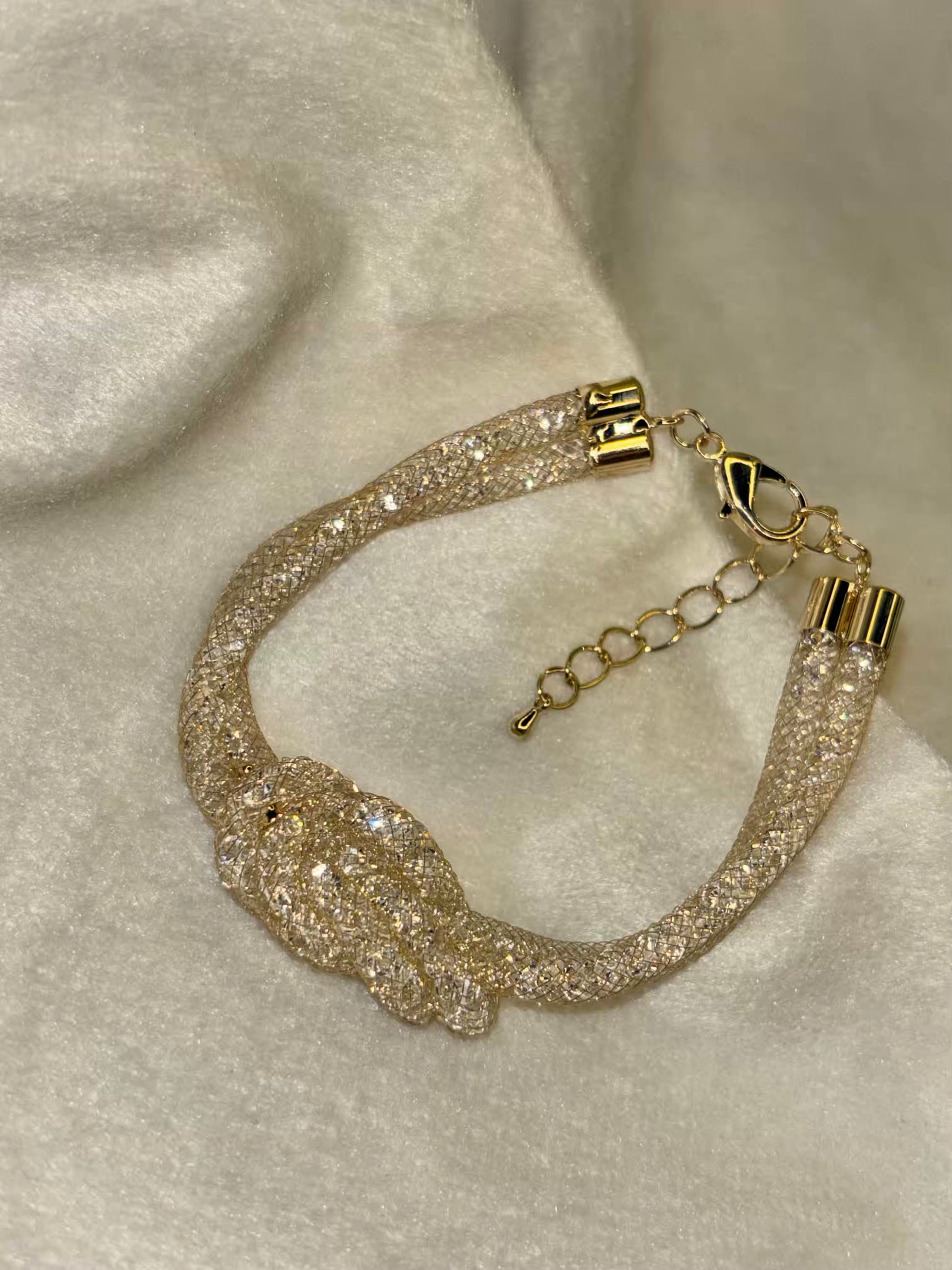 Loaded Diamonds Wired Net Bracelet Knots - Gold