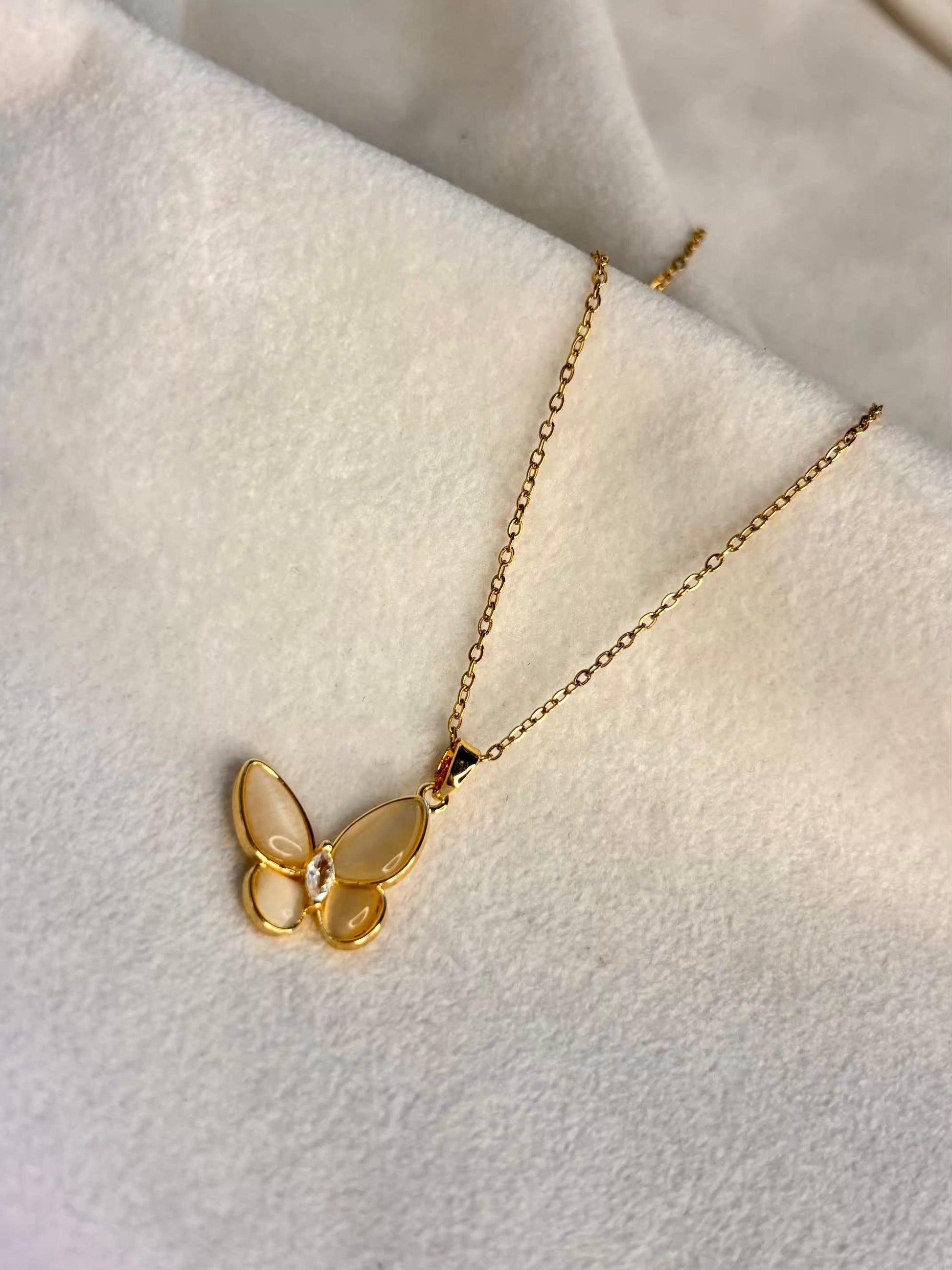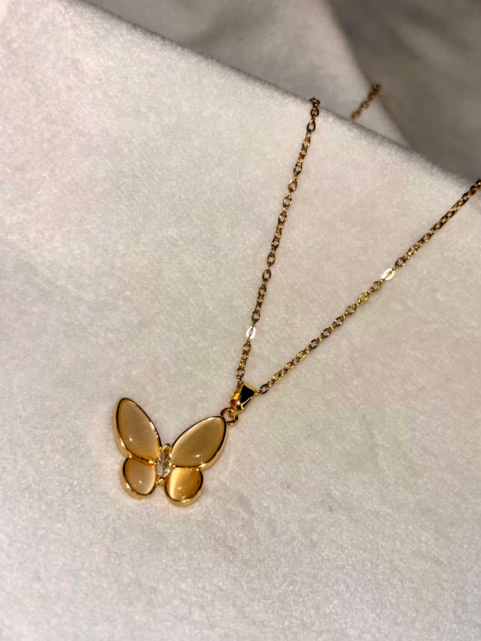 Cateye Stone Butterfly 18K Gold Plated Premium Necklace