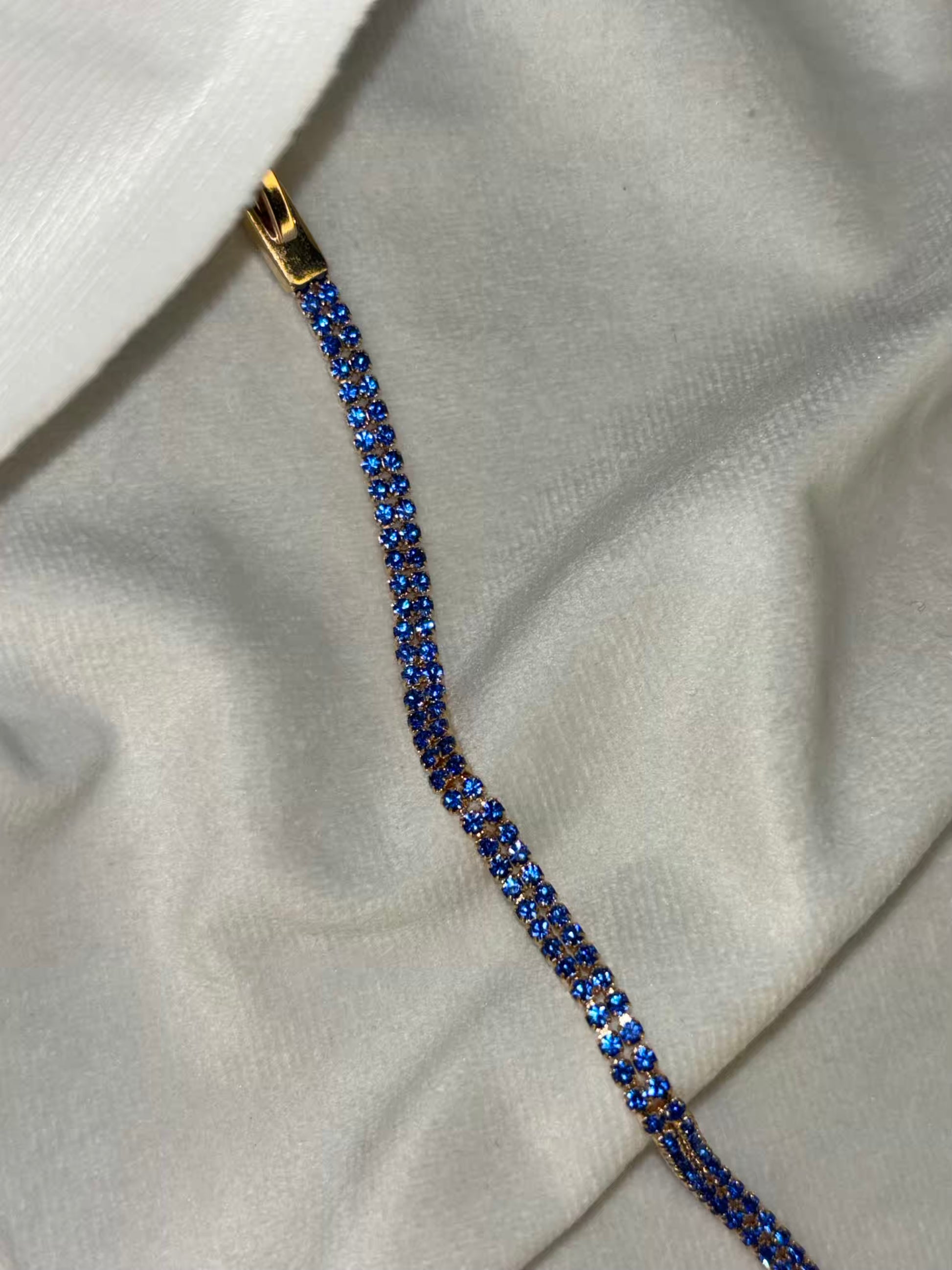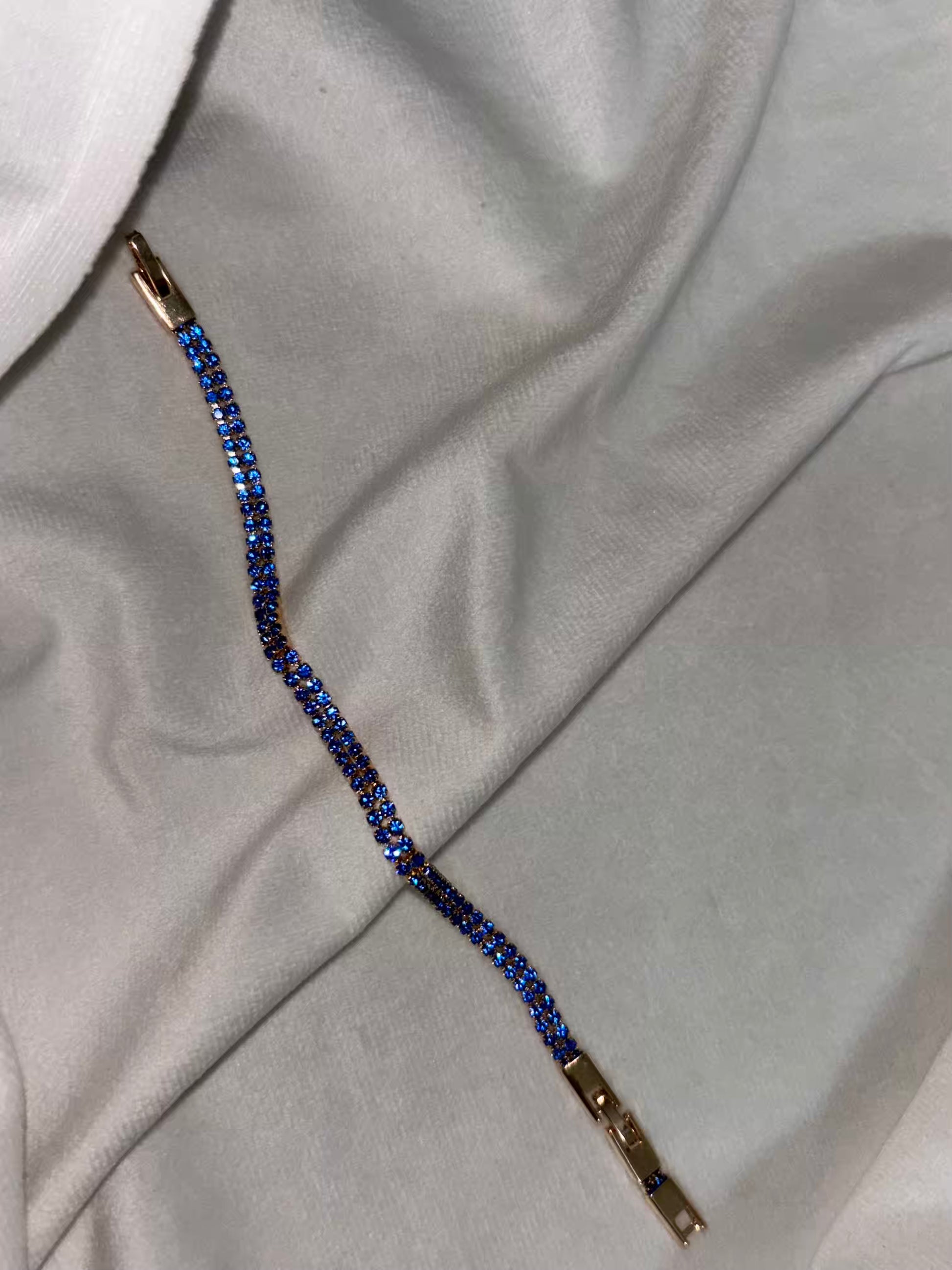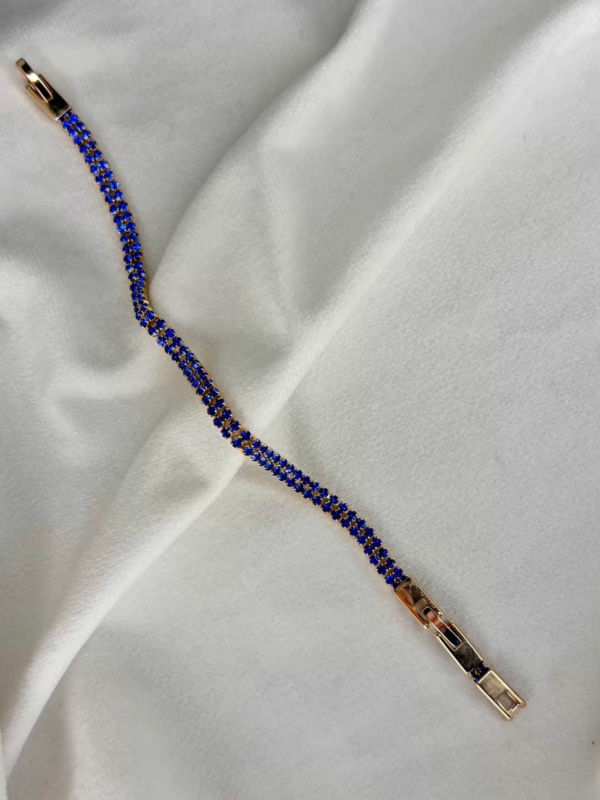 Bright Blue Tennis Bracelet with Loaded Diamonds - Gold Plated
