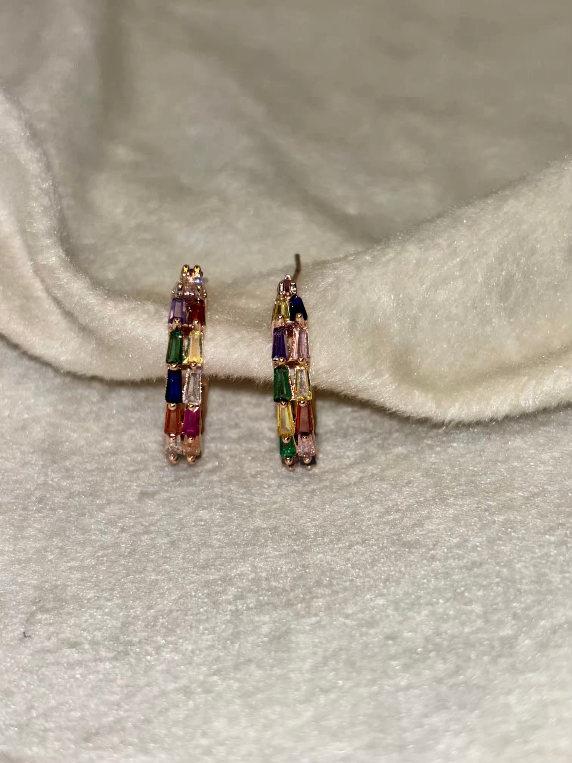 Multi Colourful Rainbow Huggies Earrings Studs - Rose Gold Plated