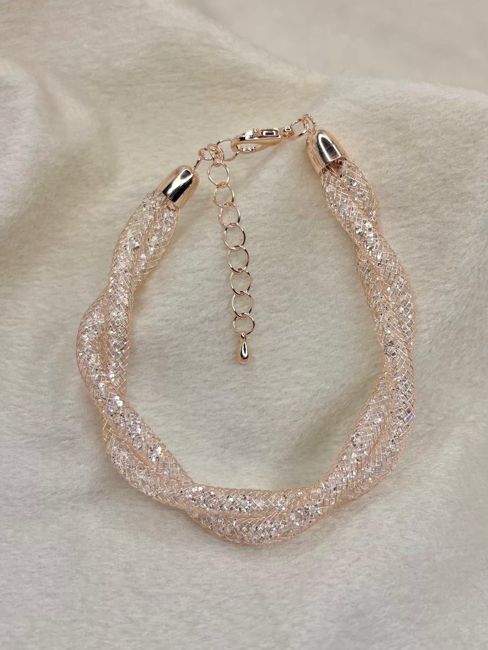 Loaded Diamonds Wired Twisted Net Bracelet Twisted - Rose Gold Plated