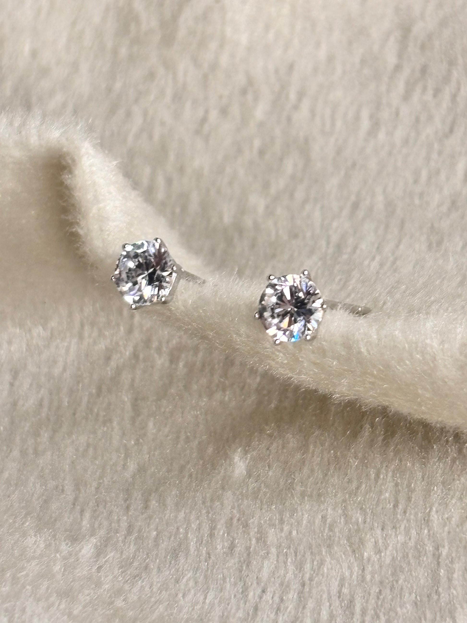 Hexagon Solitaire Earrings 925 Real Silver Plated Premium Earrings