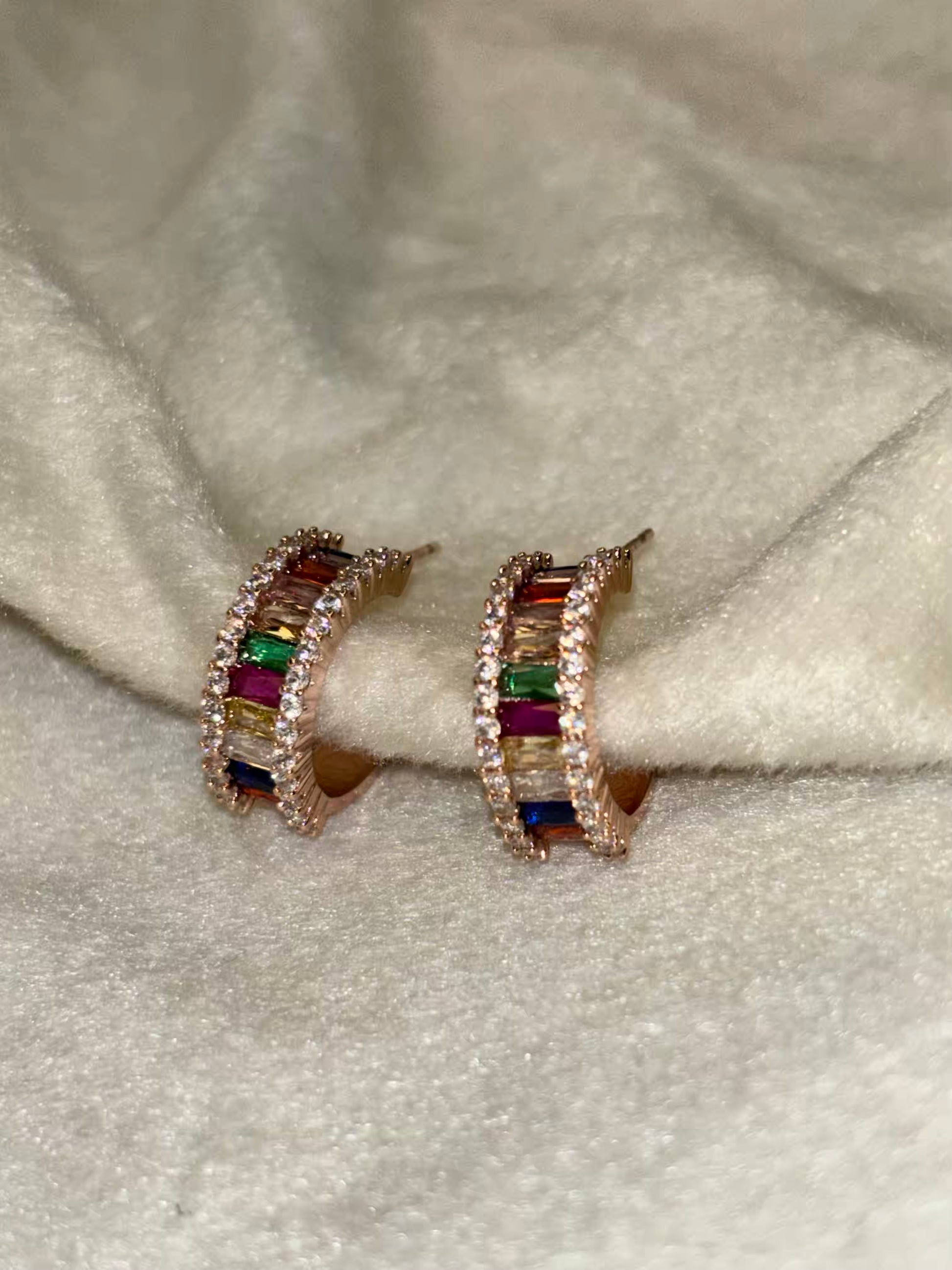 Colourful Rainbow Huggies Earrings Studs - Rose Gold Plated