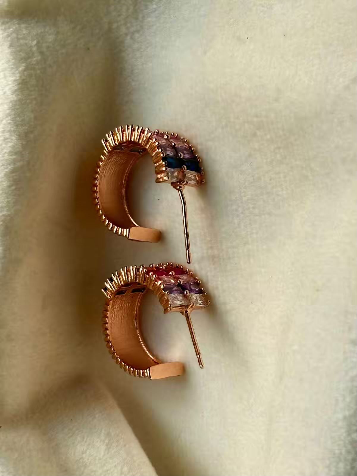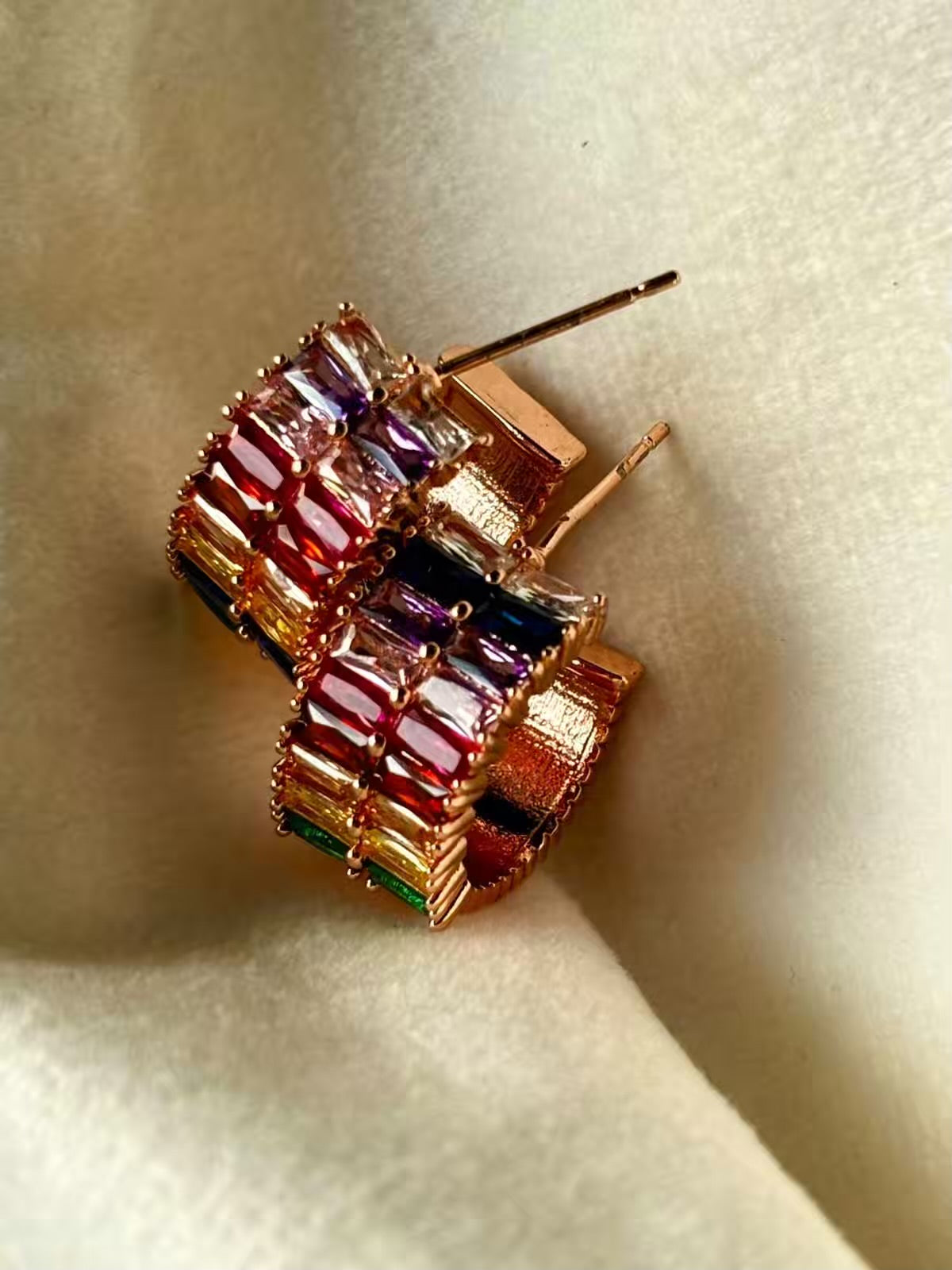 Colourful Rainbow Hoops StudsEarrings Studs - Gold Plated