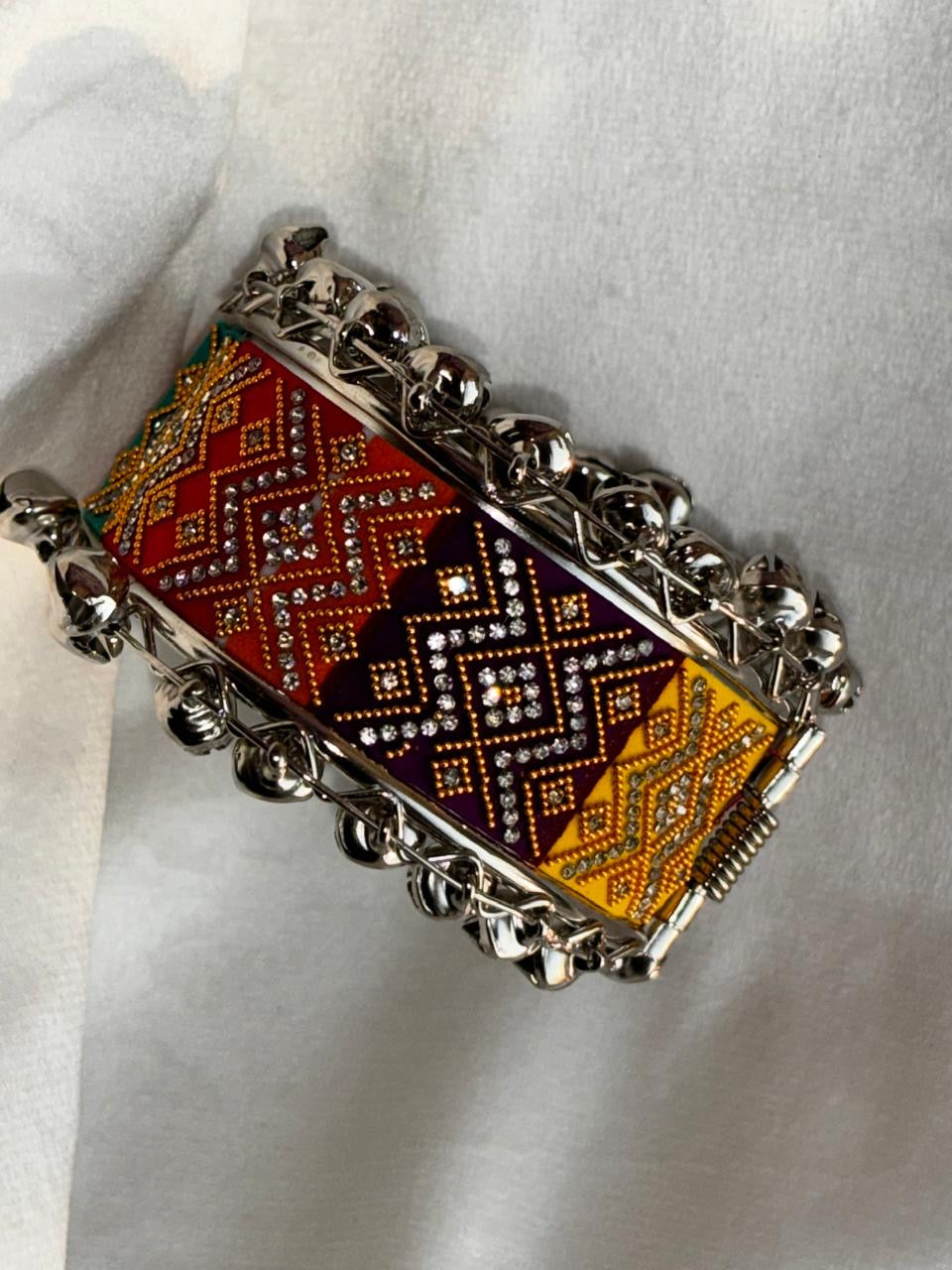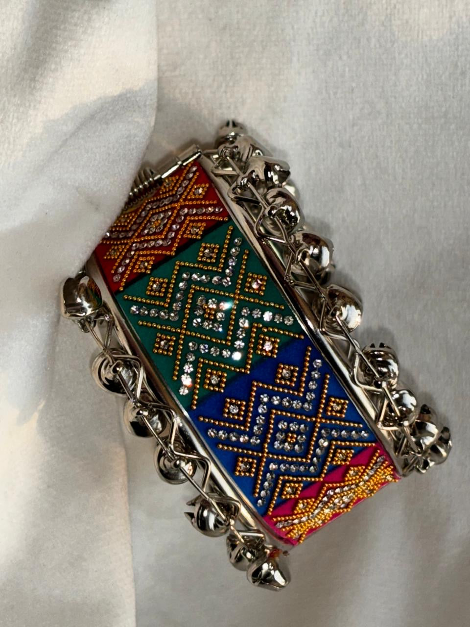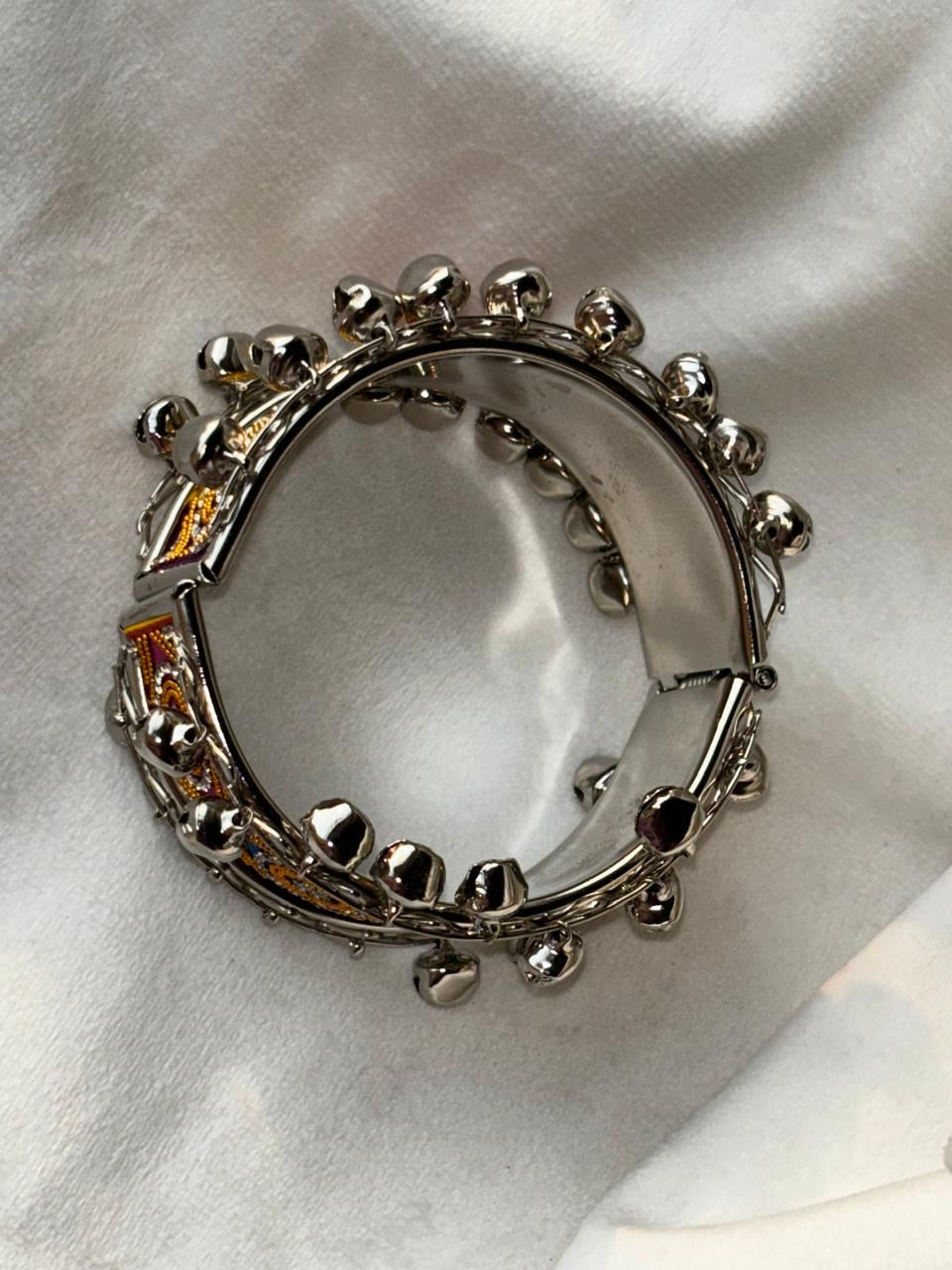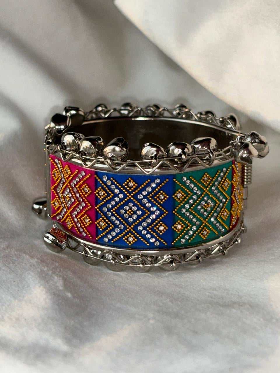 Zigzag Ghungroo Colourful Bracelet ( Silver )