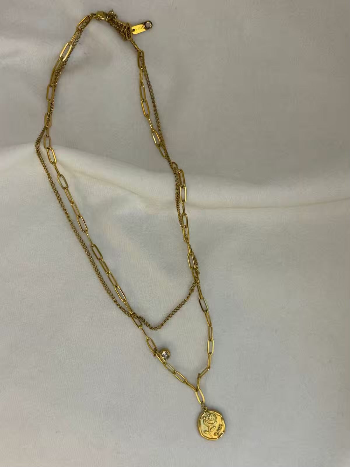 Rose Engraved Gold Plated Layered Necklace
