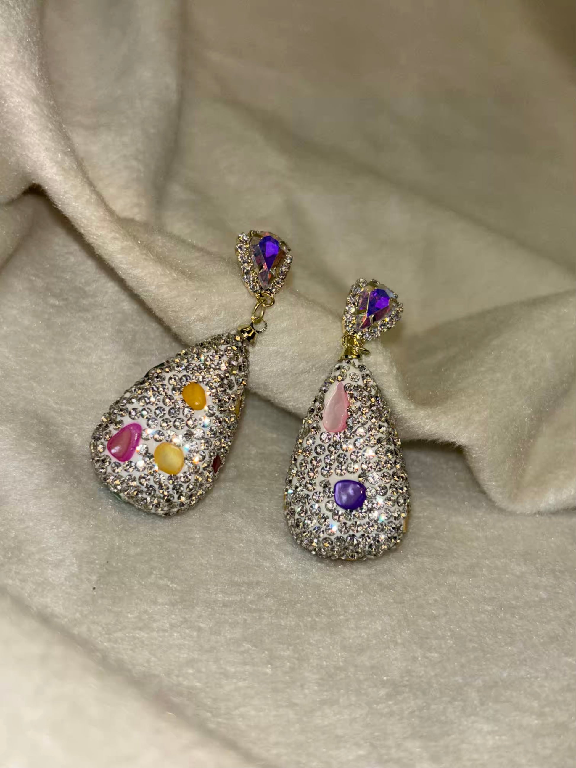 Unique Diamonds Loaded Long Earrings Party Studs - Silver Plated