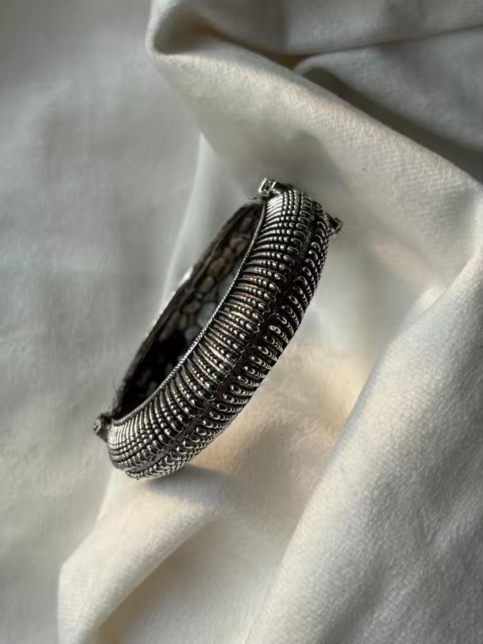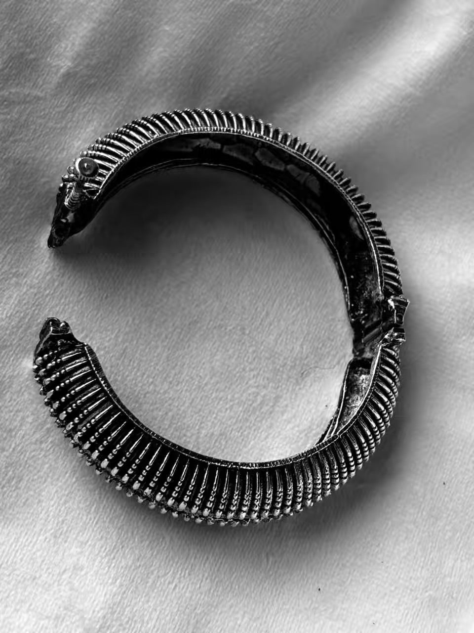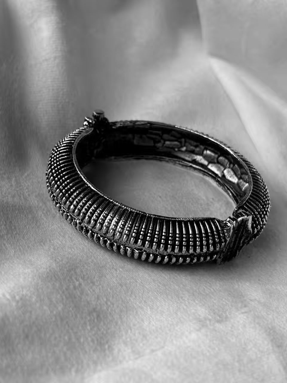 Striped Oxidised Screw Bangle ( Oxidised Silver )