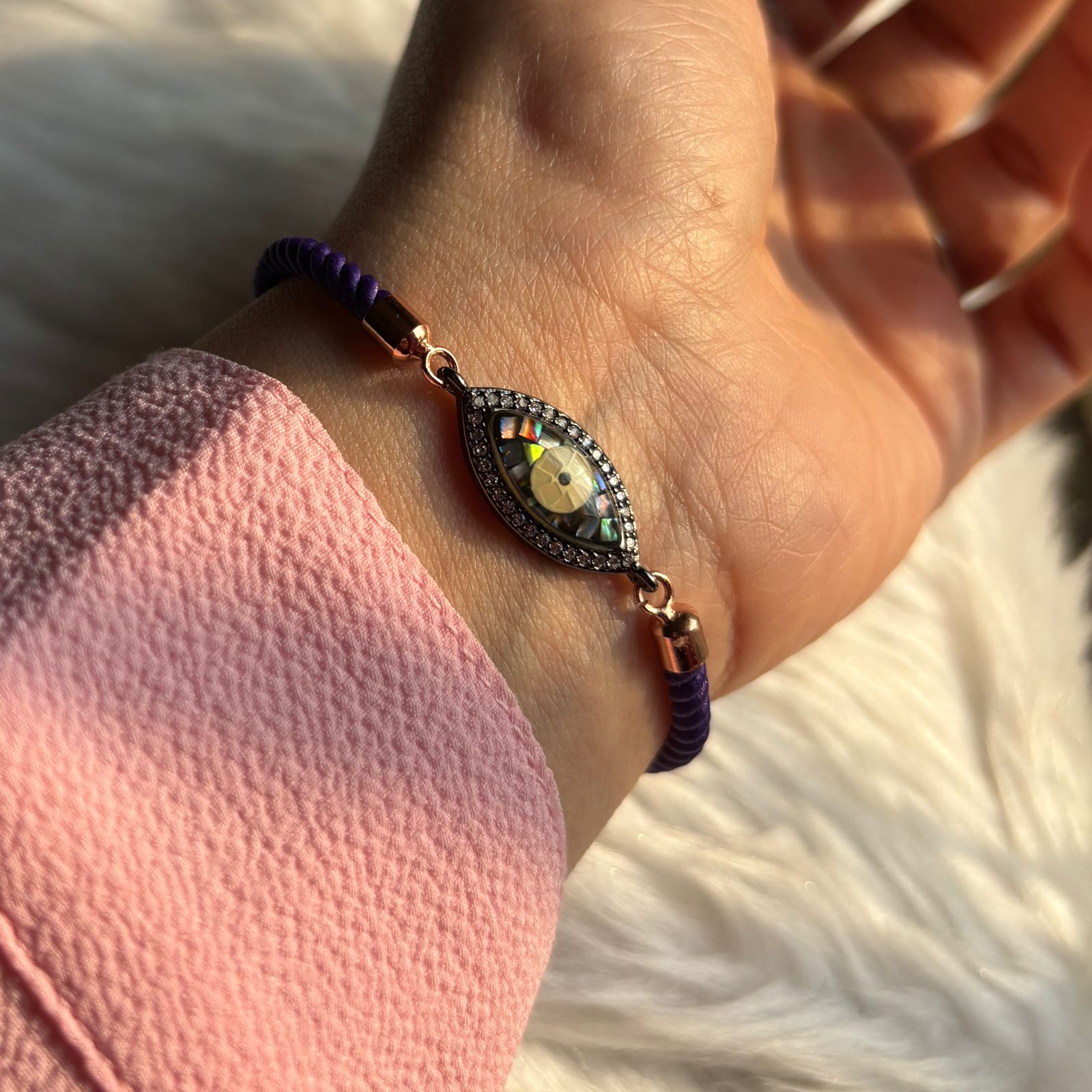 Holographic Evil Eye Rose Gold Color Bracelet Purple Band