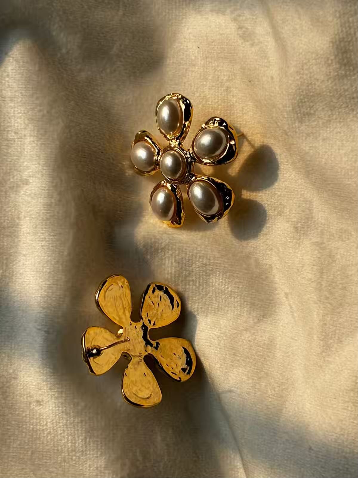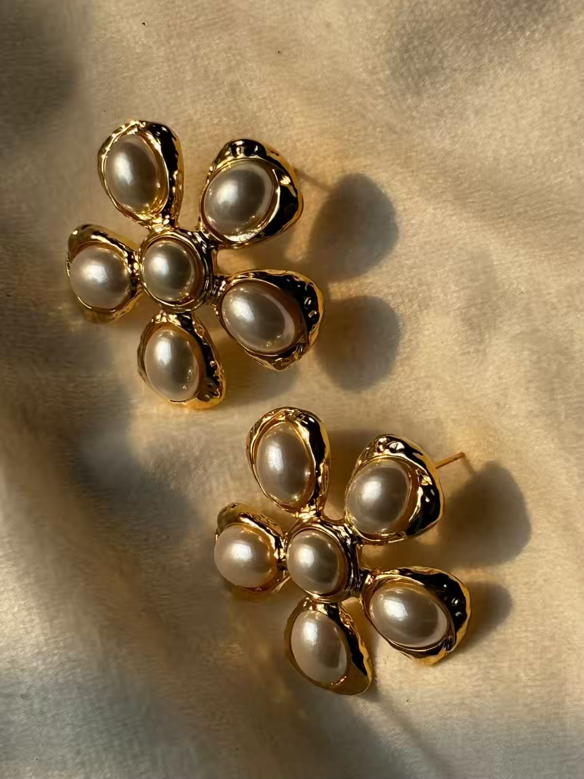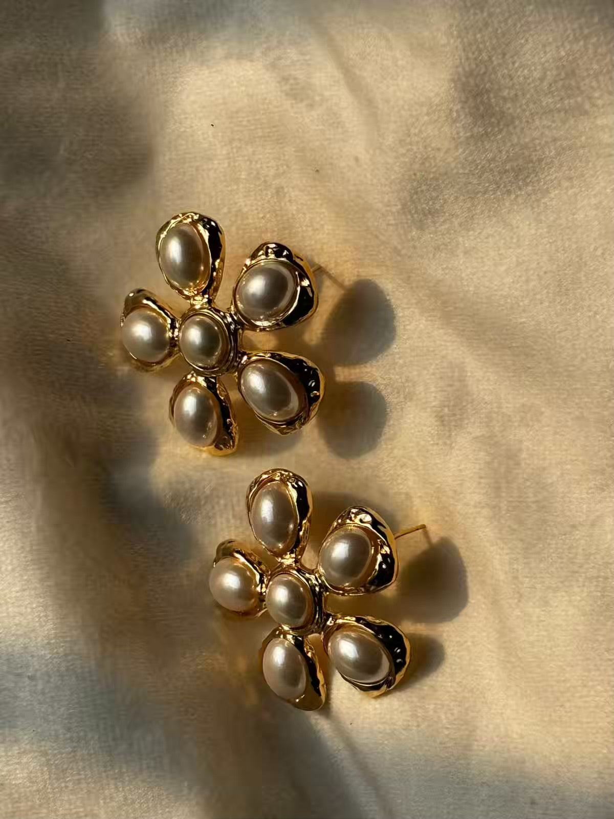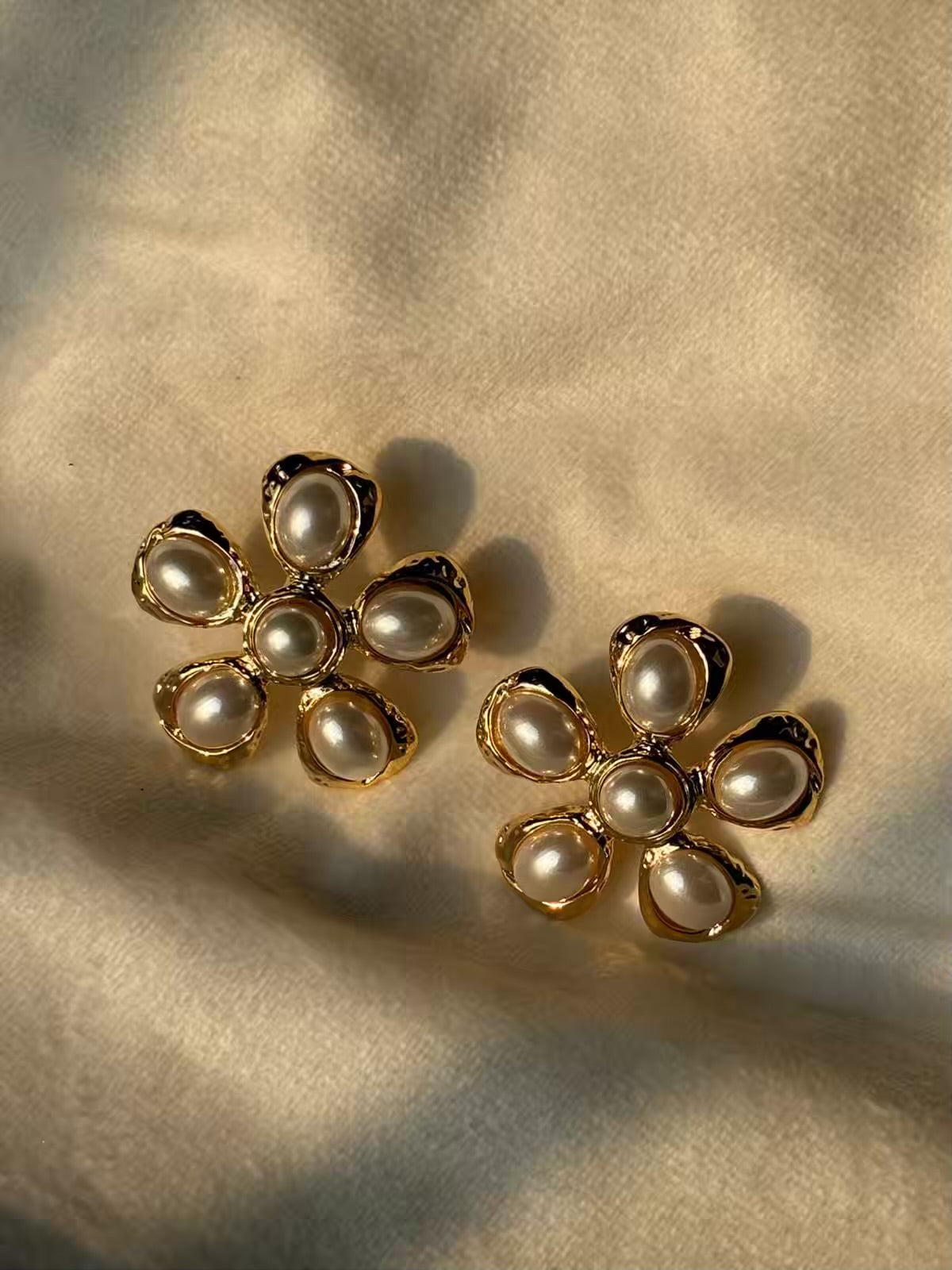 Pearly Flower Studs Earrings Studs - Gold Plated