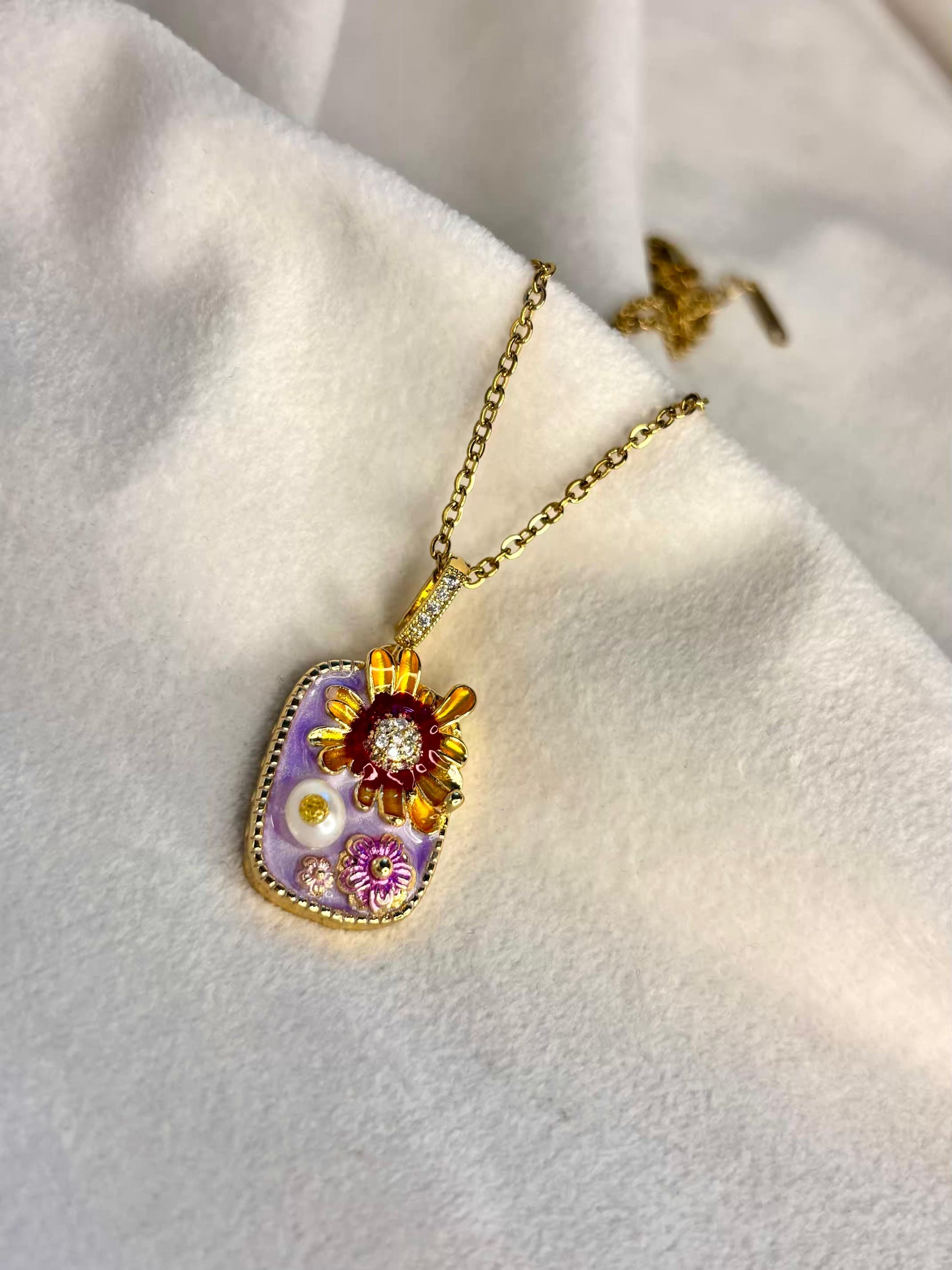 Lavender Portrait Necklace 18K Gold Plated Premium Necklace