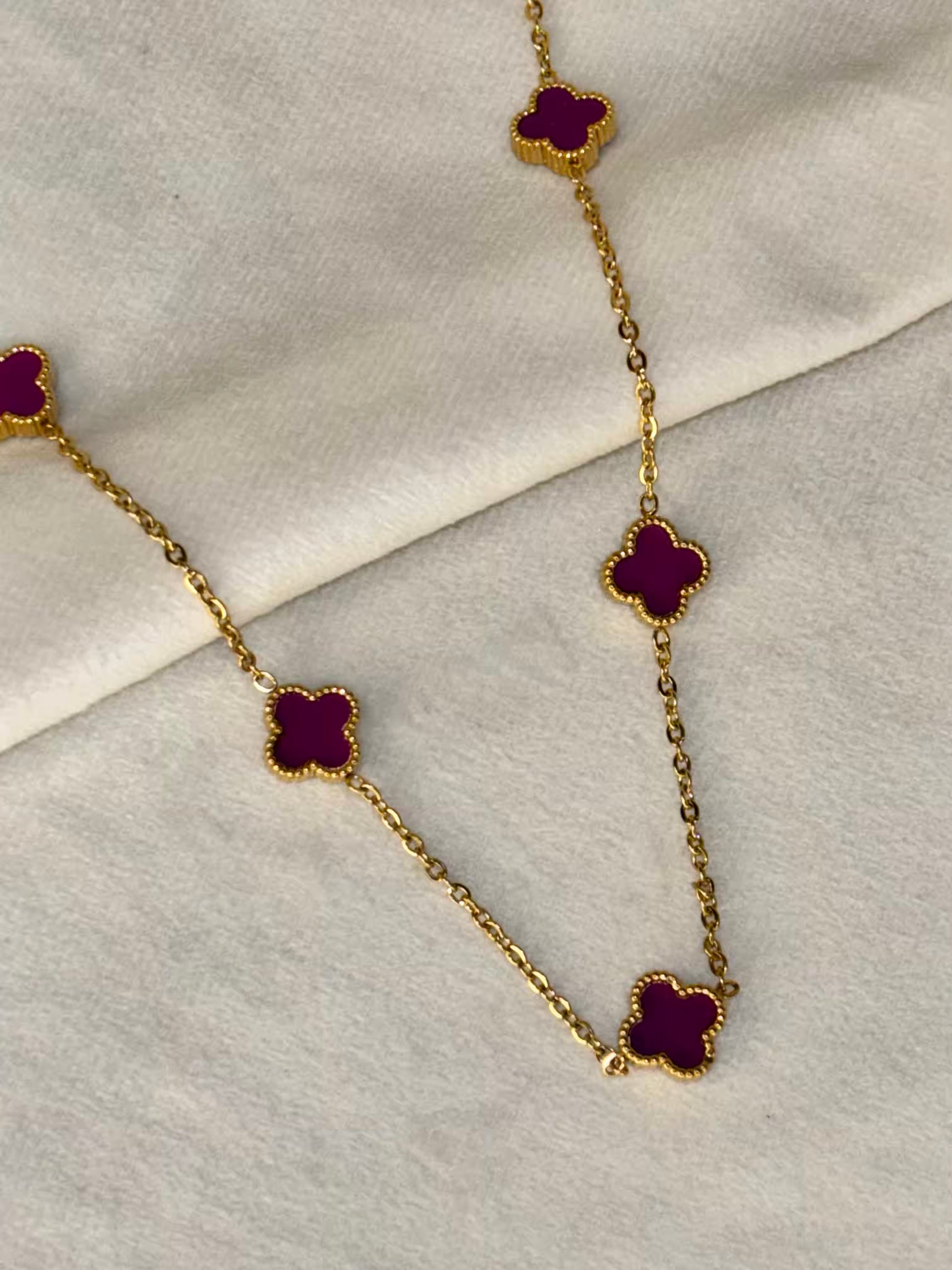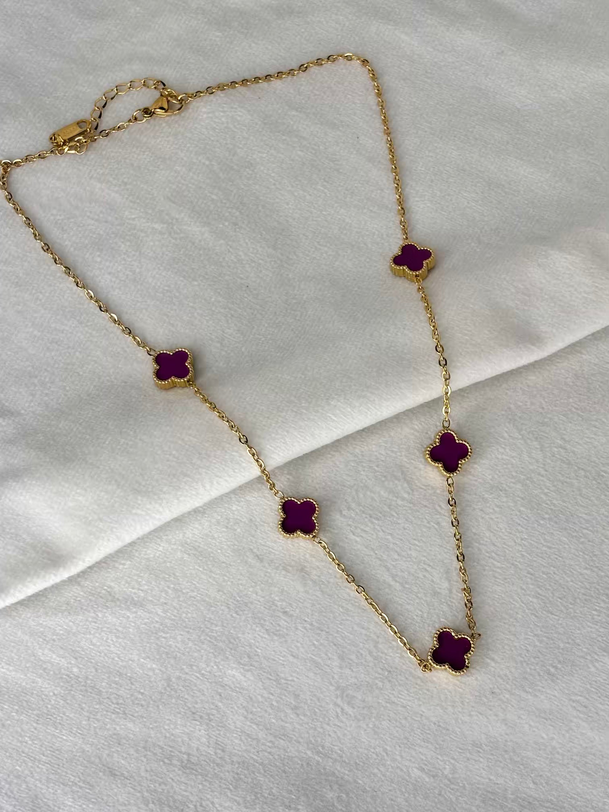 Purple 5 Clover Necklace - Gold Plated
