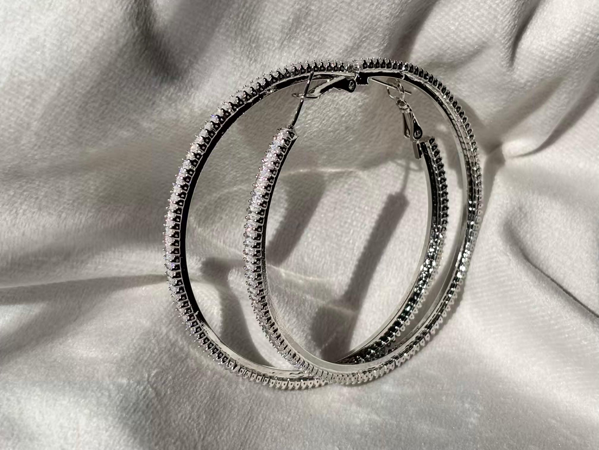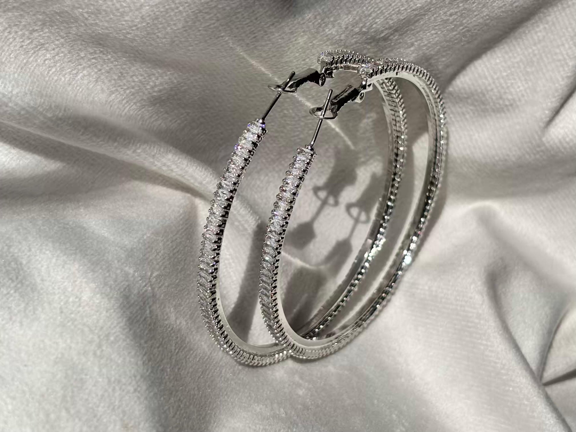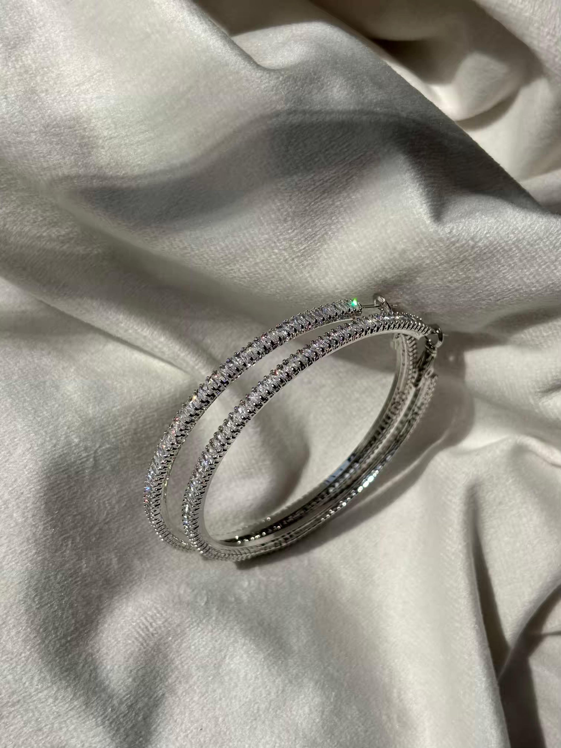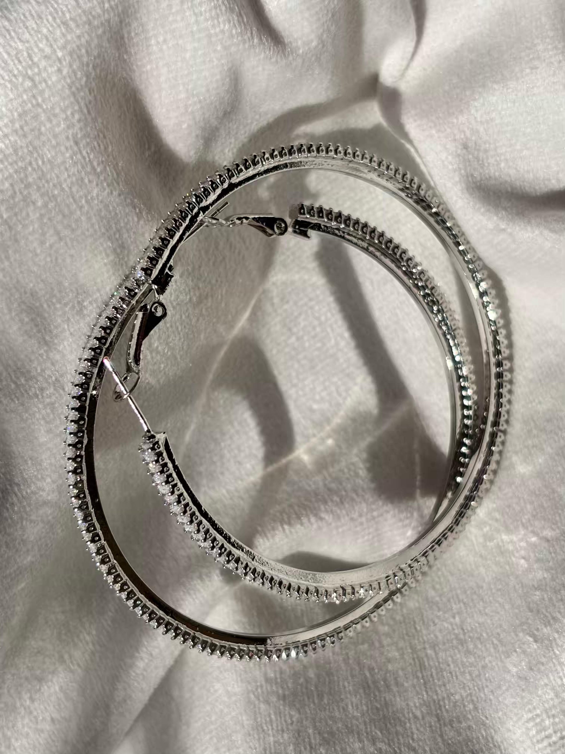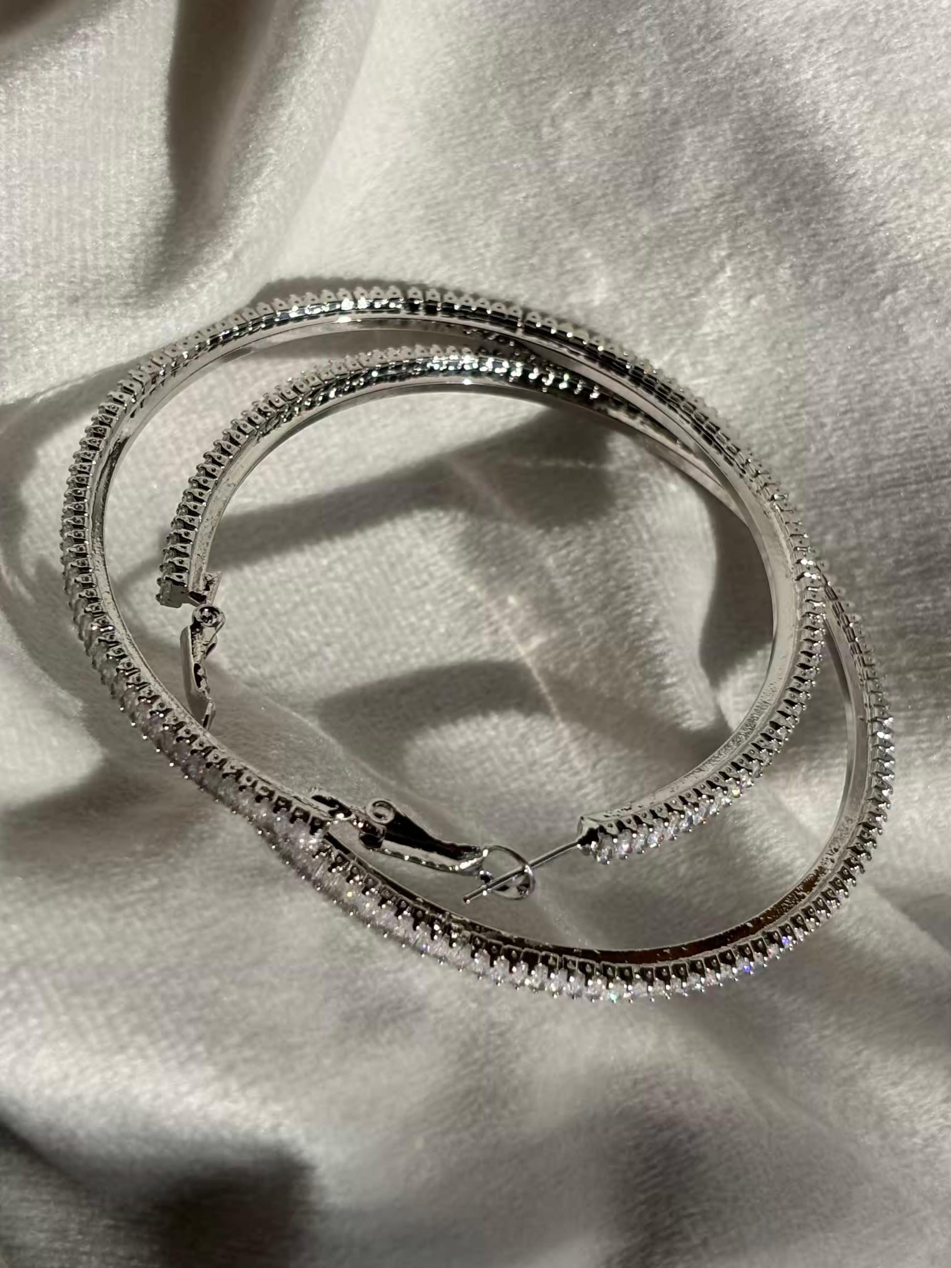 Diamond Round Hoops Earrings Silver Plated Premium Earrings