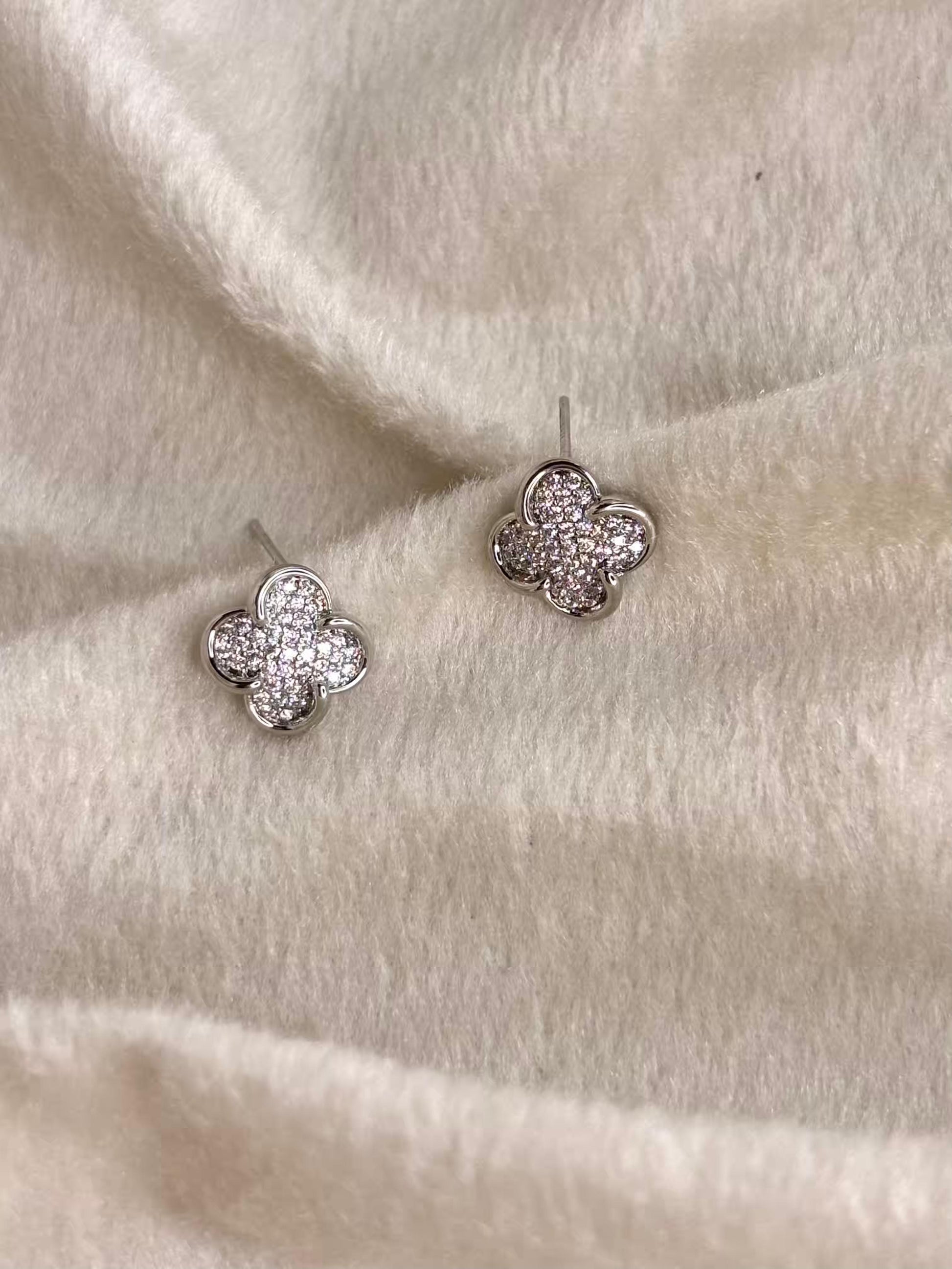 Silver Studded Clover Earring Silver Plated Earrings Premium Earrings