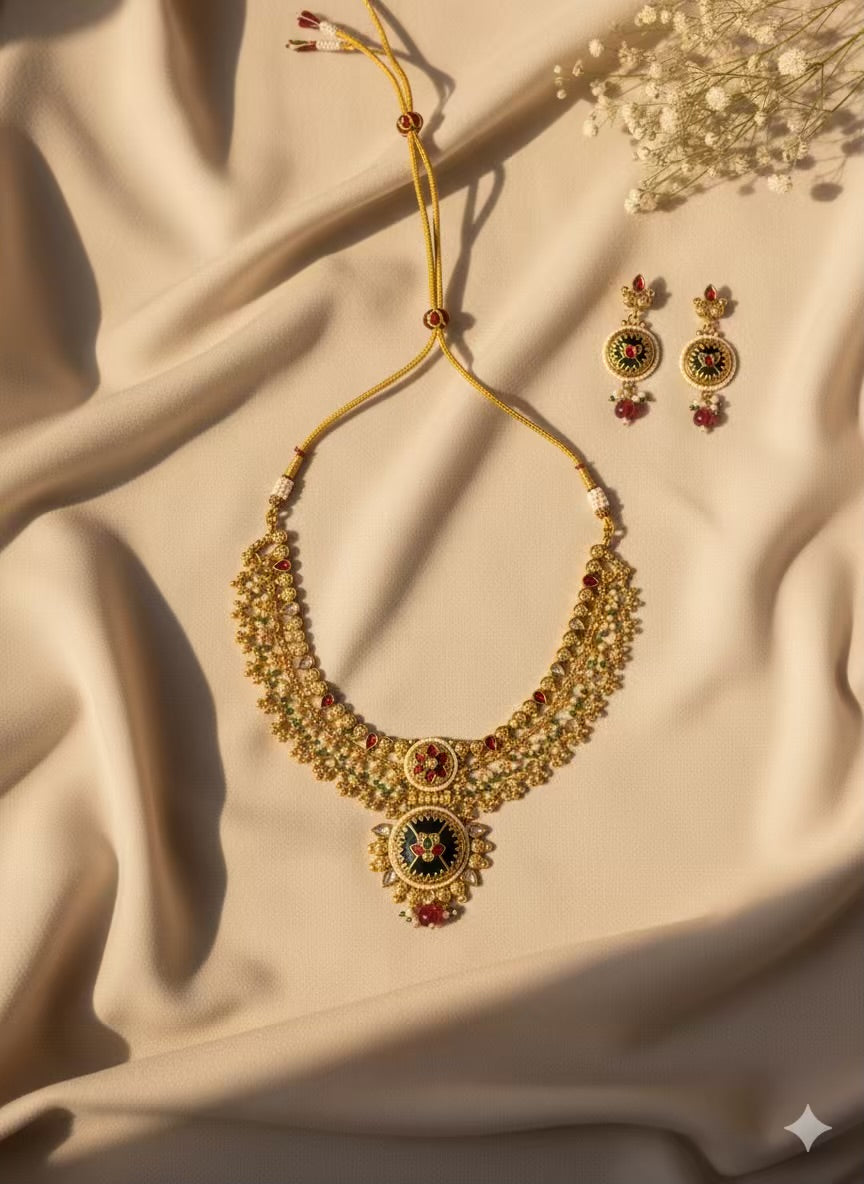 Emerald Layered Heritage Loaded Necklace with Earrings