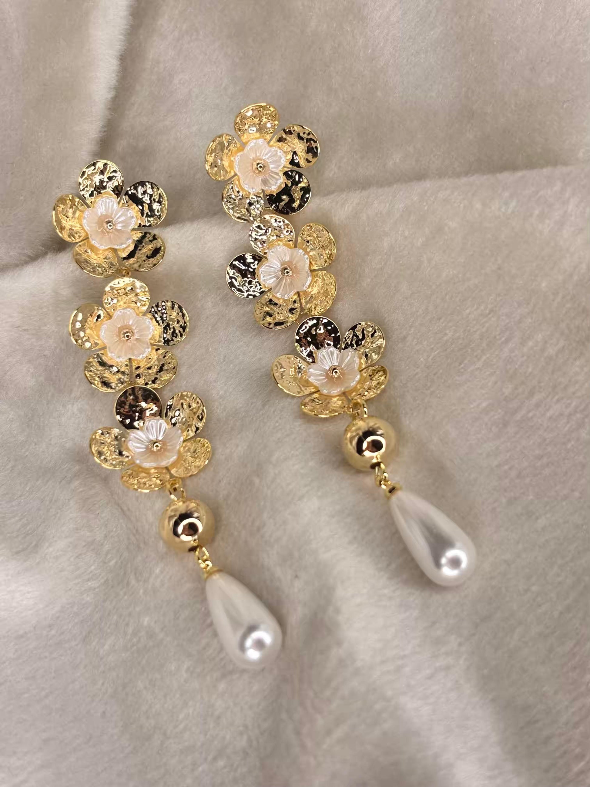 Pearl Gold Dangles Earrings 18K Gold Plated Premium Earrings
