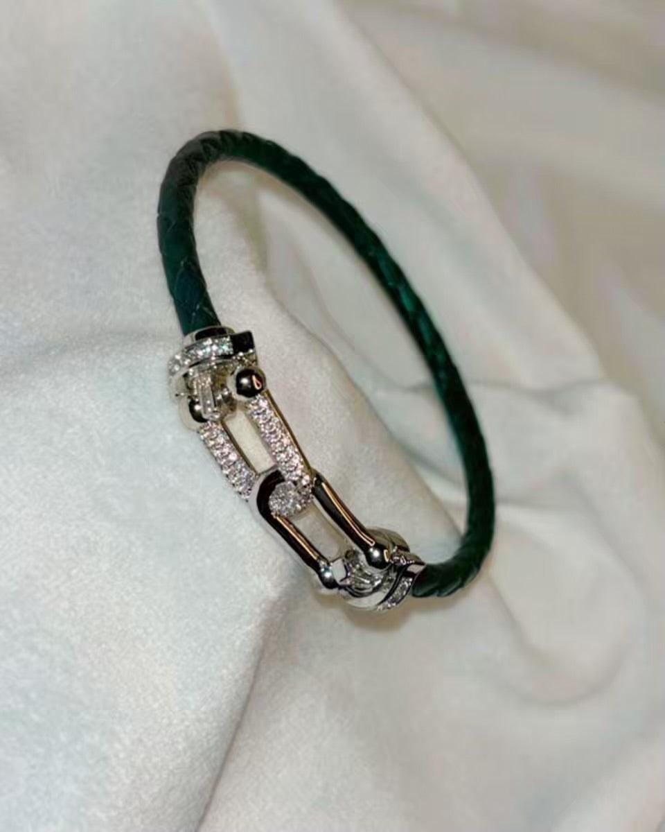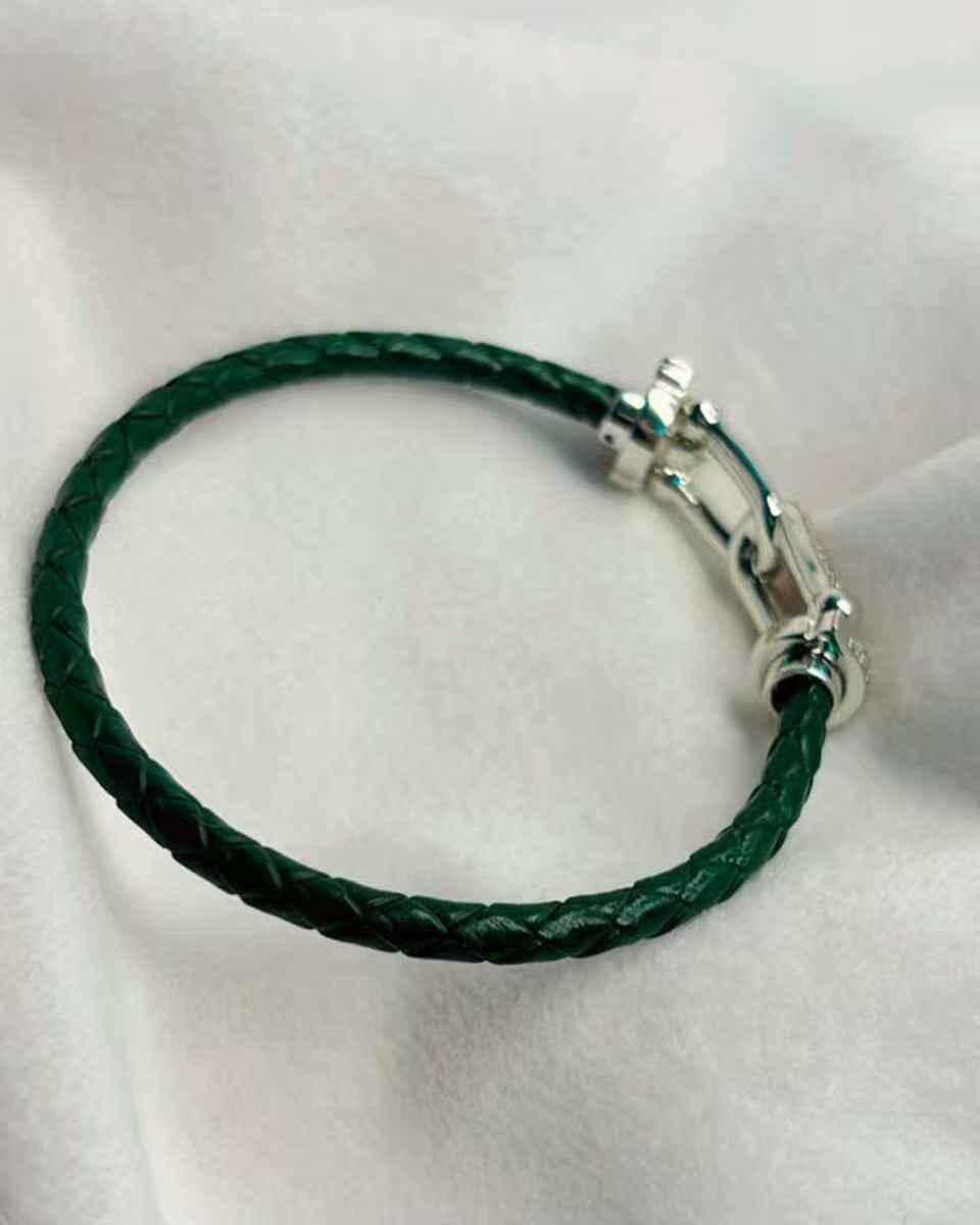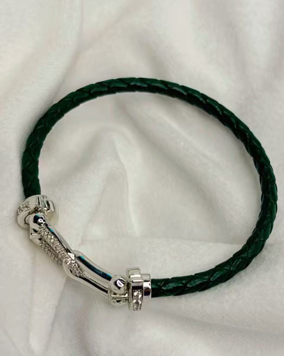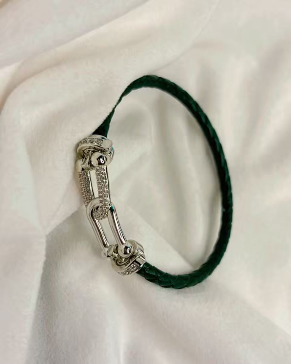Dark Green Belt Vegan Leather Bracelet