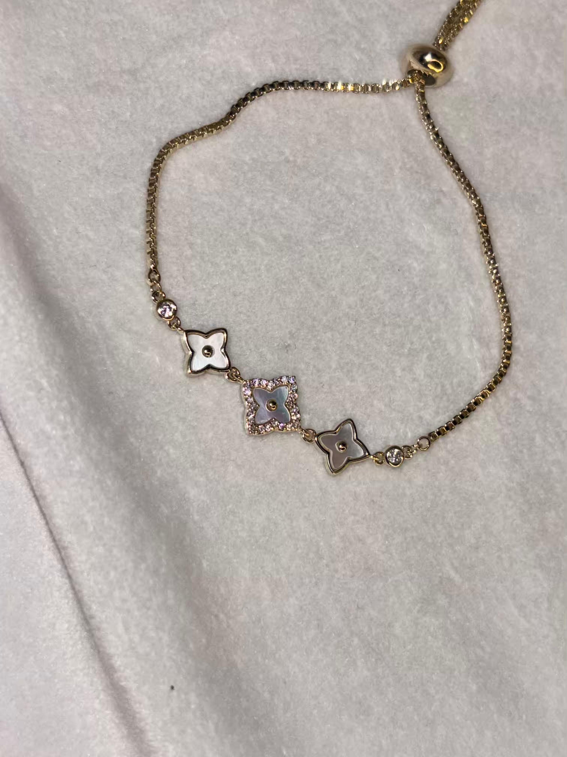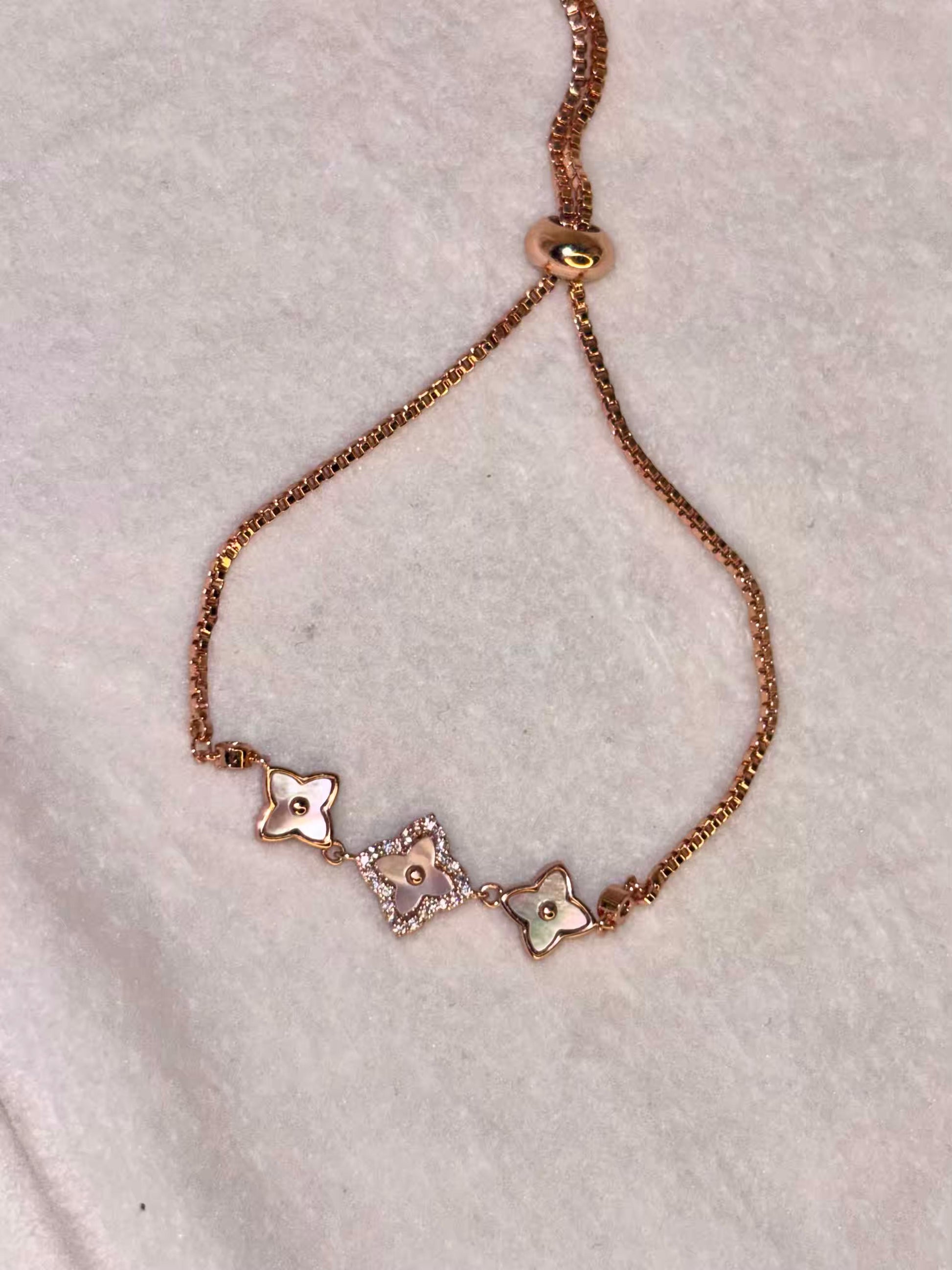 White Clovers Rose Gold Premium Adjustable Chain Bracelet