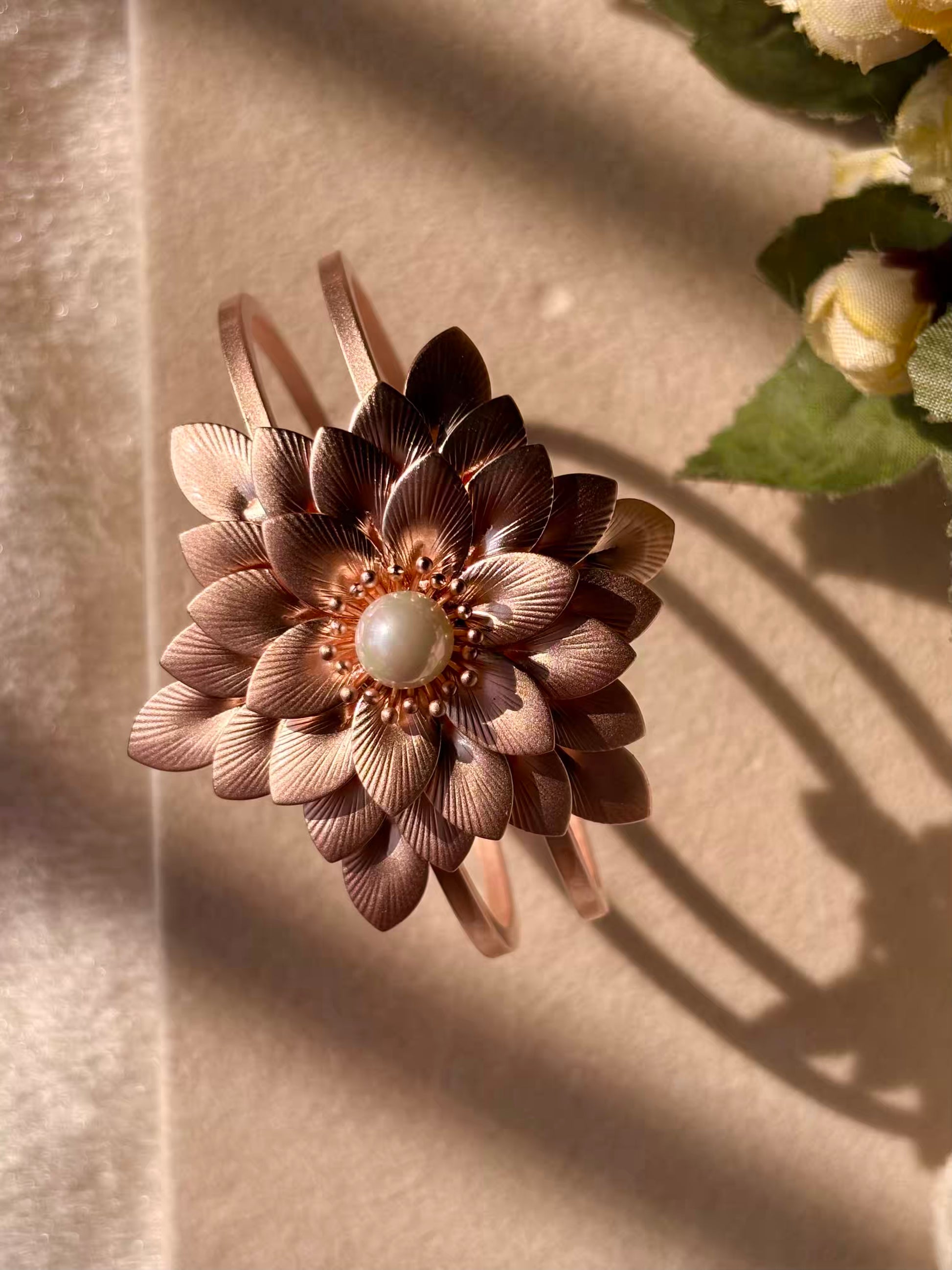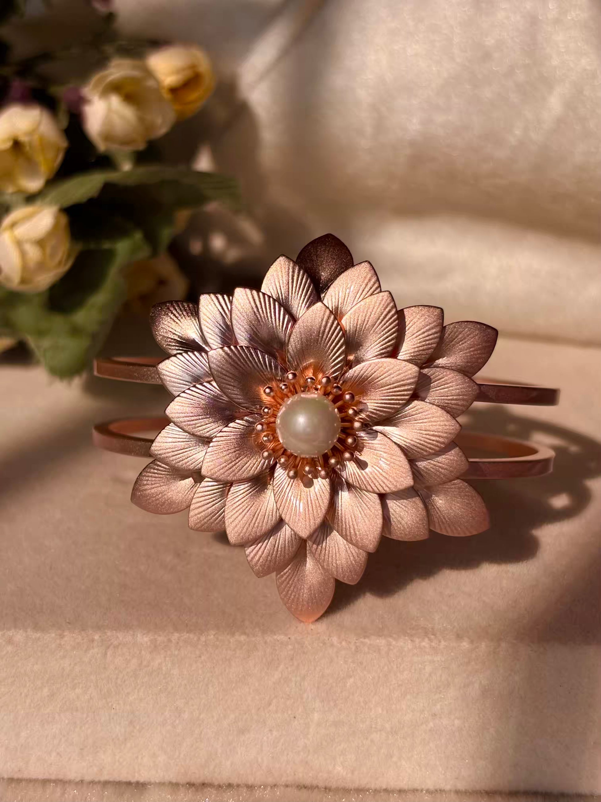 Real Rose Petals Pearly Bangle