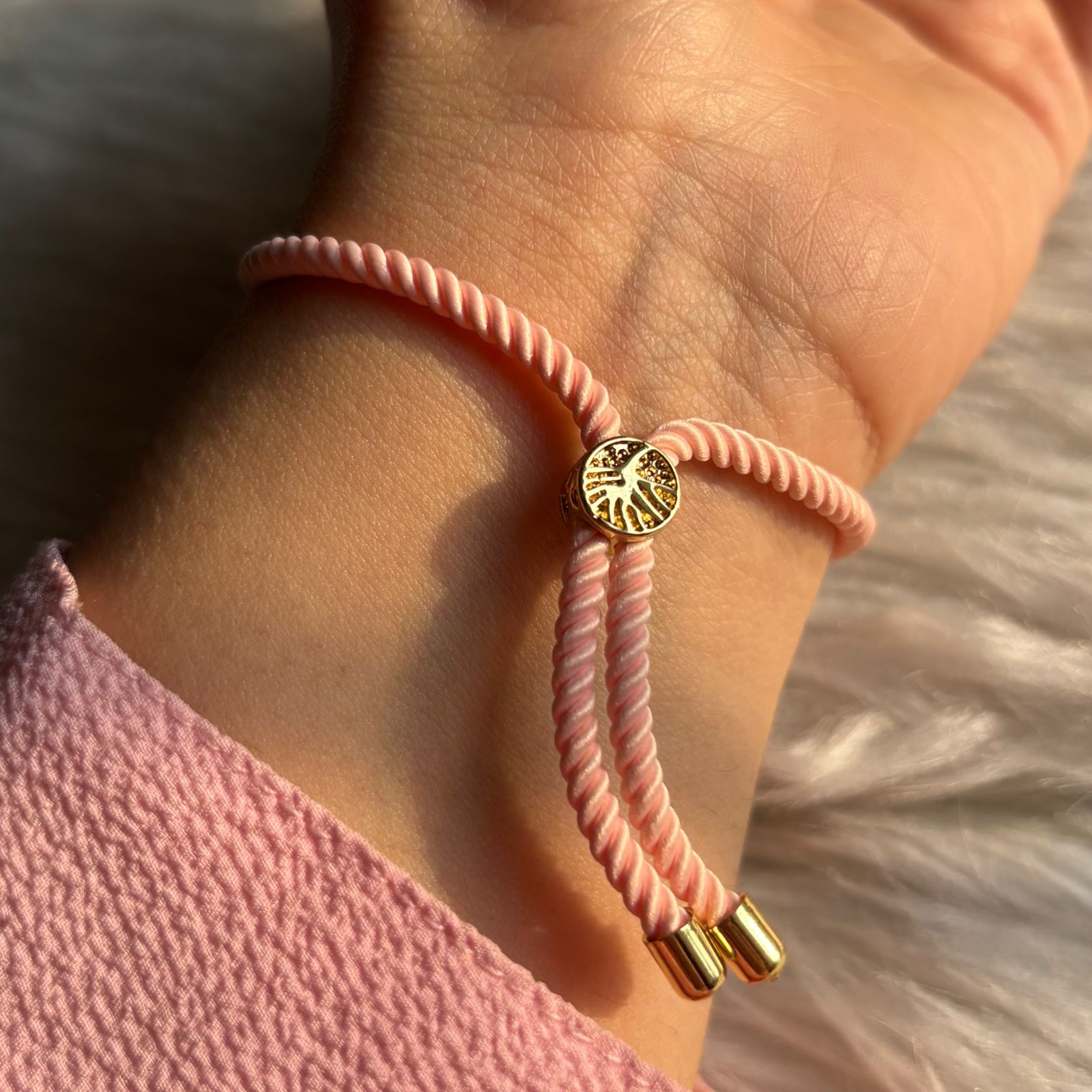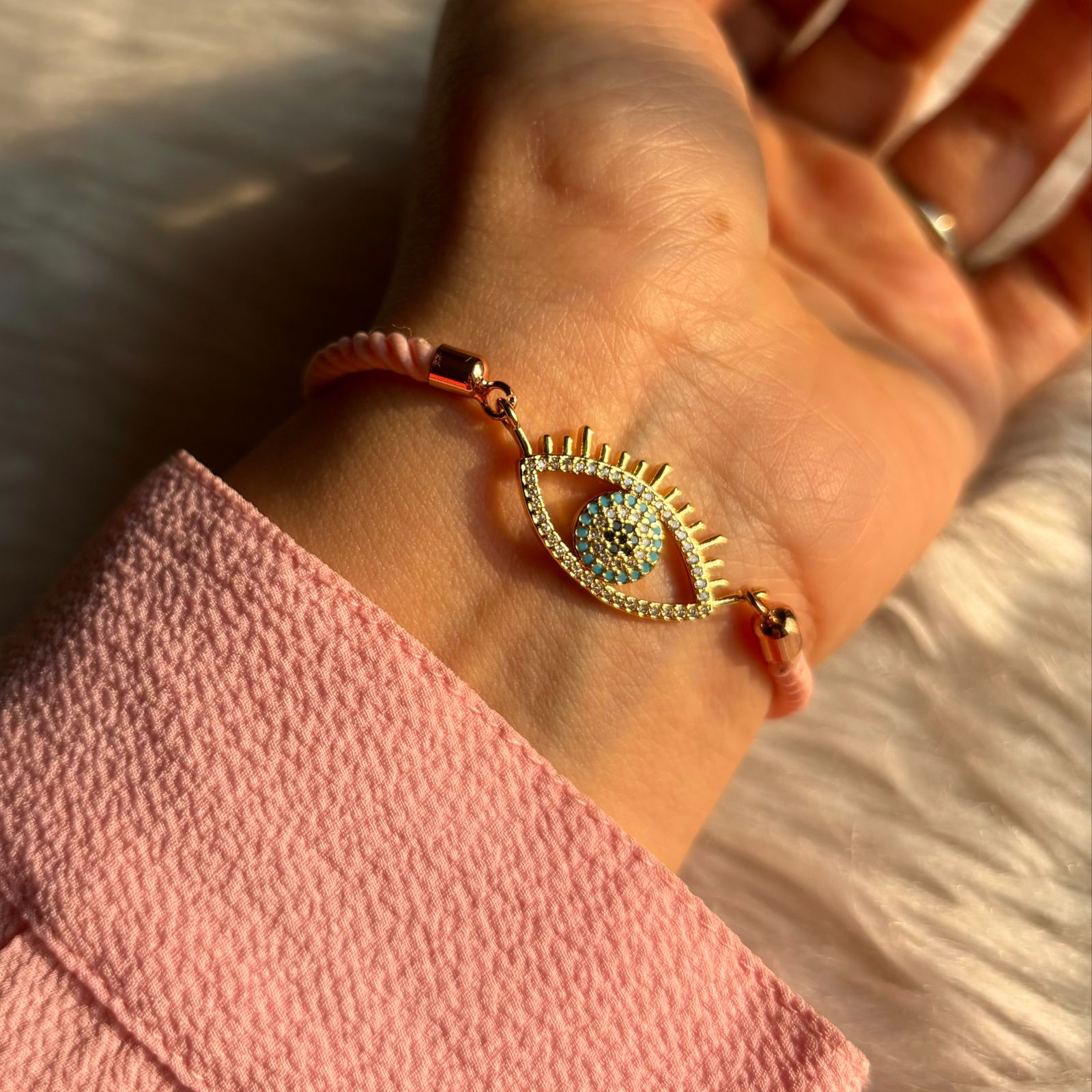 Golden Eyelashes Evil Eye Bracelet in Pink Band